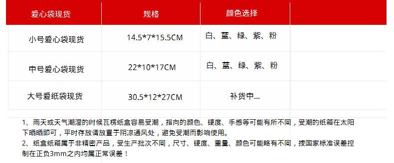 14.5*7*15.5cm small size white background red heart, 14.5*7*15.5cm small pink, 14.5*7*15.5cm small green, 22*1...