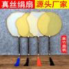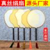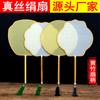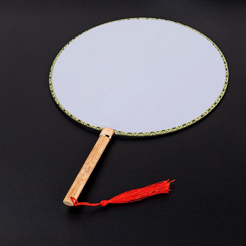 Abanico Blanco de Palacio Mango de Bambú Abanico Redondo Pintura Creativa Abanico de Corte Abanico de Seda de Imitación Abanico Redondo Abanico DIY en Blanco