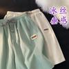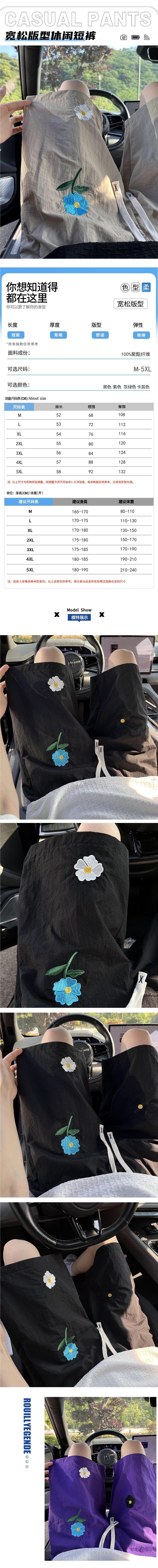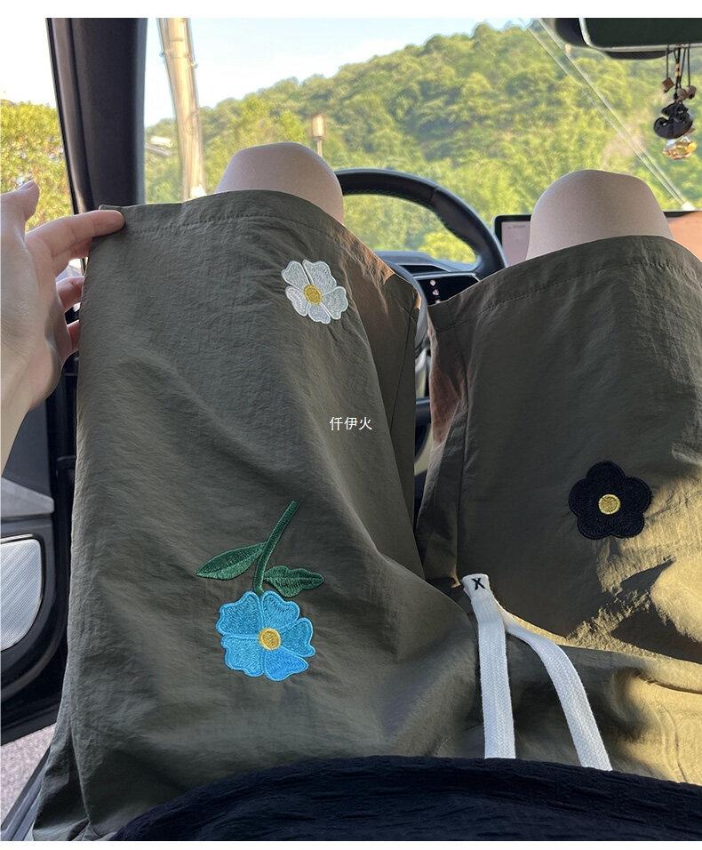 Shorts de Seda de Hielo Bordados Florales para Hombre Verano Moderno Pareja Sueltos Secado Rápido Playa Shorts hasta la Rodilla Frescos Casuales de Largo Medio