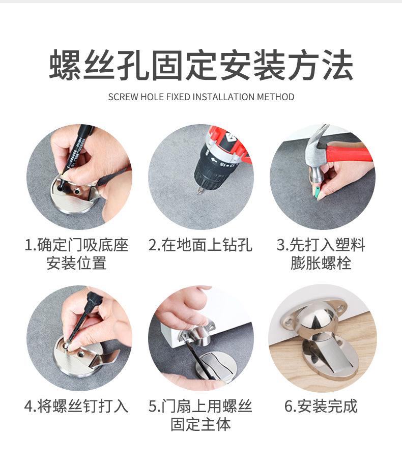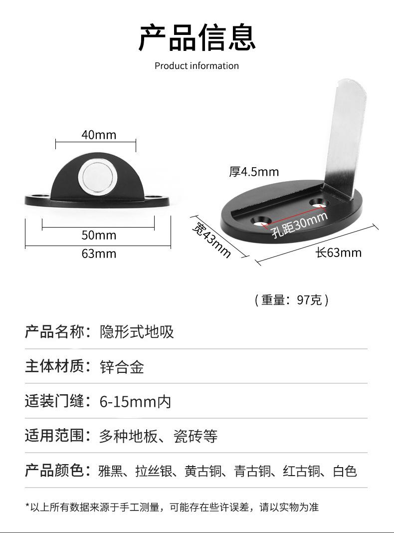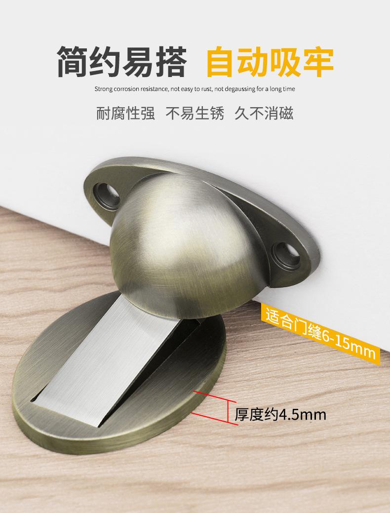 Acero inoxidable succión invisible aleación de zinc tope magnético hebilla sin agujeros con pegamento anticolisión tope de puerta tope de puerta succión magnética fuerte para puerta
