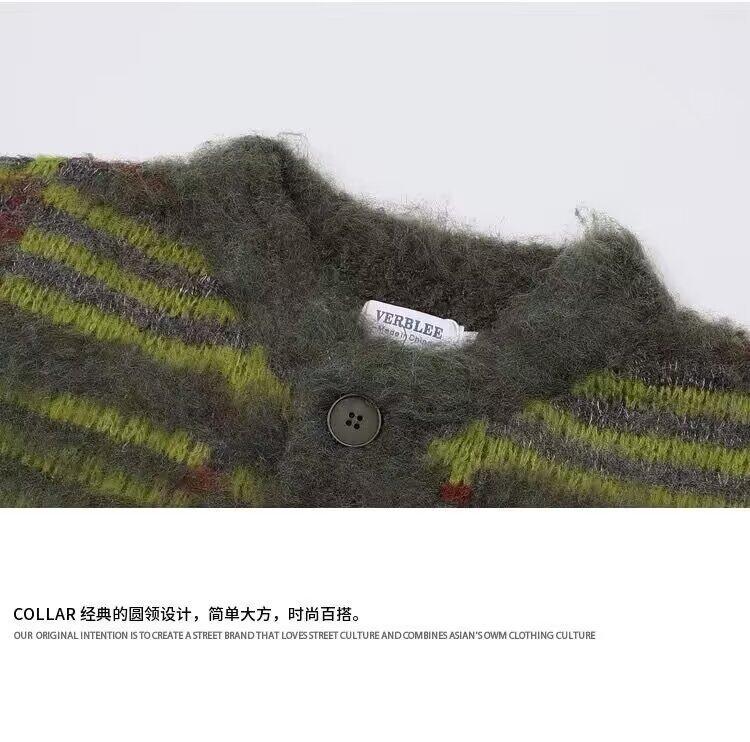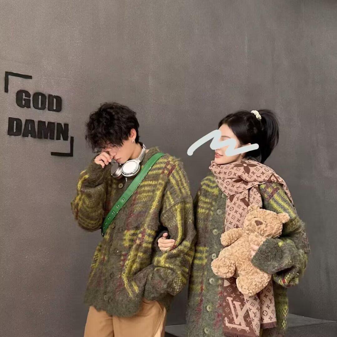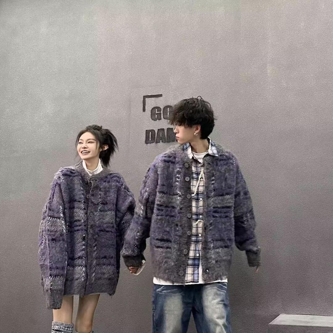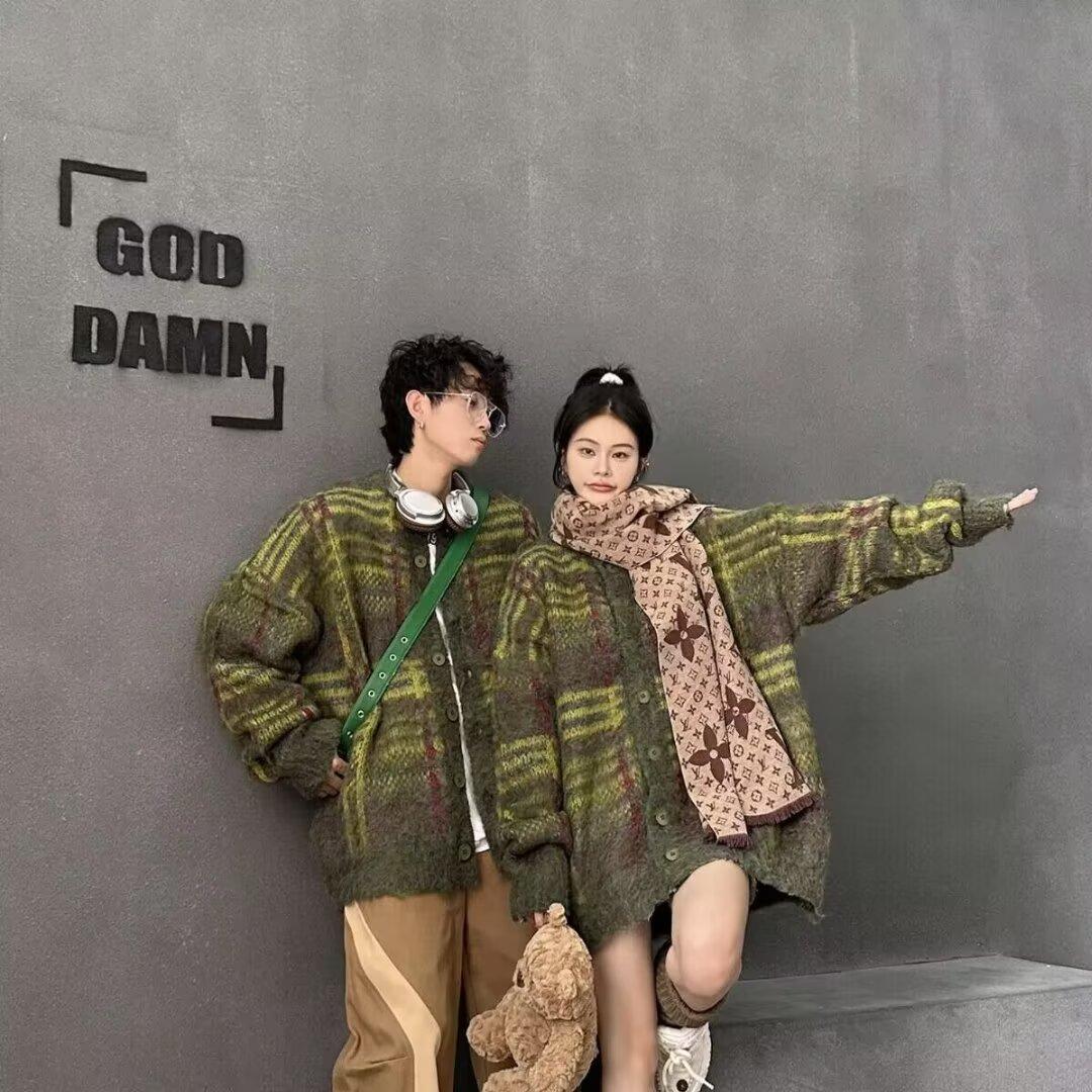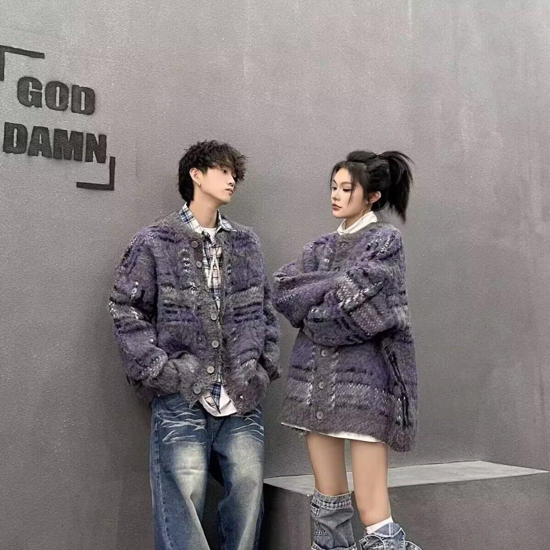 Suéter Chaqueta de Punto Holgada de Manga Larga para Jóvenes con Sentido del Diseño, Estilo Americano Retro de Otoño e Invierno
