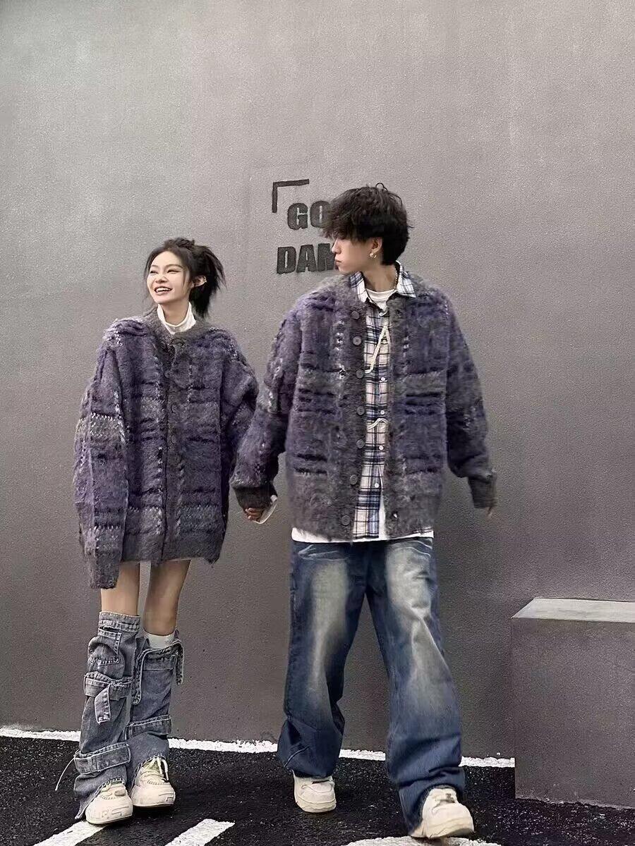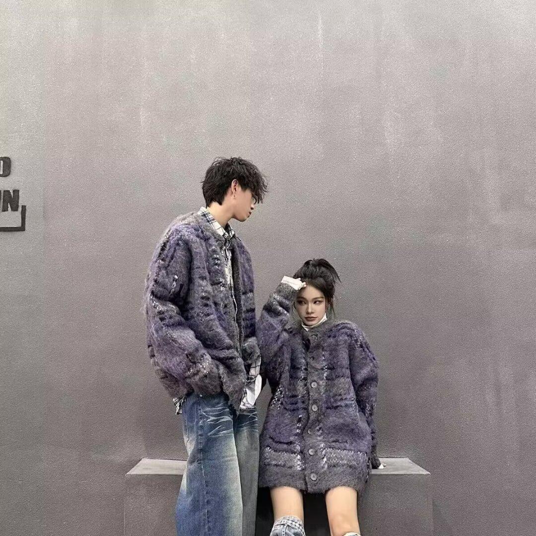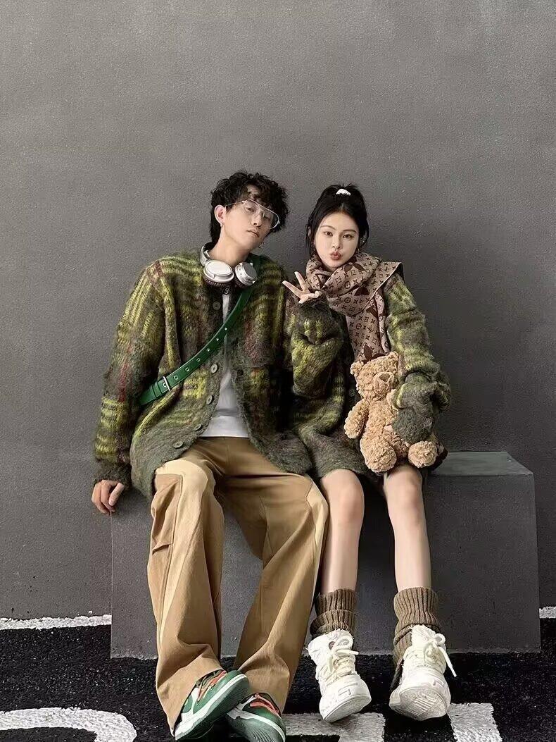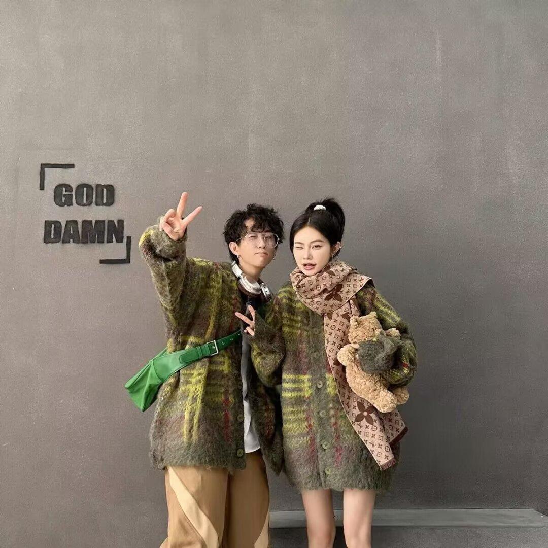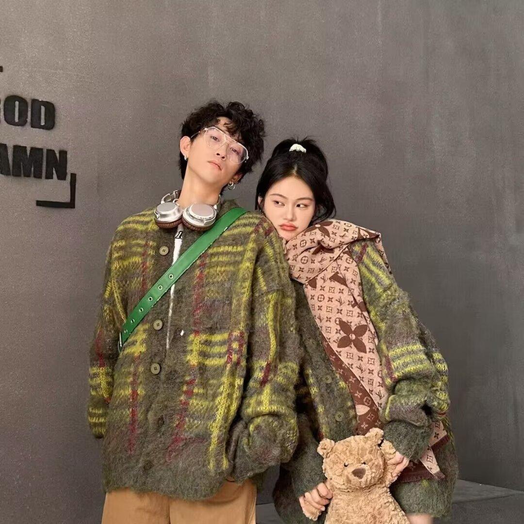 Suéter Chaqueta de Punto Holgada de Manga Larga para Jóvenes con Sentido del Diseño, Estilo Americano Retro de Otoño e Invierno