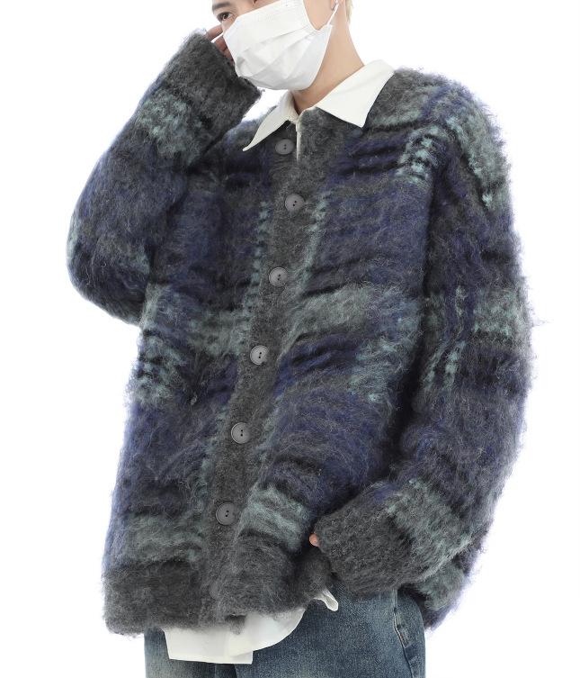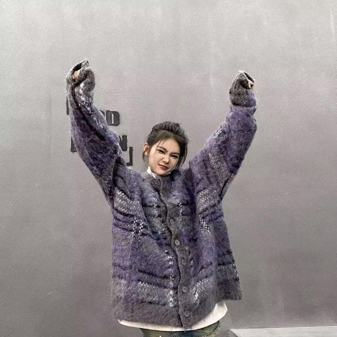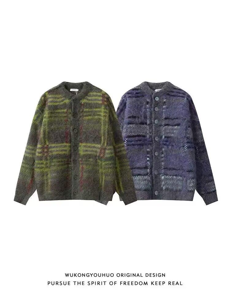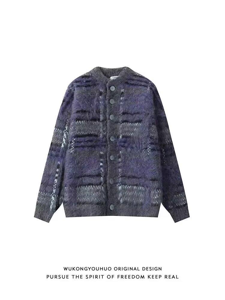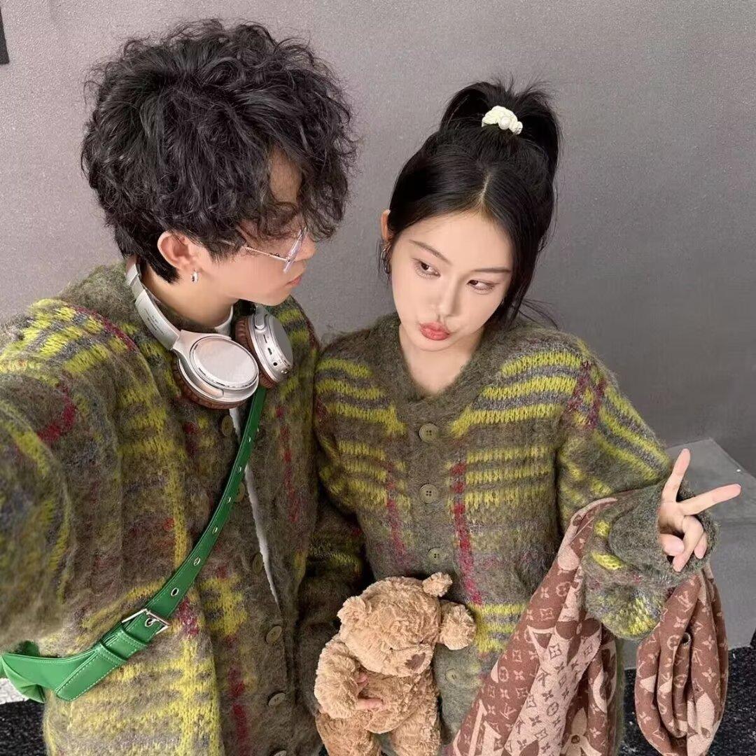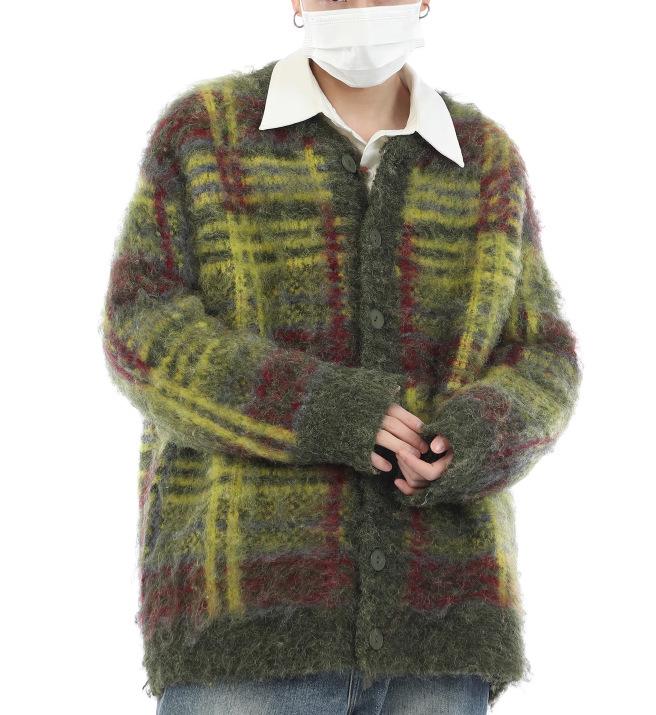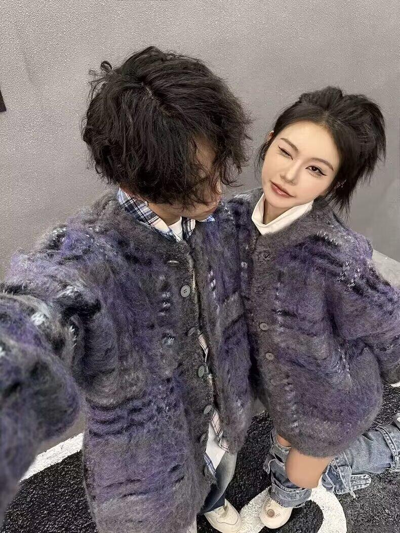 Suéter Chaqueta de Punto Holgada de Manga Larga para Jóvenes con Sentido del Diseño, Estilo Americano Retro de Otoño e Invierno