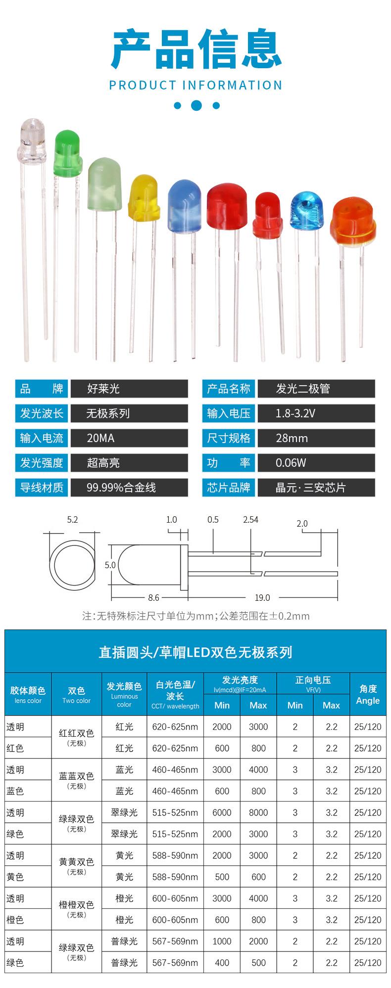 Diodo Emisor de Luz 3mm LED de Indicación Lámpara Cuentas Alto Brillo Rojo Rojo Continuo Azul Verde Amarillo Blanco 5mm LED Bicolor 2 Patas 2 Colores