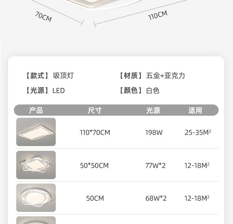 Round 50cm, Wave round 50cm, Cloud 50cm, Square 50cm, Living room 110cm, Restaurant chandelier 120cm, Fan lamp...