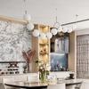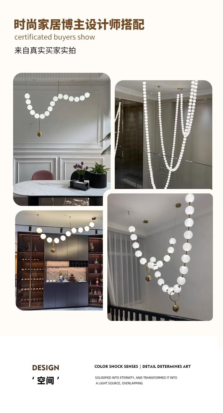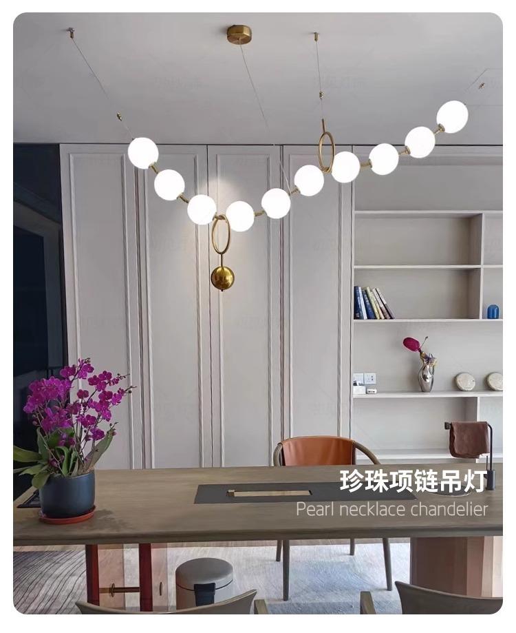 Restaurante Magic Bean Lámpara de Araña Francesa Moderna Simple Collar de Perlas Lámpara de Mesa de Bar Lámpara de Araña de Cuentas Larga para Loft