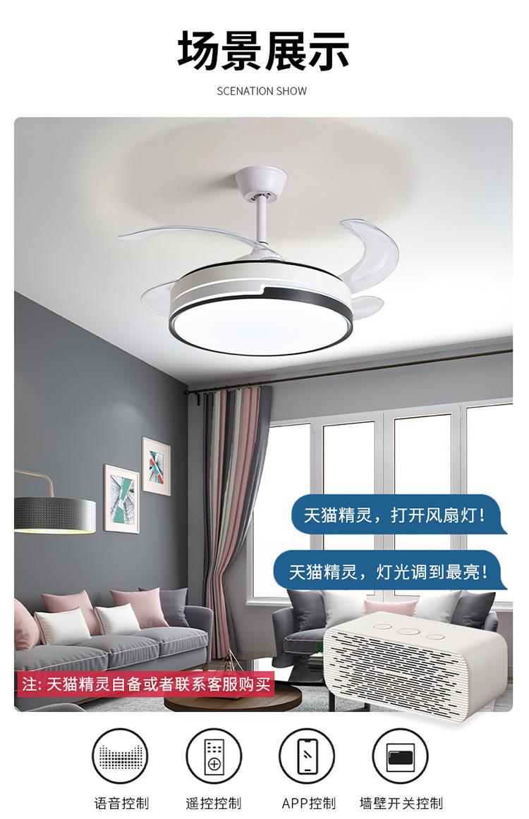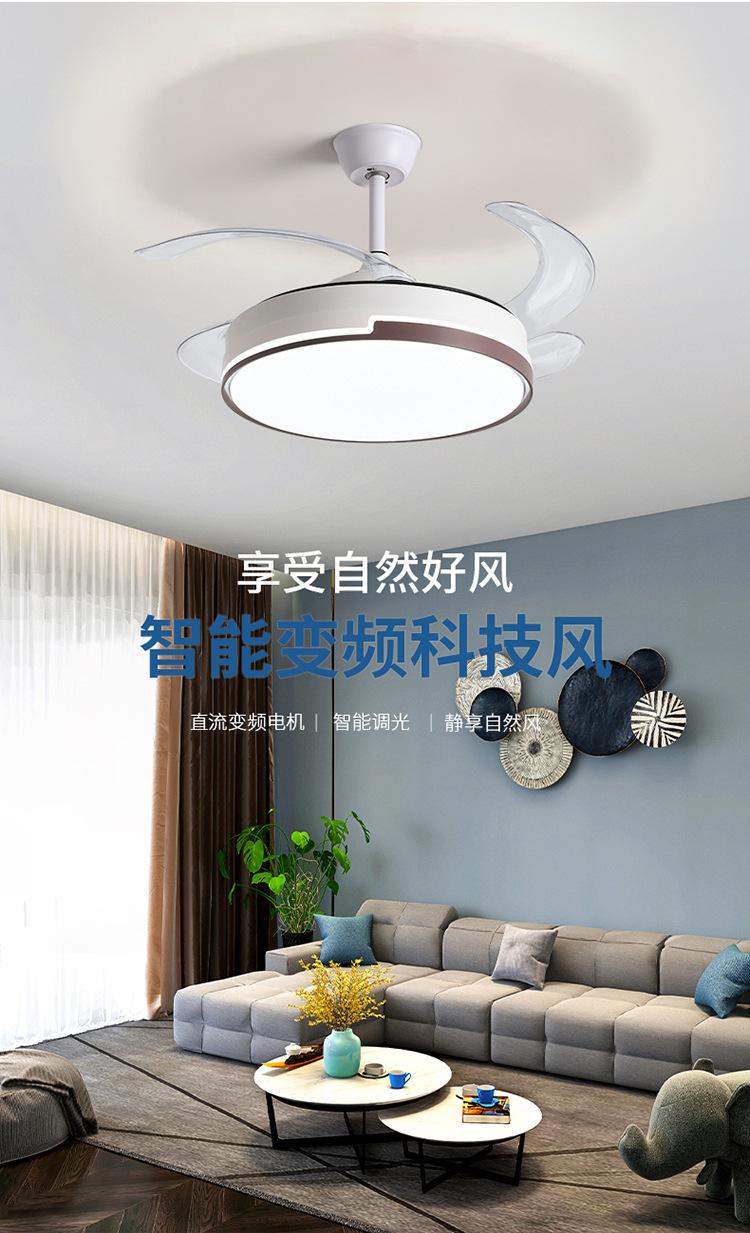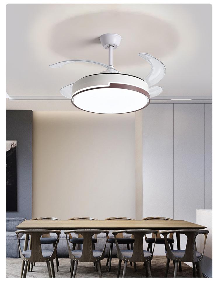 Ventilador de Techo Lámpara de Araña Ventilador Eléctrico Moderno Minimalista para Dormitorio Sala de Estar Comedor Ventilador Invisible de Frecuencia Variable para el Hogar Lámpara de Ventilador de Techo de Viento Grande