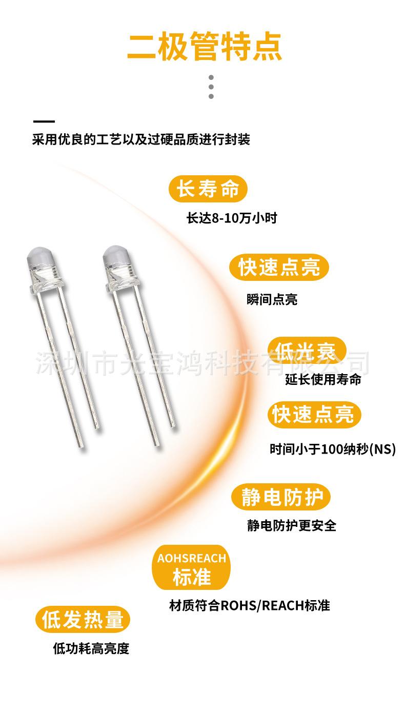 F5 Cuentas de Lámpara Cabeza Redonda Plug-In Diodo Emisor de Luz LED Luz Indicadora Luz Azul Luz Blanca Luz Roja Color Completo Cuentas de Lámpara de 5 mm