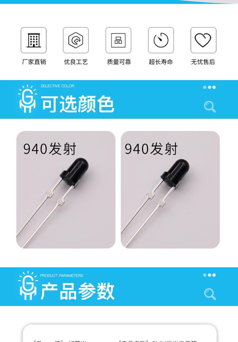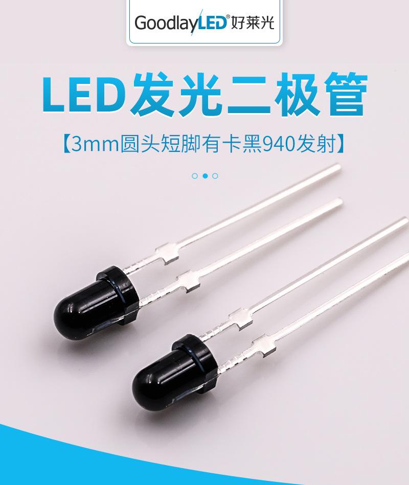 Haolaiguang Procesado 3mm Cabeza Redonda Coloide Negro 940 Emisor Tarjeta LED Cuentas de Lámpara Diodos Emisores de Luz Personalizados Profesionalmente