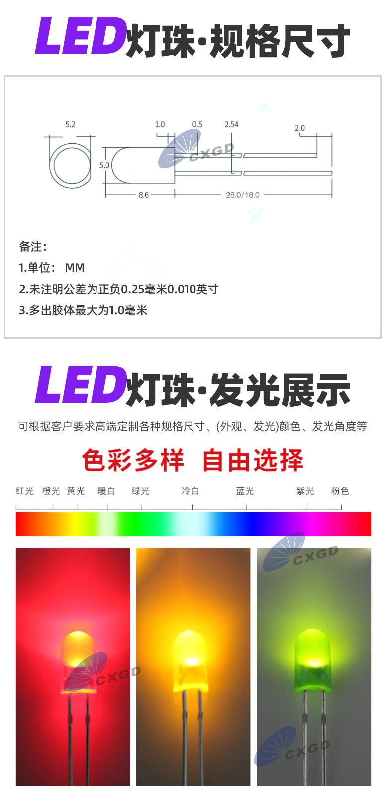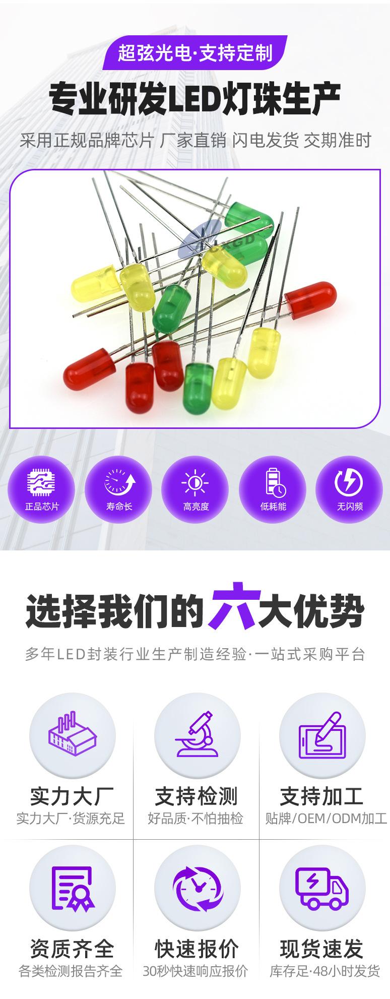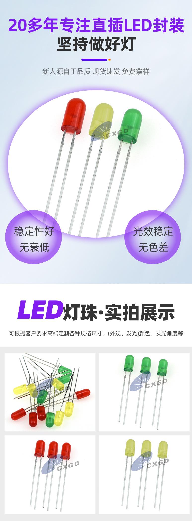 |  Cuentas de Luz LED de 360° de Ultra Alto Brillo Resistentes a Altas Temperaturas 0.5w Rojo Amarillo Azul Verde Blanco Blanco Cálido Fabricante ¥80.00  Compre ya |  diodo emisor de luz blanco-púrpura de 3 mm 5 mm parte superior plana blanco-púrpura doble color alto brillo f3 cabeza redonda doble color ánodo común perlas de lámpara led ¥150.00  Compre ya |  Cuentas de lámpara LED de 5 mm sin borde cóncavo rojo azul alto brillo translúcido lámpara enchufable f5 diodo emisor de luz ¥55.00  Compre ya | ||