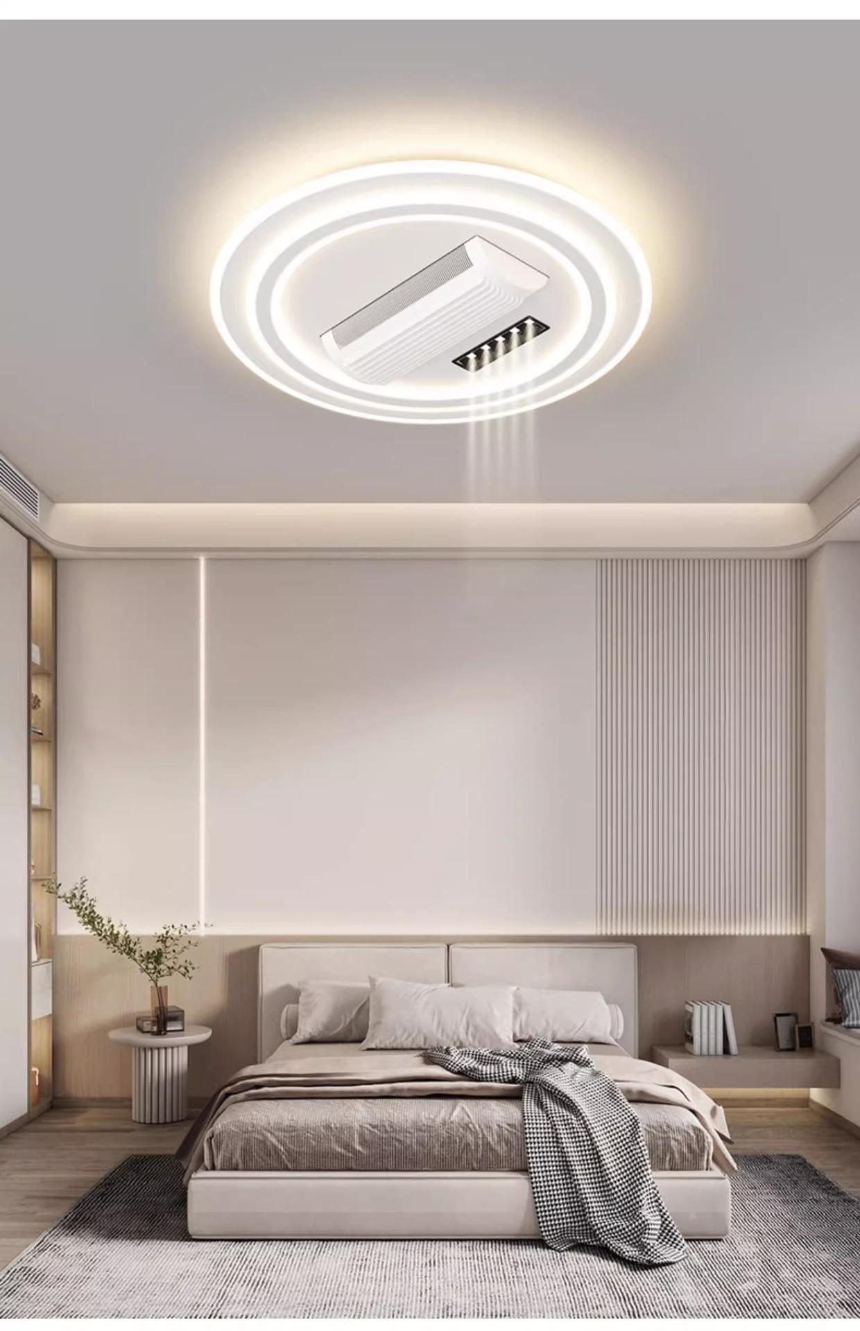 Ventilador de Techo sin Aspas con Rodillo Lámpara de Techo Moderna Simple Silenciosa Sala de Estar Dormitorio Combinación de Lámpara de Techo de Alta Gama
