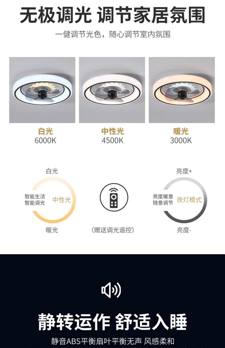 Lámpara de Techo con Cabeza Giratoria 360 para Dormitorio, Sala de Estar, Comedor, Ultra Delgada, Inteligente, Silenciosa, Viento Grande