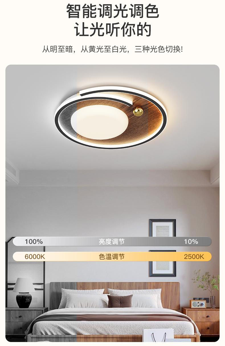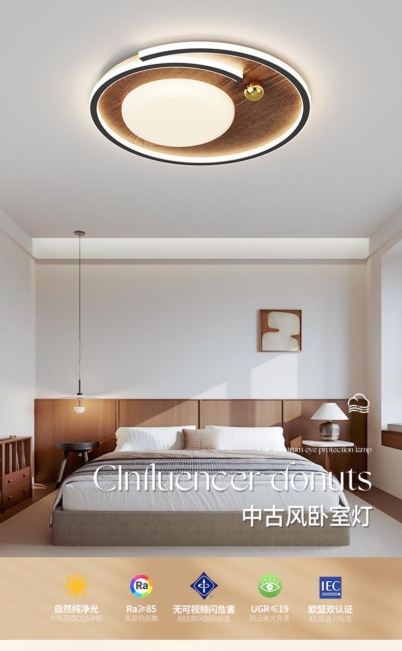 Lámpara de Techo para Dormitorio, Estilo Antiguo, Lámpara Redonda Creativa Retro, Grano de Madera de Nogal, Protección Ocular de Alta Gama, Lámpara de Habitación para Dormitorio Principal