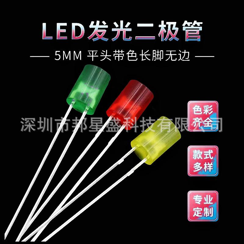 Diodo emisor de luz LED F5/5 mm de cabeza plana con patas largas de colores sin borde rojo rojo verde verde azul azul