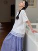 2025 Nuevo Verano Pequeño Cuello en V Falso Dos Piezas Encaje Empalmado Camiseta de Manga Corta Tops Versátiles Reductores de Edad a la Moda para Mujer Venta al por Mayor