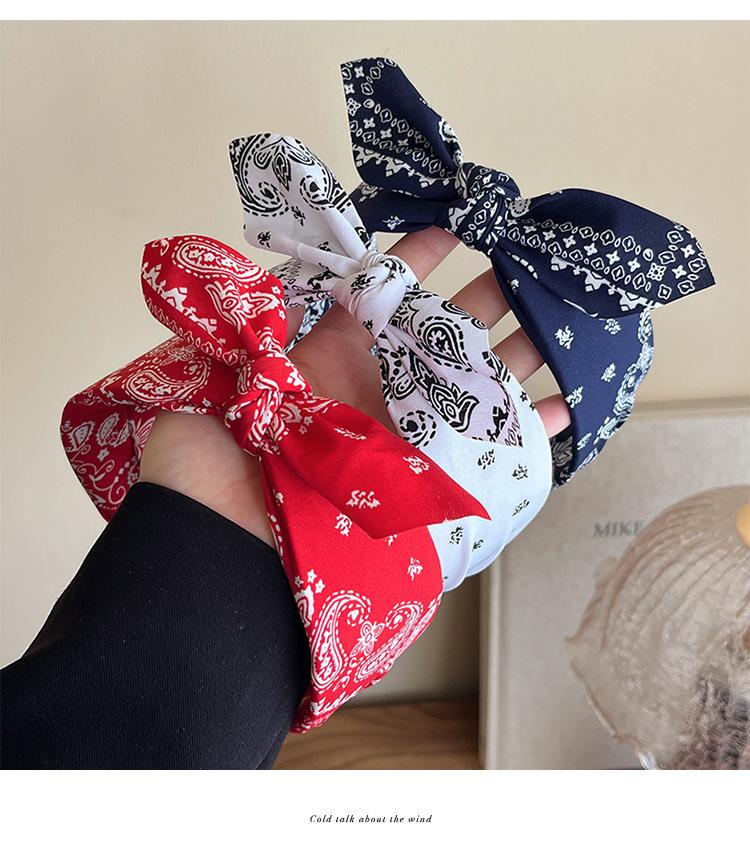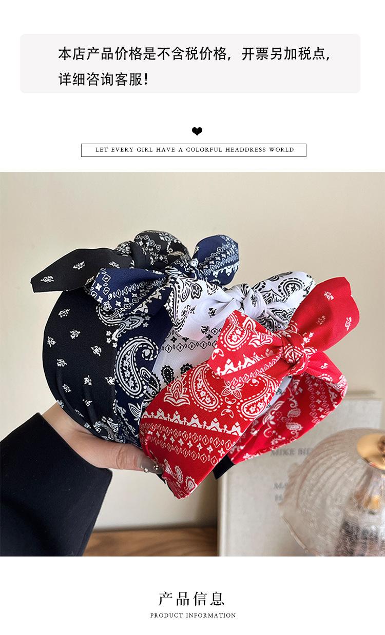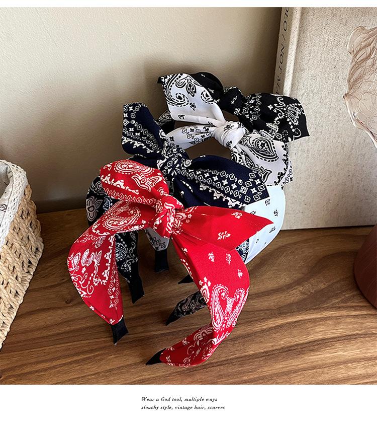 Diadema de lazo paisley de moda superventas transfronteriza, diadema retro anudada de ala ancha europea y americana para lavarse la cara, accesorios para el cabello al por mayor