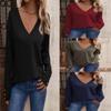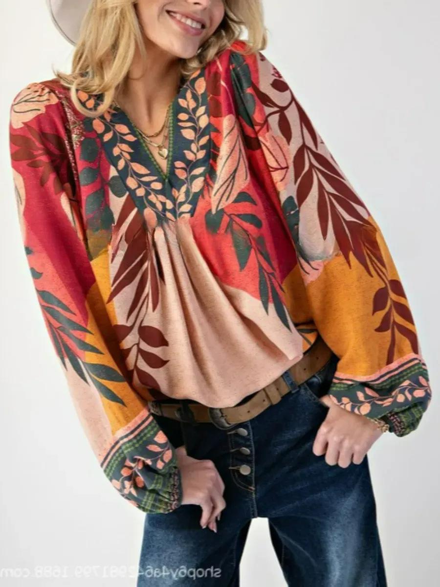 Amazon 2025 Otoño Nuevo Transfronterizo Moda Europea y Americana para Mujer Estampado Señoras Cuello en V Camisa de Manga Larga Suéter Holgado