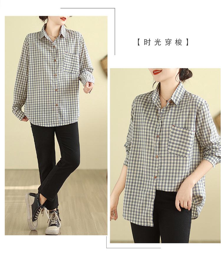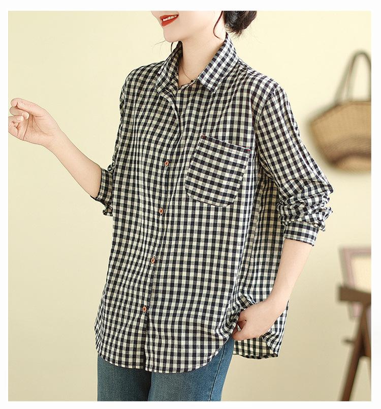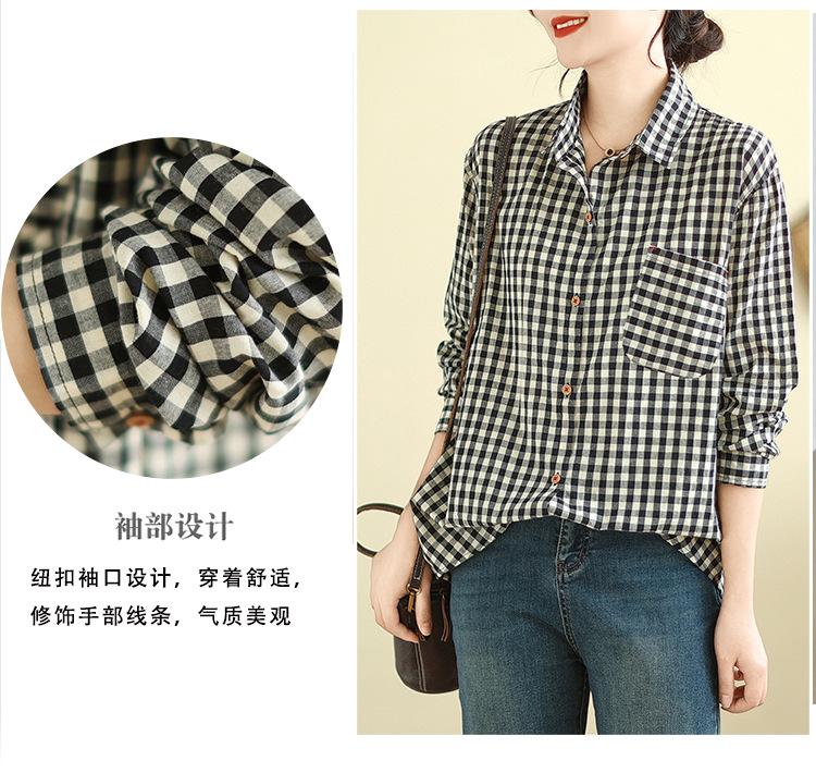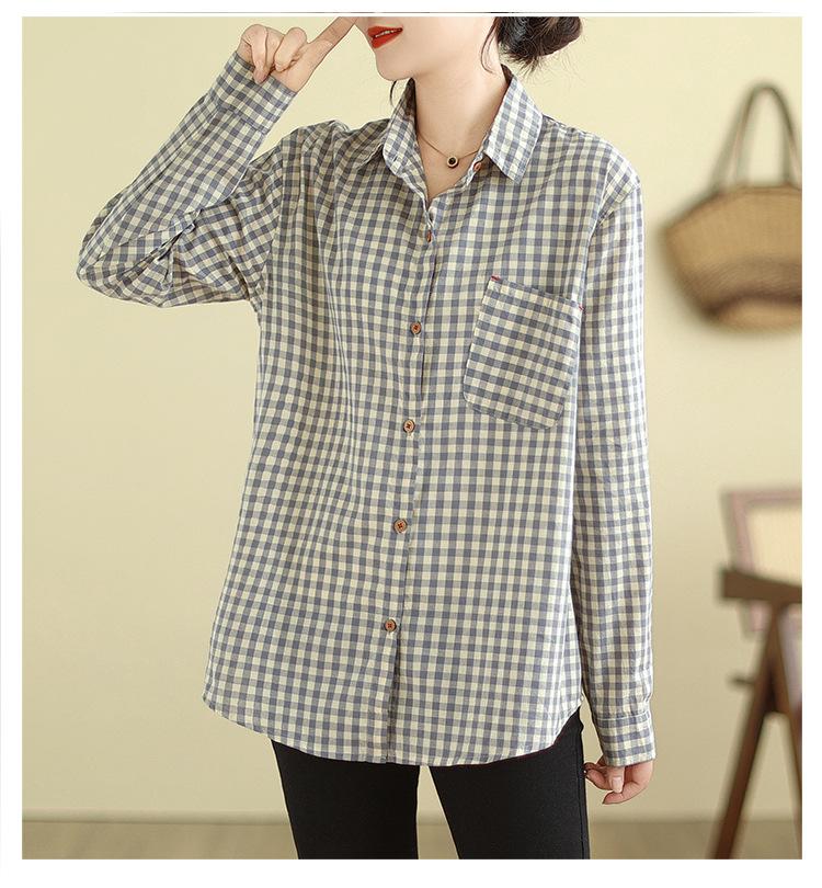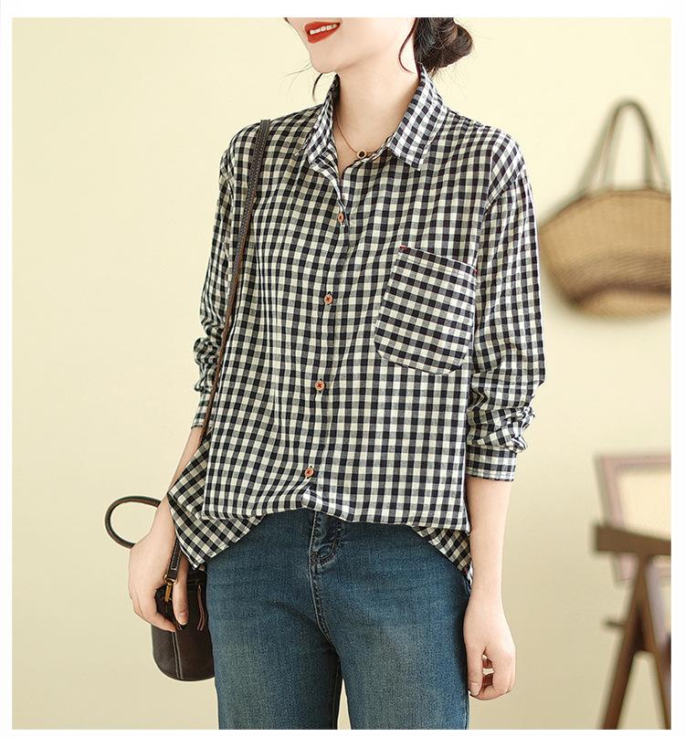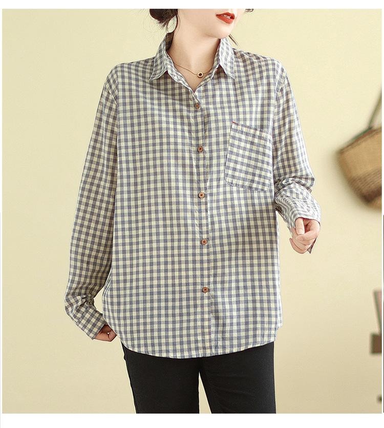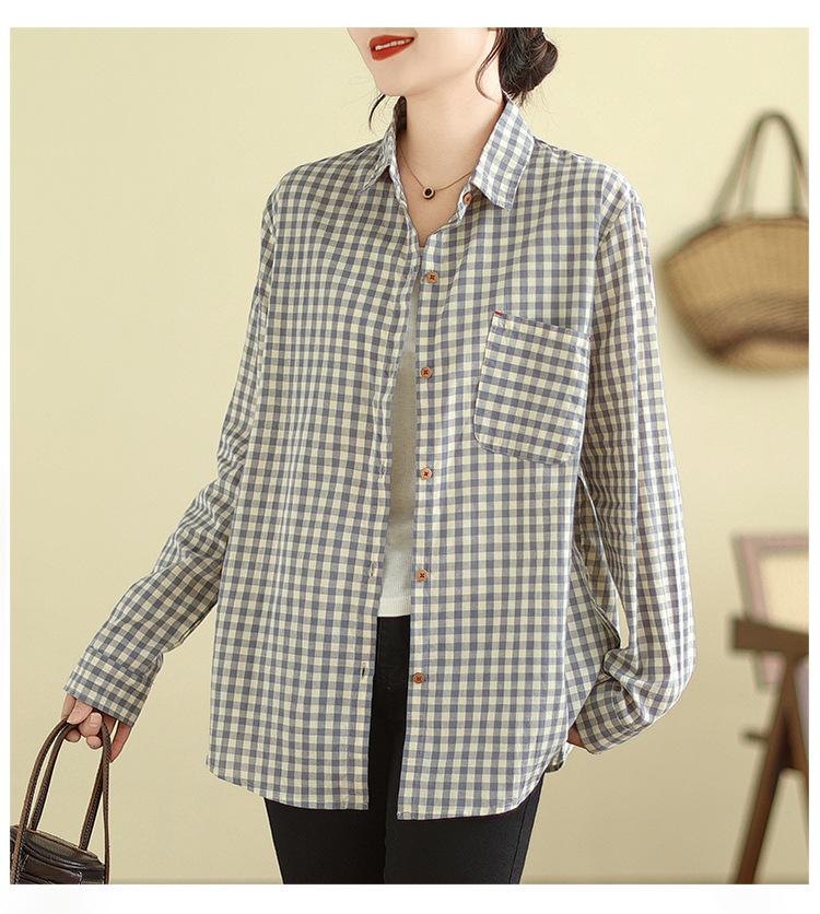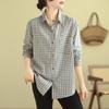 Foto Real Otoño 2025 Nuevo Transpirable Delgado Manga Larga Cuadros Cómodo Casual Camisa Top Mujer