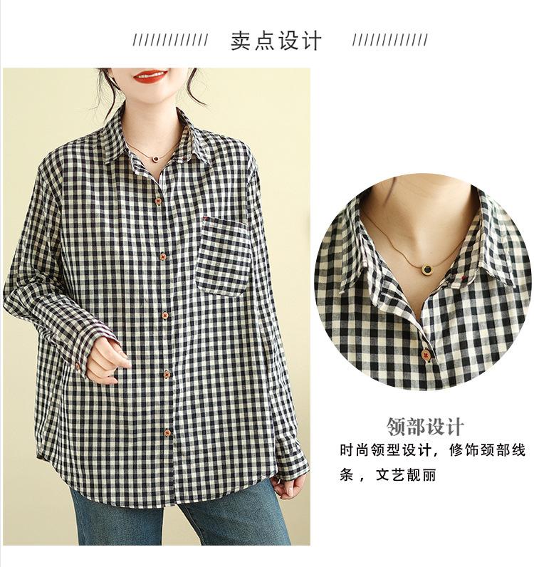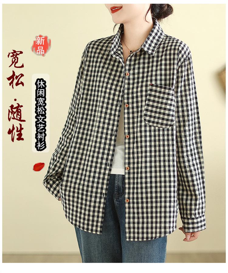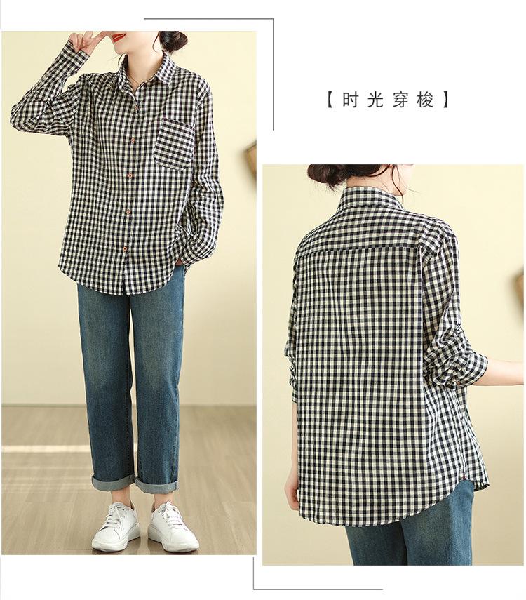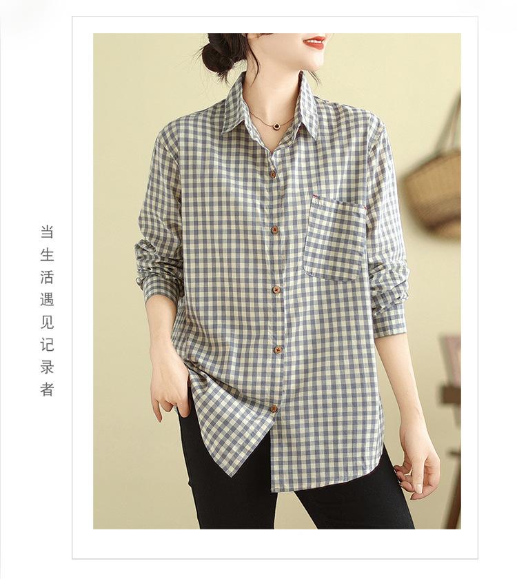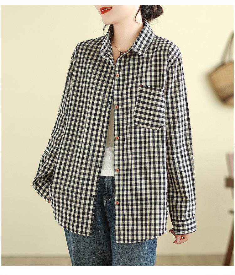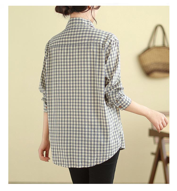 Foto Real Otoño 2025 Nuevo Transpirable Delgado Manga Larga Cuadros Cómodo Casual Camisa Top Mujer