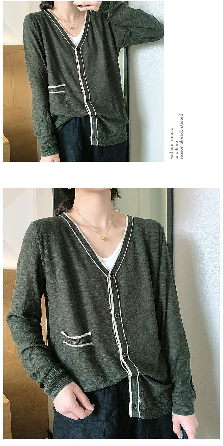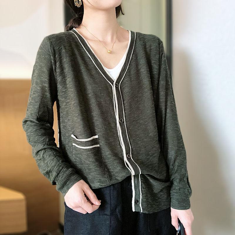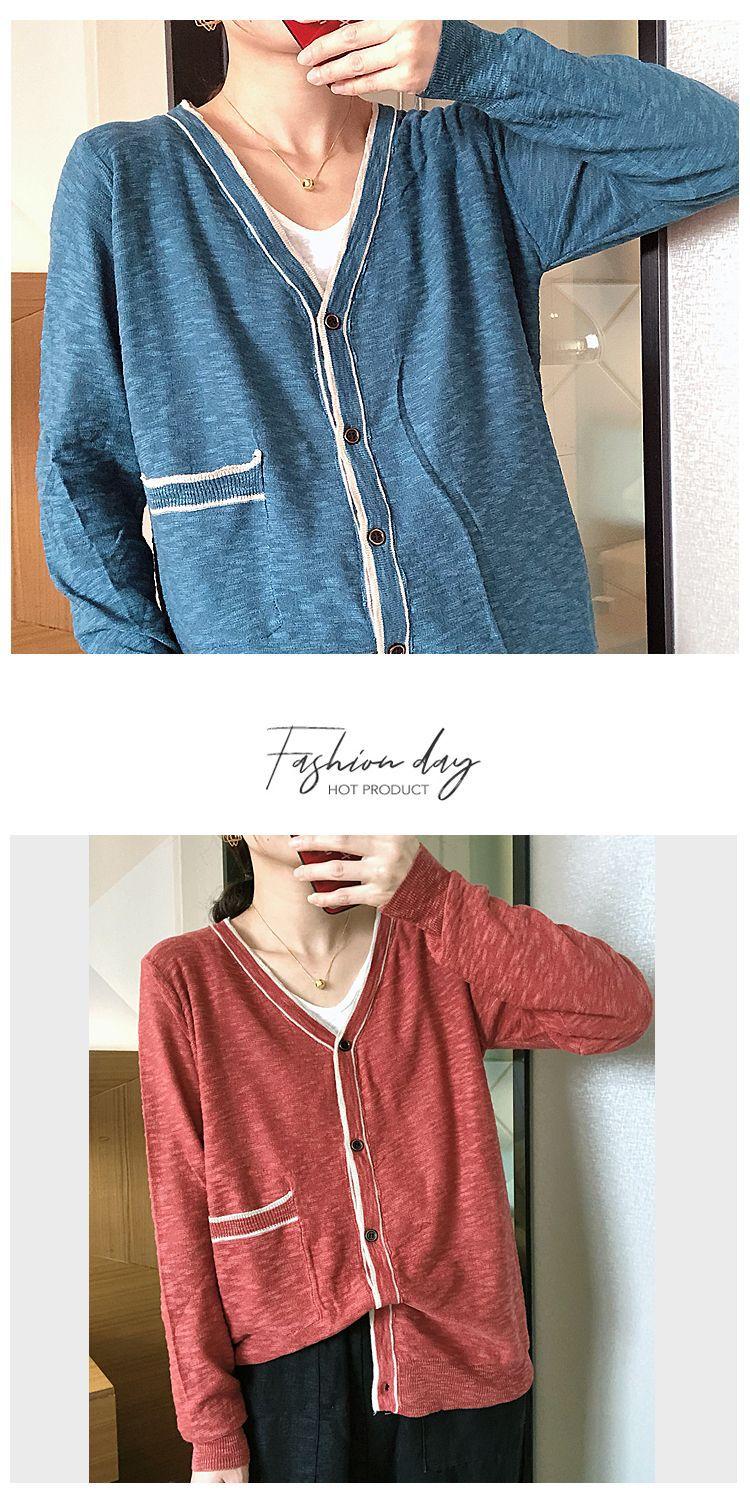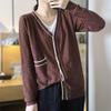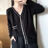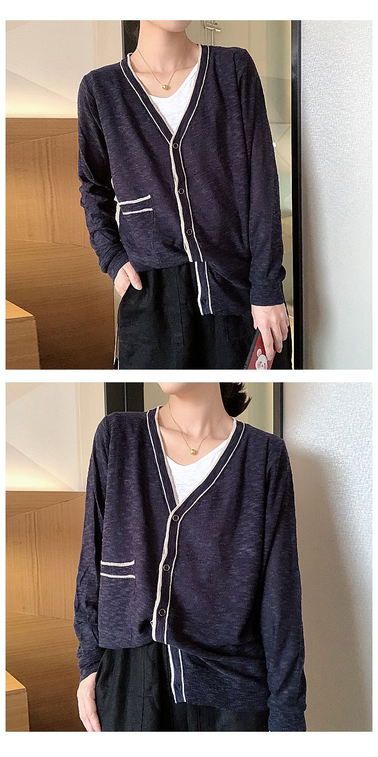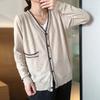 Nuevo cárdigan de punto para mujer, abrigo versátil de color sólido para primavera y otoño, bolsillo de color contrastante, estilo coreano holgado, suéter de manga larga