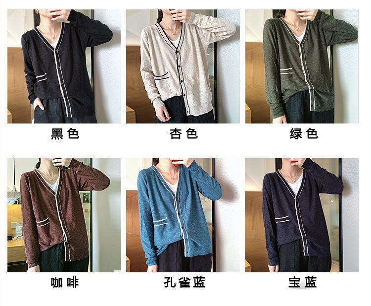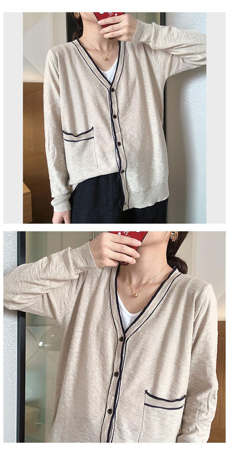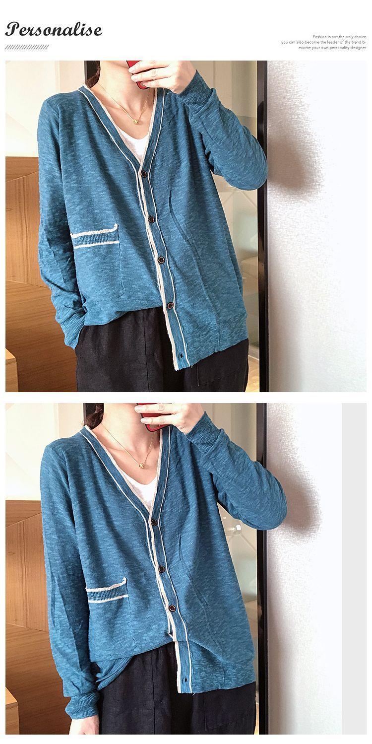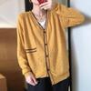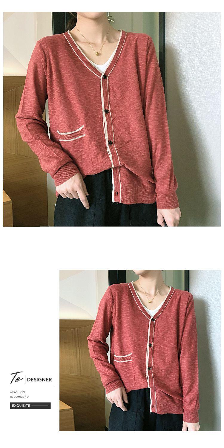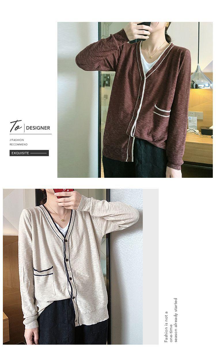 Nuevo cárdigan de punto para mujer, abrigo versátil de color sólido para primavera y otoño, bolsillo de color contrastante, estilo coreano holgado, suéter de manga larga