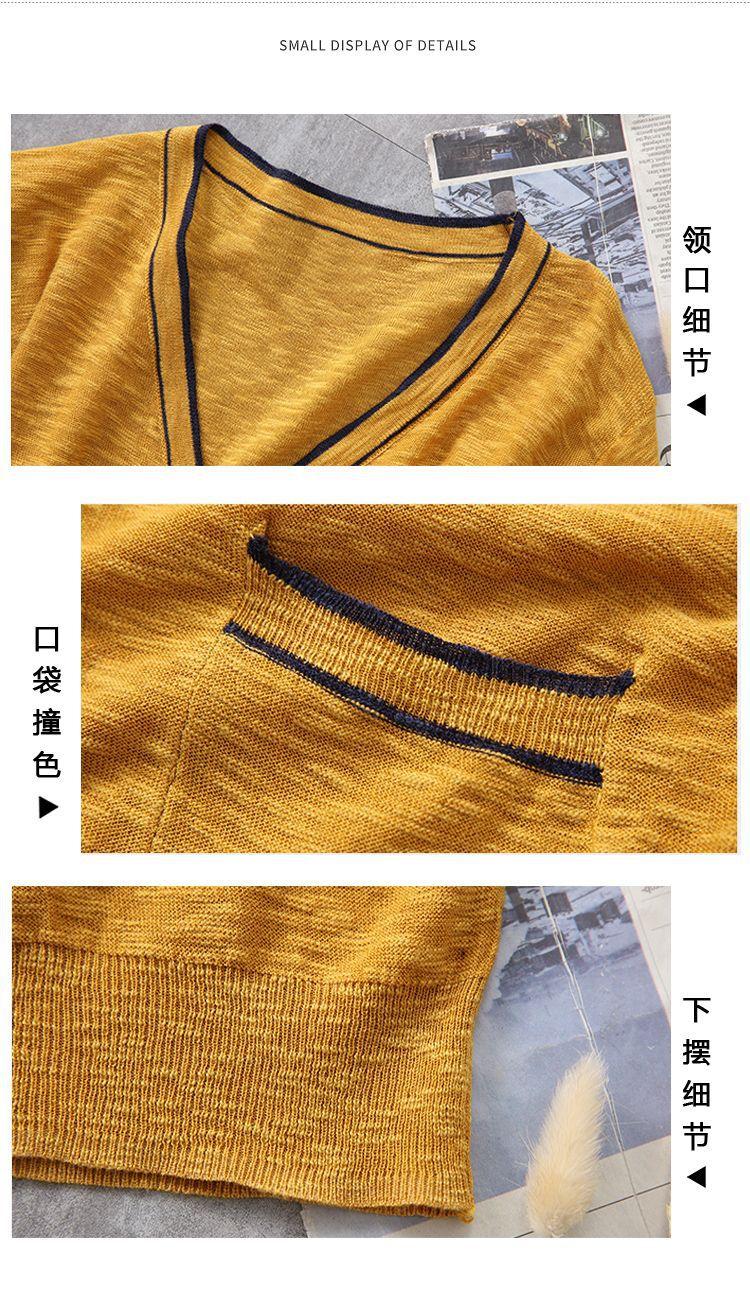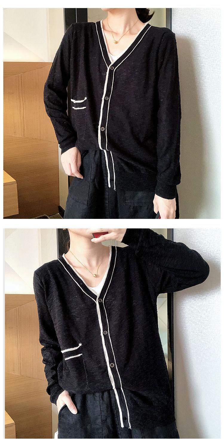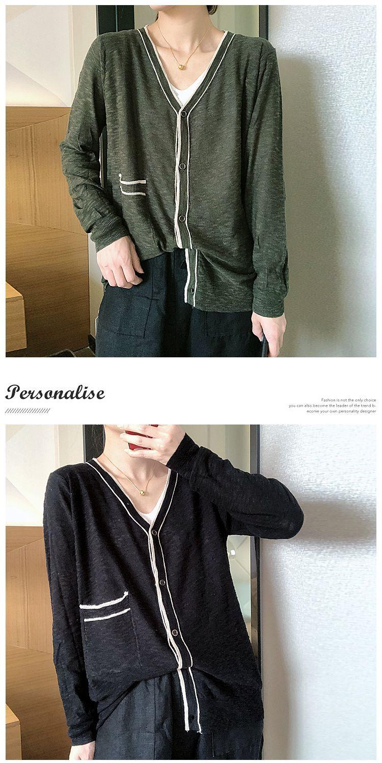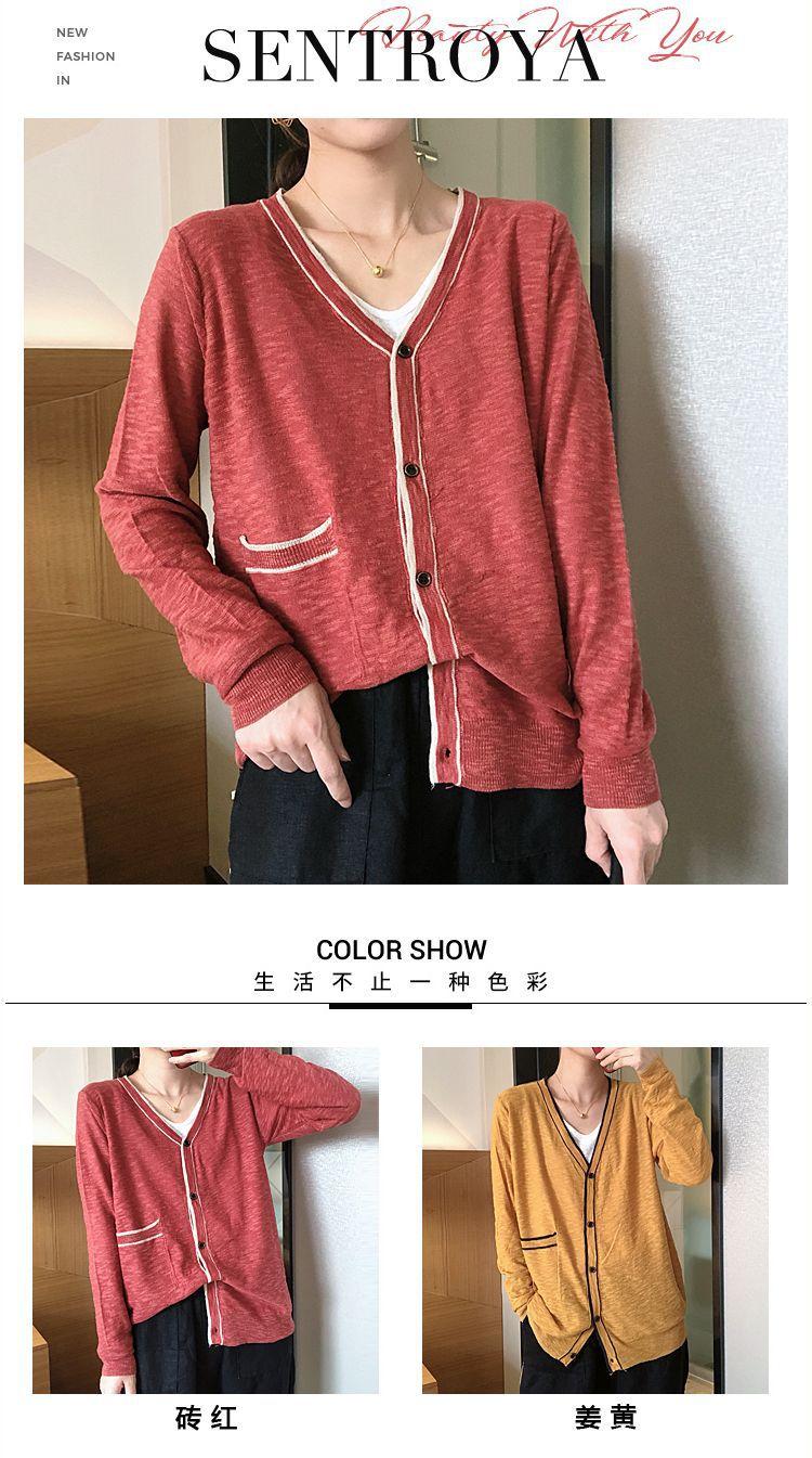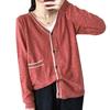 Nuevo cárdigan de punto para mujer, abrigo versátil de color sólido para primavera y otoño, bolsillo de color contrastante, estilo coreano holgado, suéter de manga larga