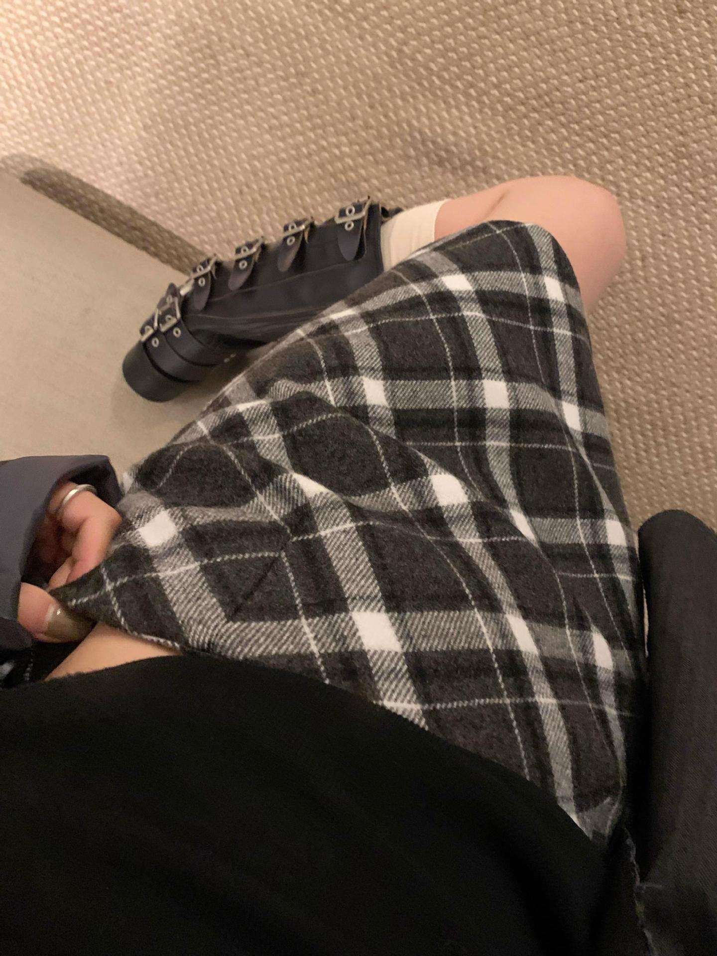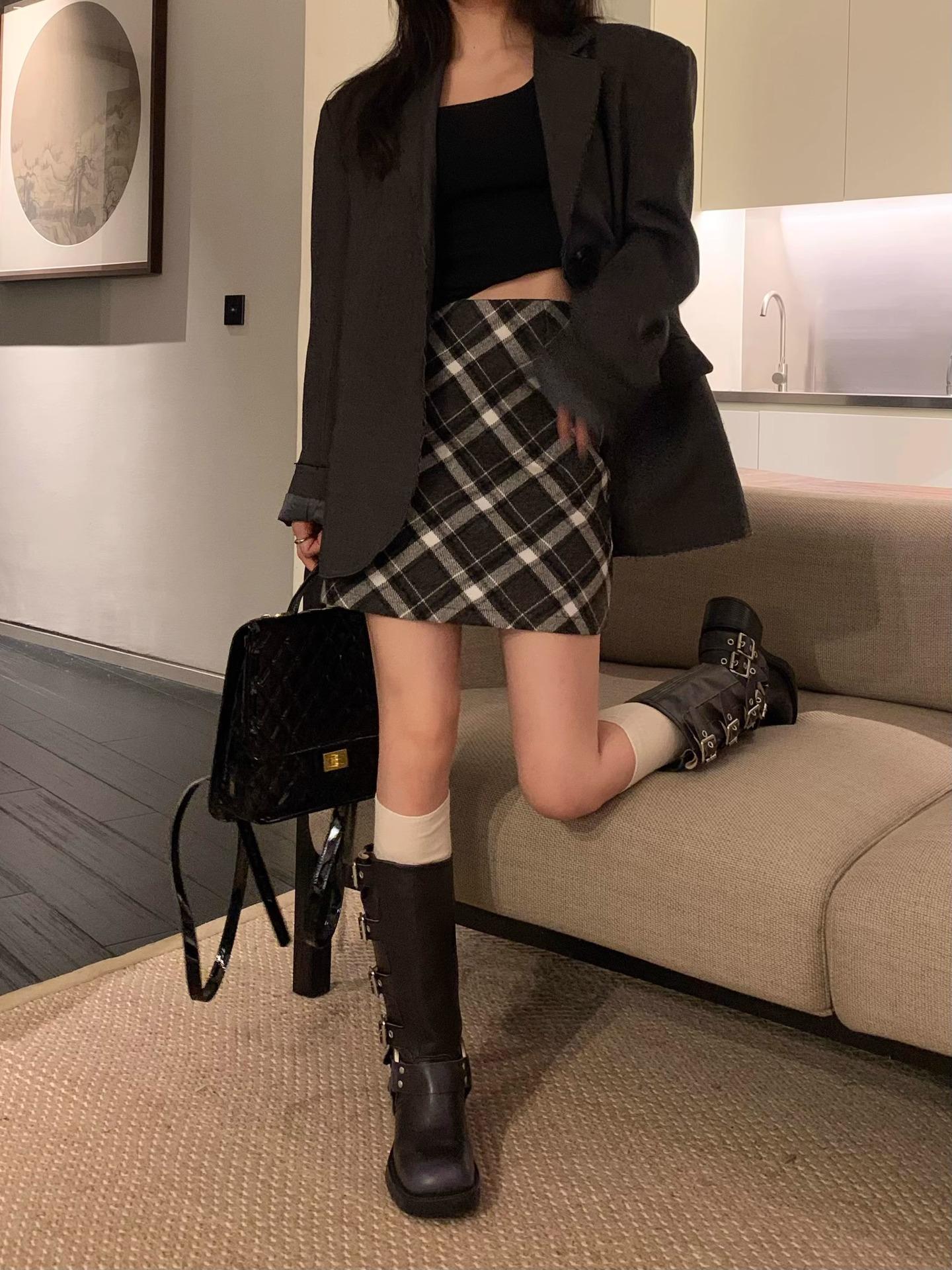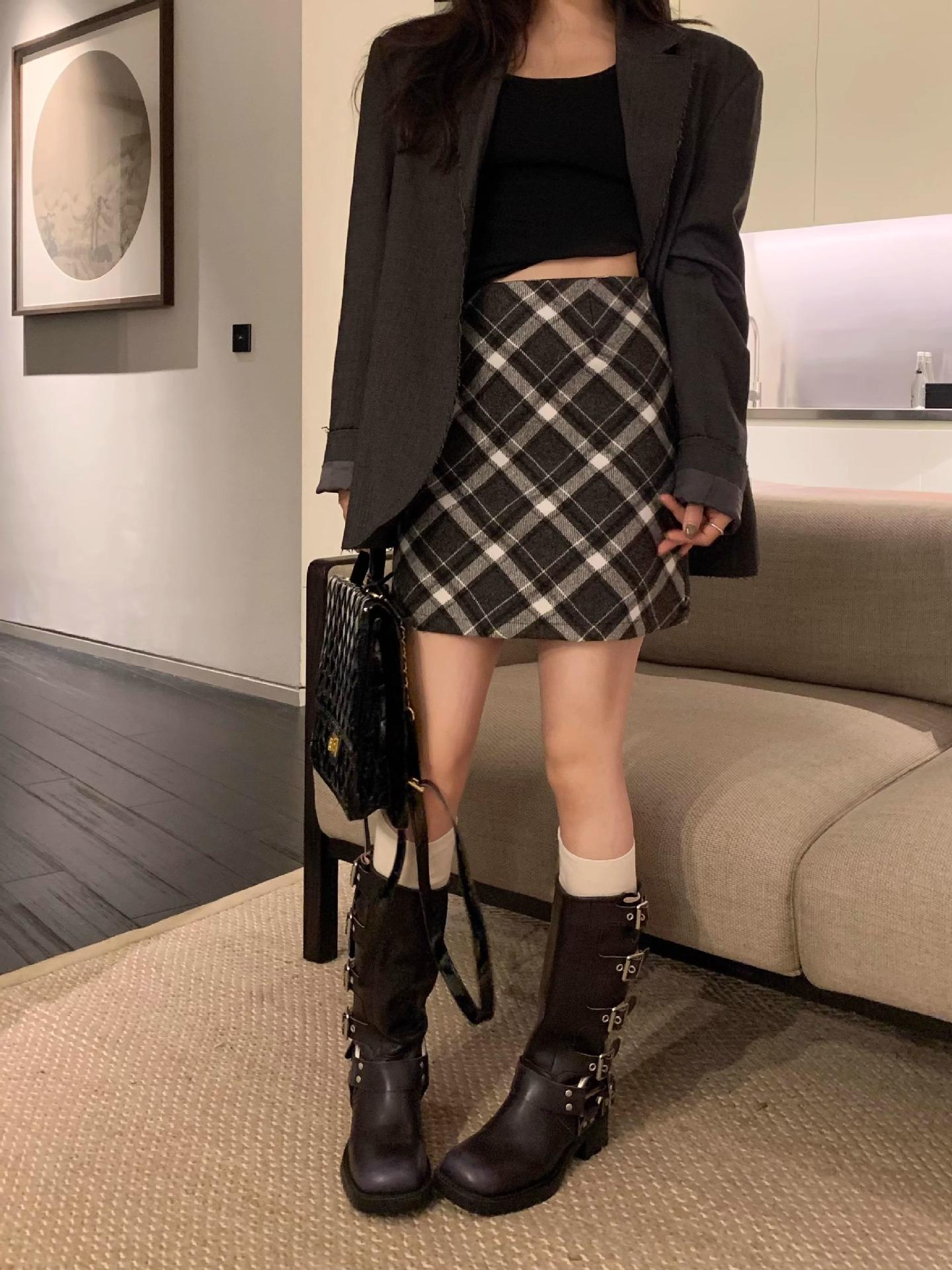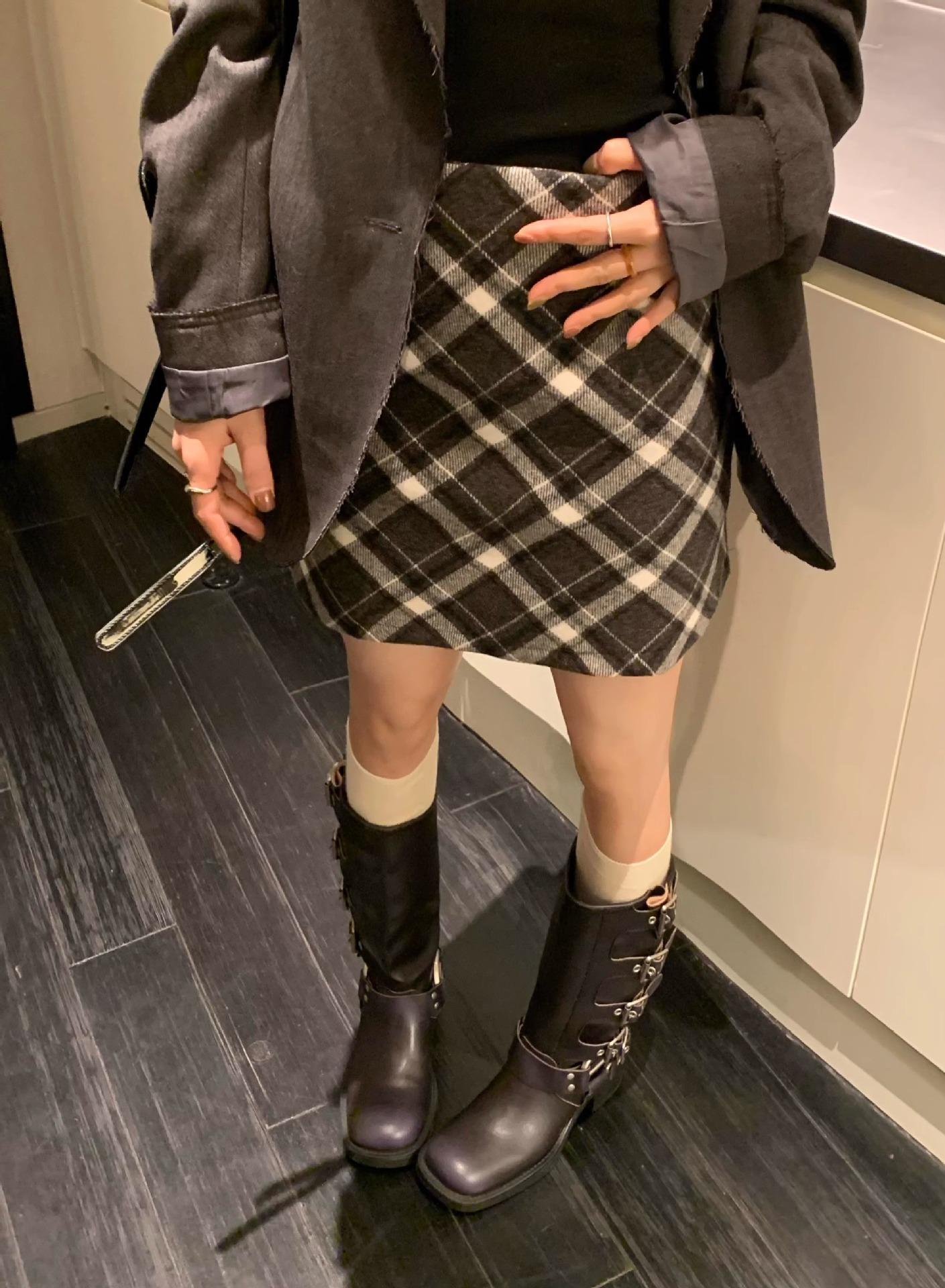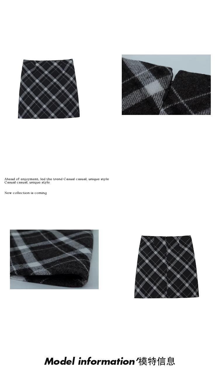 Falda a cuadros pequeña para mujer, otoño e invierno, nueva llegada, roja, de lana, falda de cadera, falda línea A, falda con patrón marrón