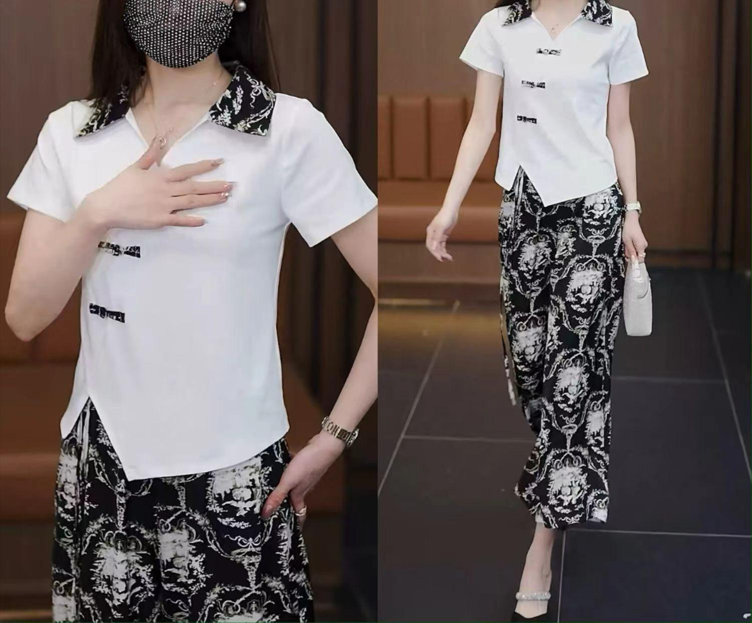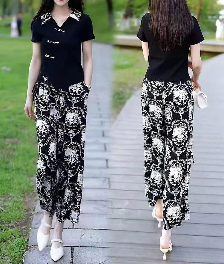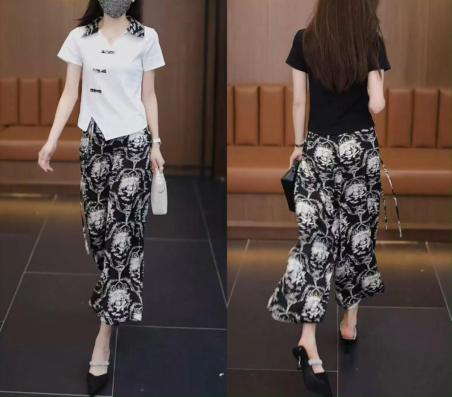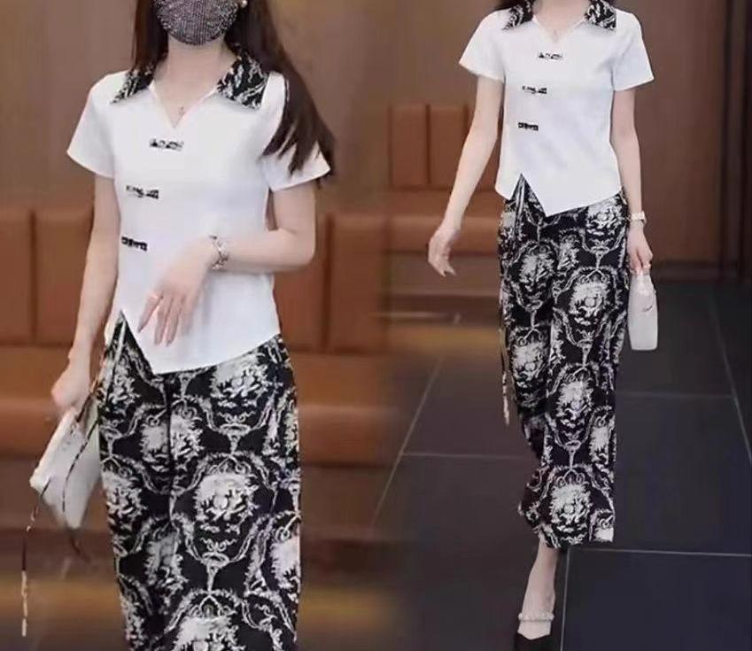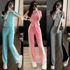2024 Pantalones de pierna ancha de manga corta Traje deportivo casual para mujer de dos piezas Nuevo verano Moda elegante Estilosa Reductor de edad