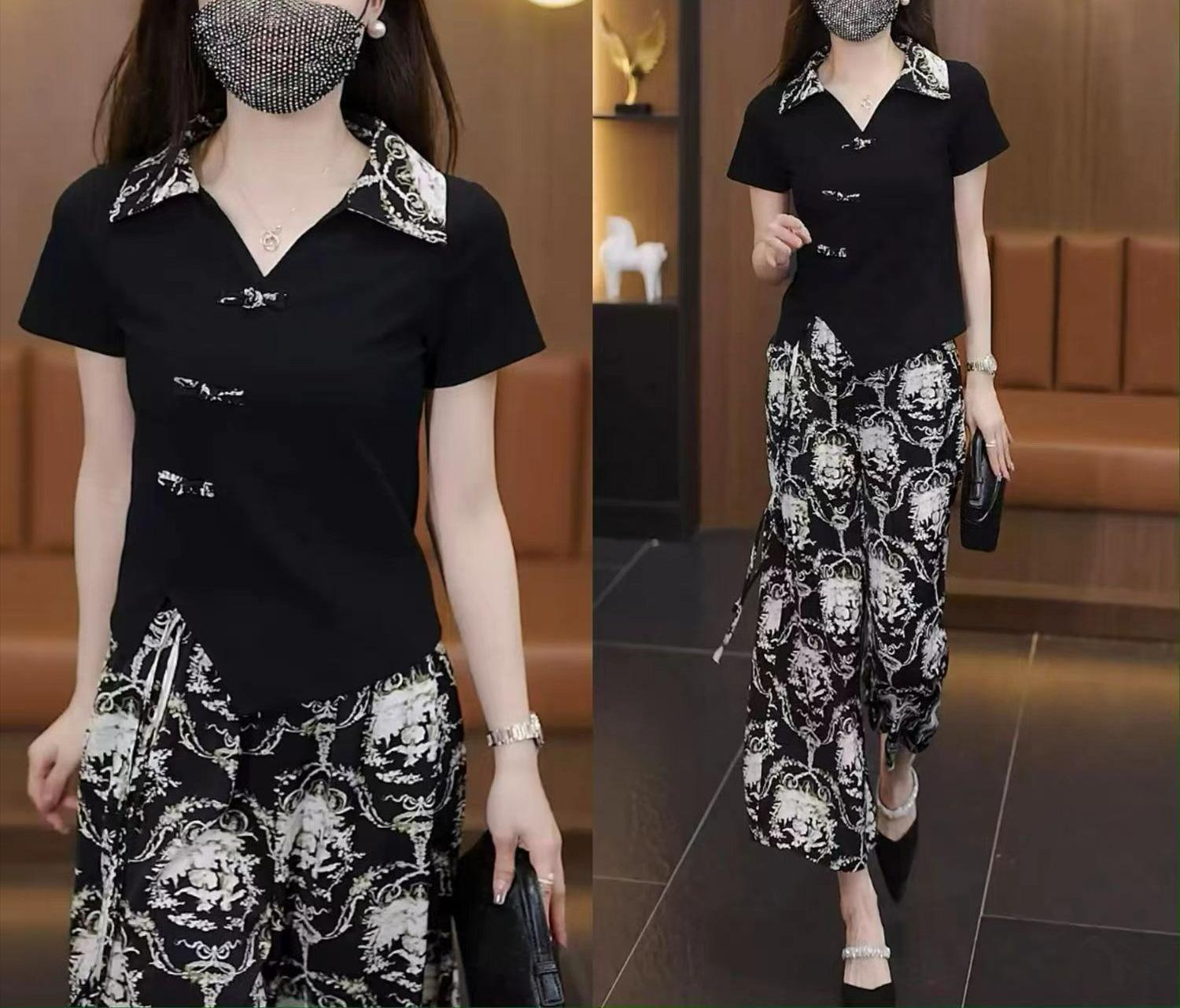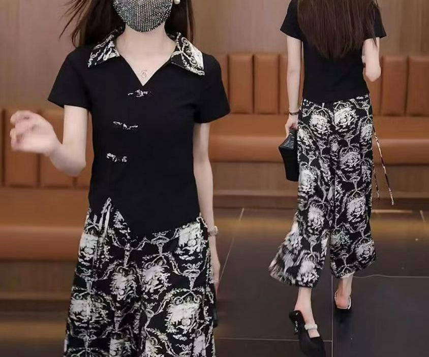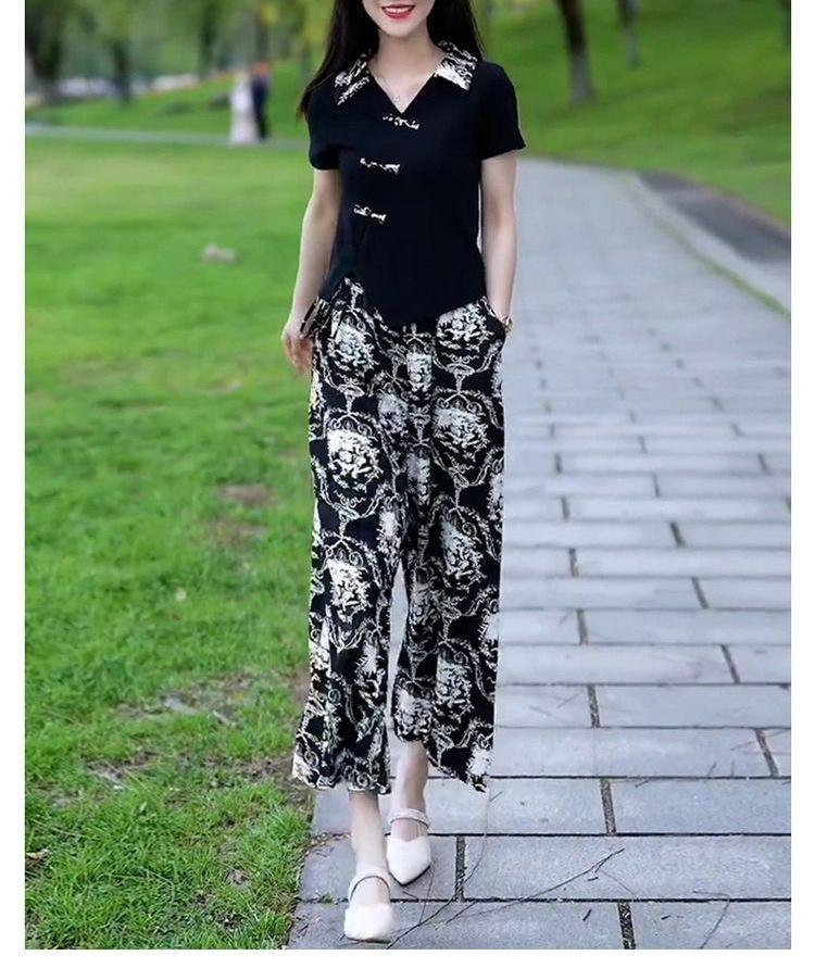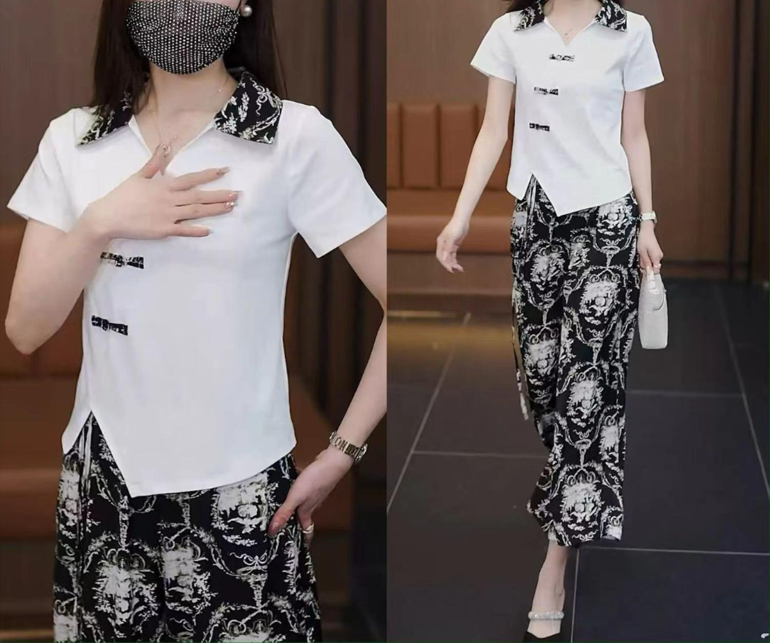 2024 Pantalones de pierna ancha de manga corta Traje deportivo casual para mujer de dos piezas Nuevo verano Moda elegante Estilosa Reductor de edad