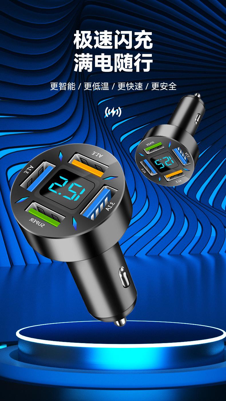 Cargador de Teléfono Móvil para Coche 120W Alta Potencia Carga Súper Rápida Enchufe Convertidor de Toma de Encendedor de Cigarrillos para Coche Carga Flash Multifuncional
