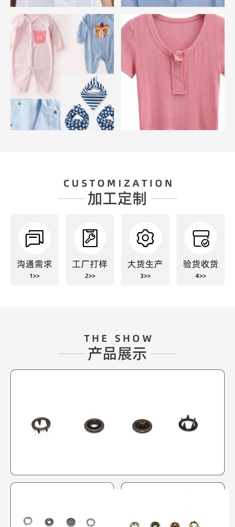Stock Listo de Fábrica Hebilla de Cinco Garras de Aleación Broche Metálico para Bebé Botón Metálico Botón Redondo Hueco Hebilla de Seguridad Antialérgica