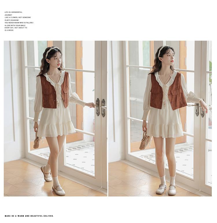 Vestido de dos piezas para mujer Primavera Verano Otoño 2025 Nuevo Estilo Universitario Chica Retro Estilo Mori Pequeño Estilo Vacacional