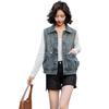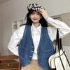 Chaleco vaquero vintage estilo Hong Kong para mujer, corto primavera y otoño 2025 nuevo, con bolsillo grande, sin mangas, chaqueta chaleco estilo europeo y americano