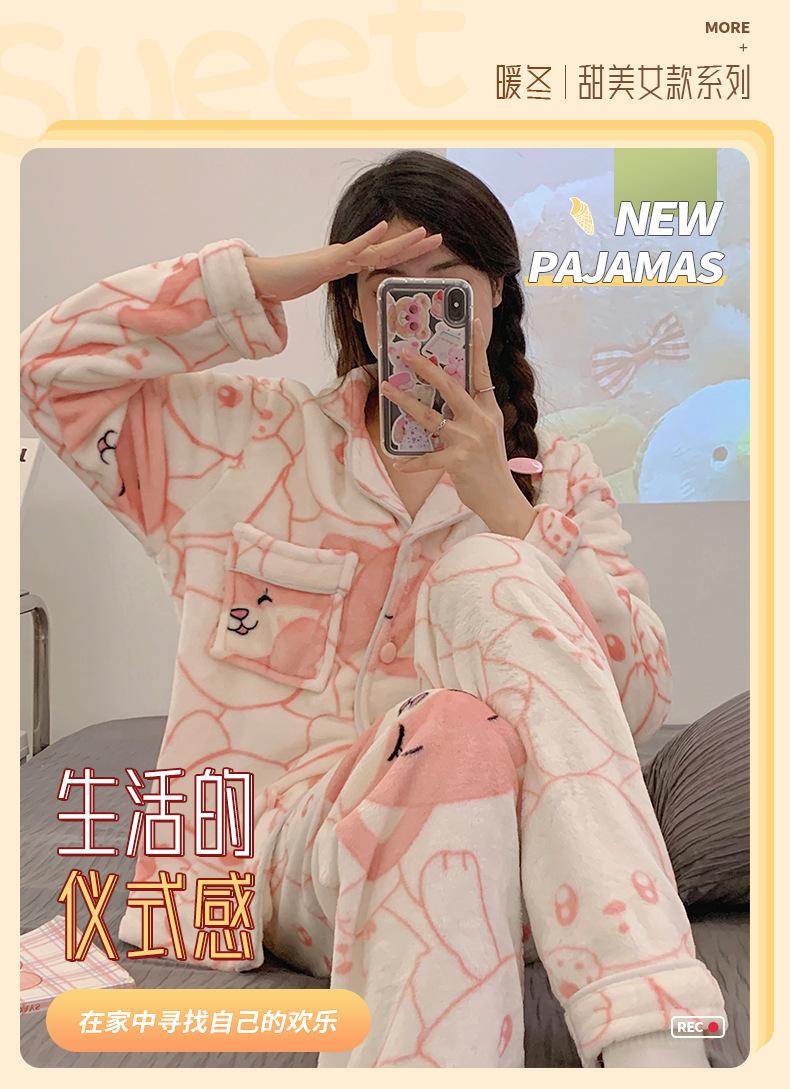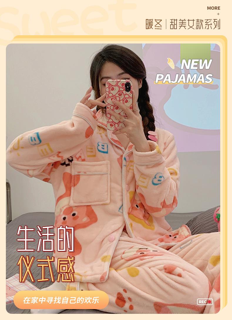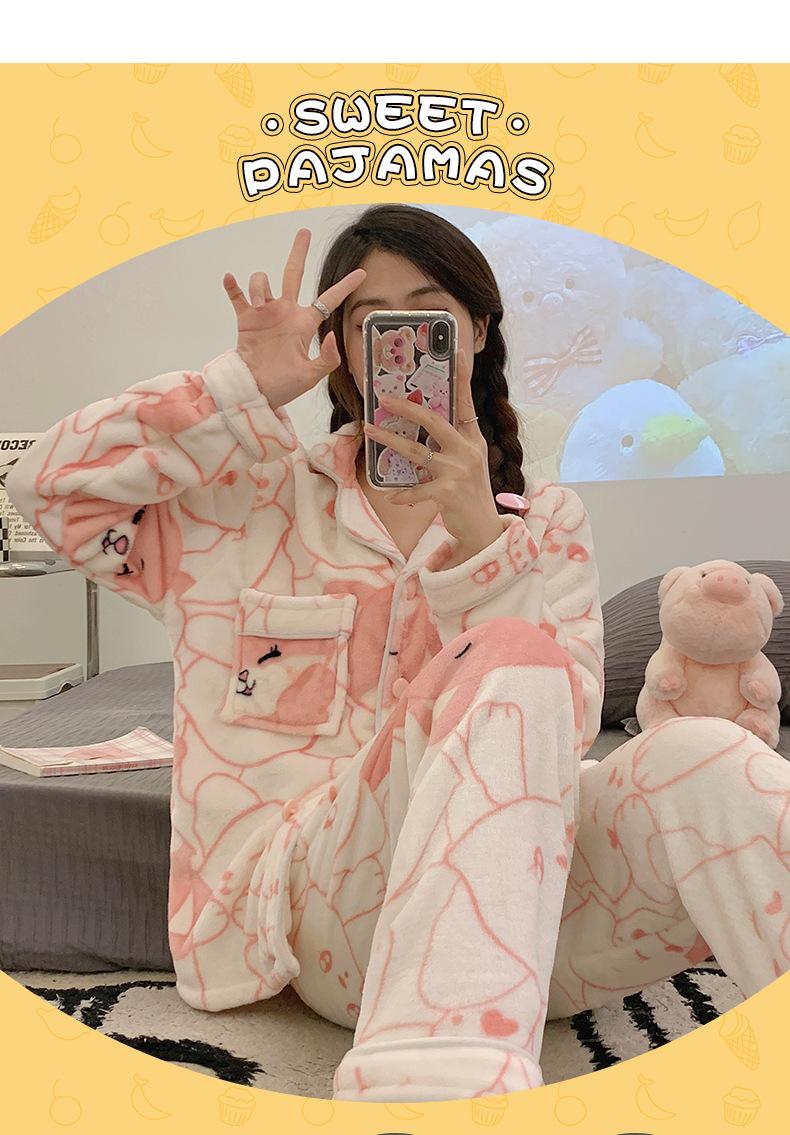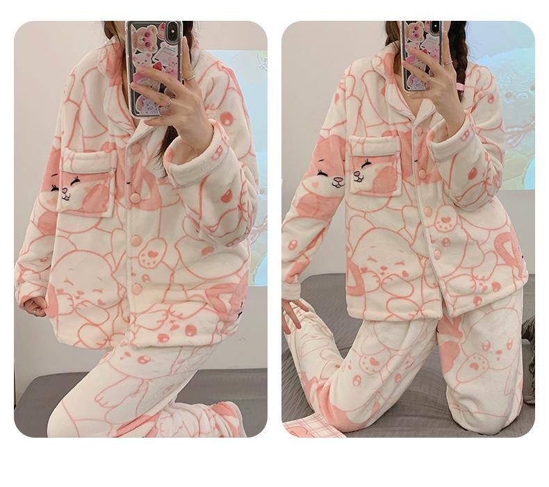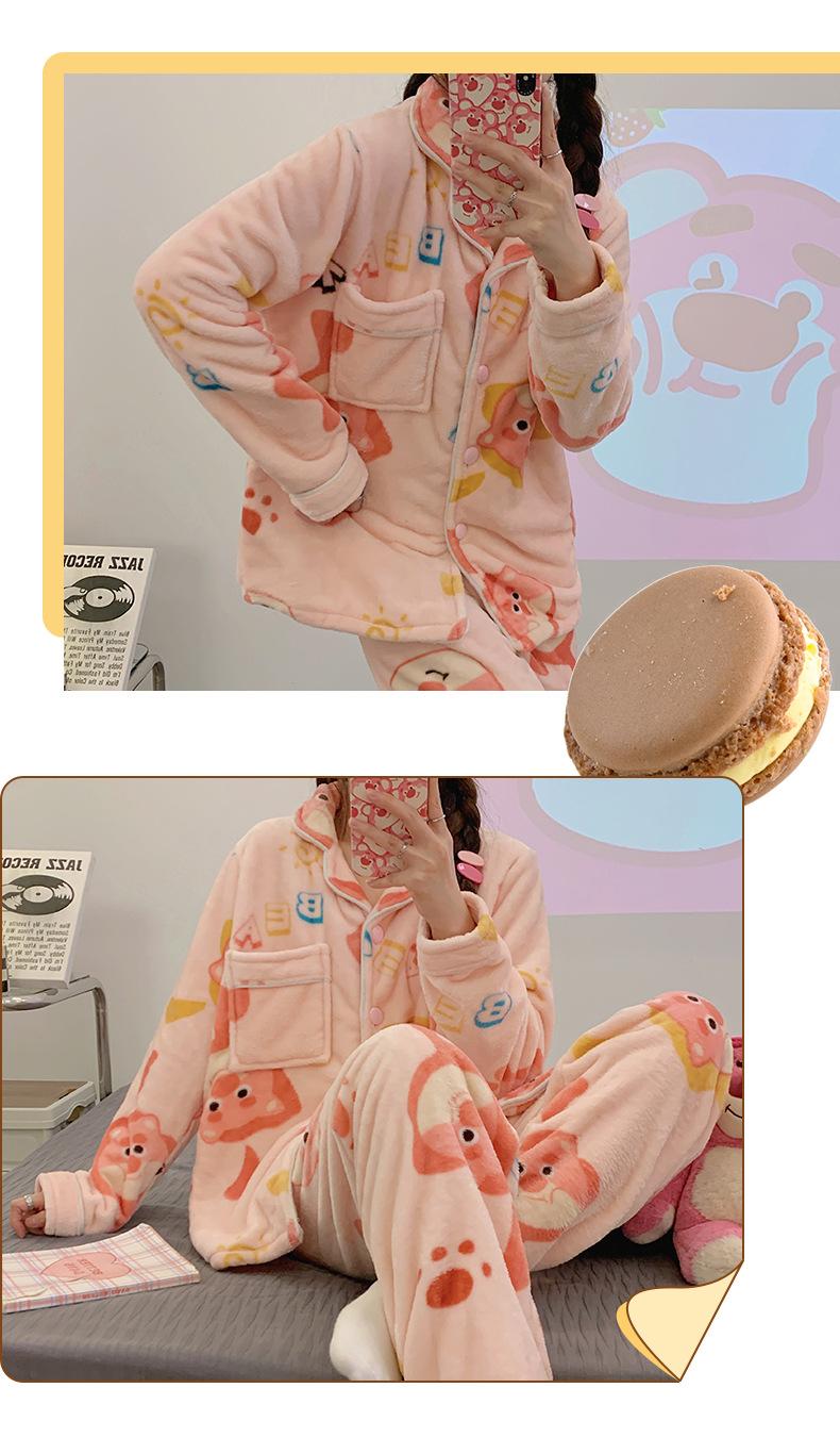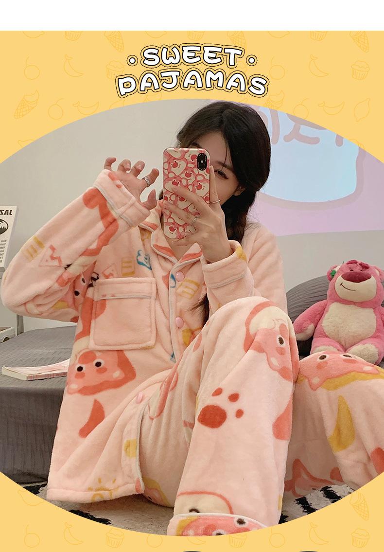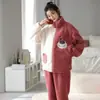 Pijamas para mujer otoño e invierno coolomi forro polar coral grueso con forro polar invierno cálido franela lindo traje de ropa para el hogar