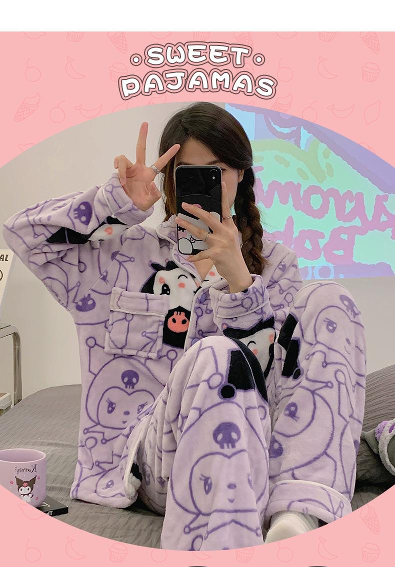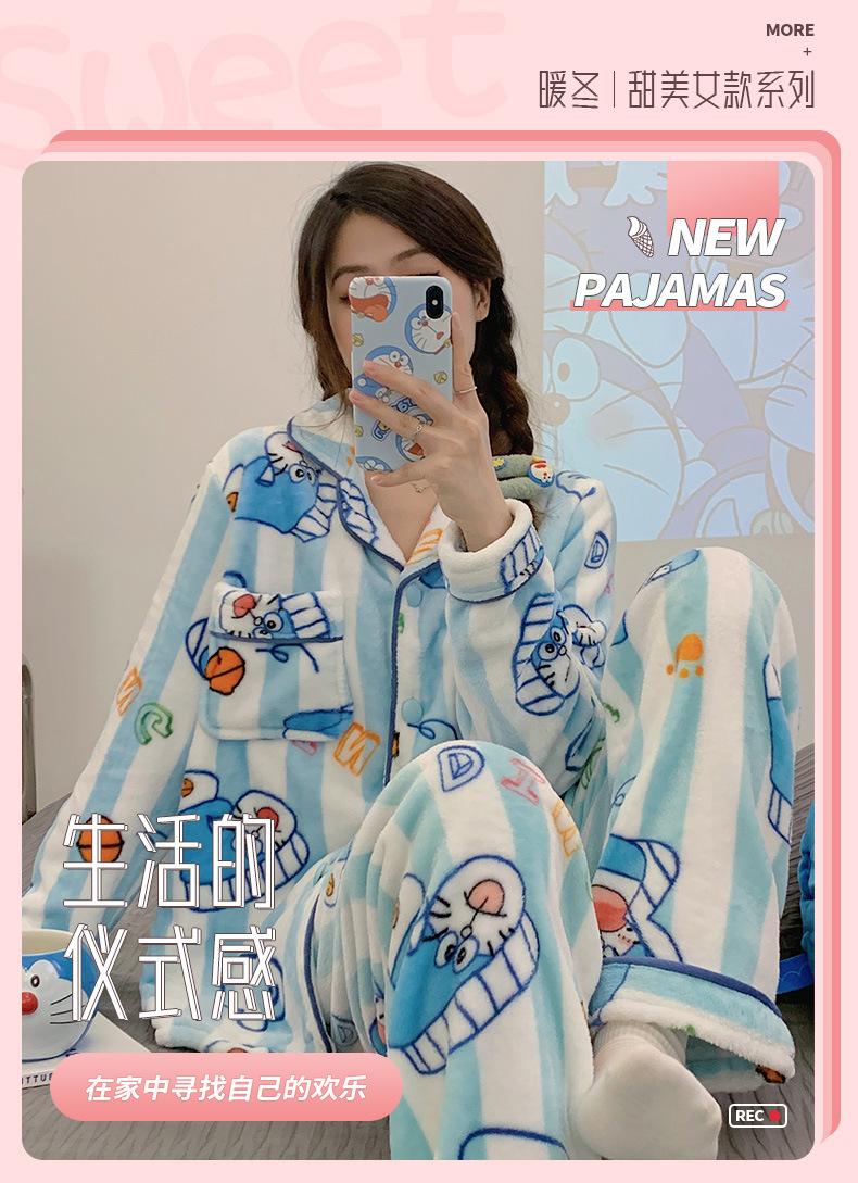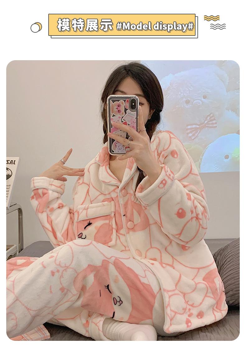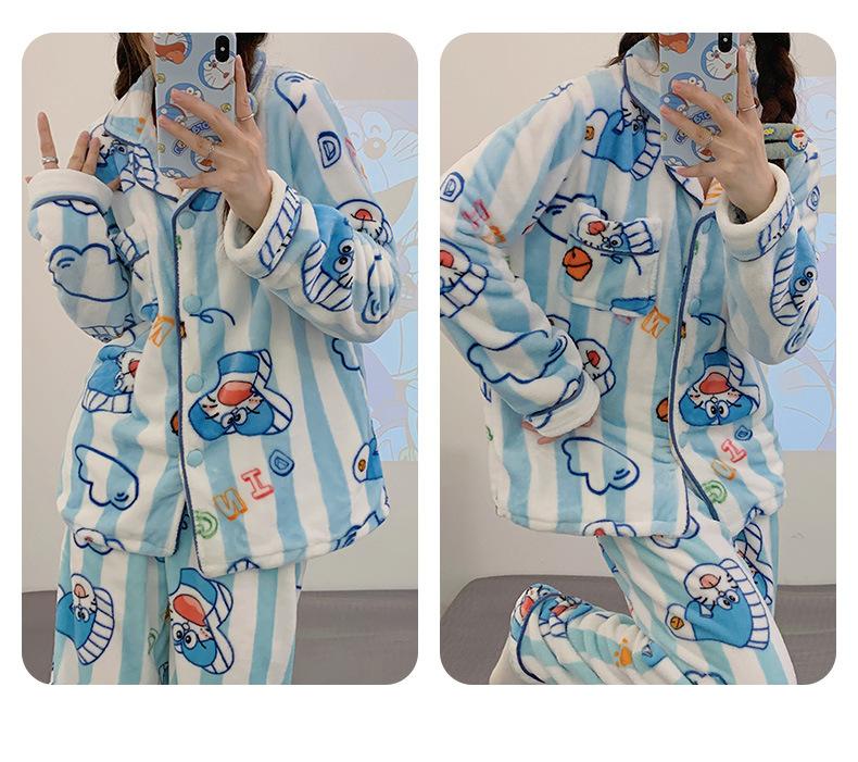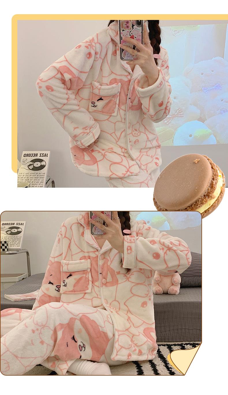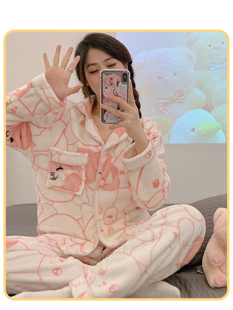 Pijamas para mujer otoño e invierno coolomi forro polar coral grueso con forro polar invierno cálido franela lindo traje de ropa para el hogar