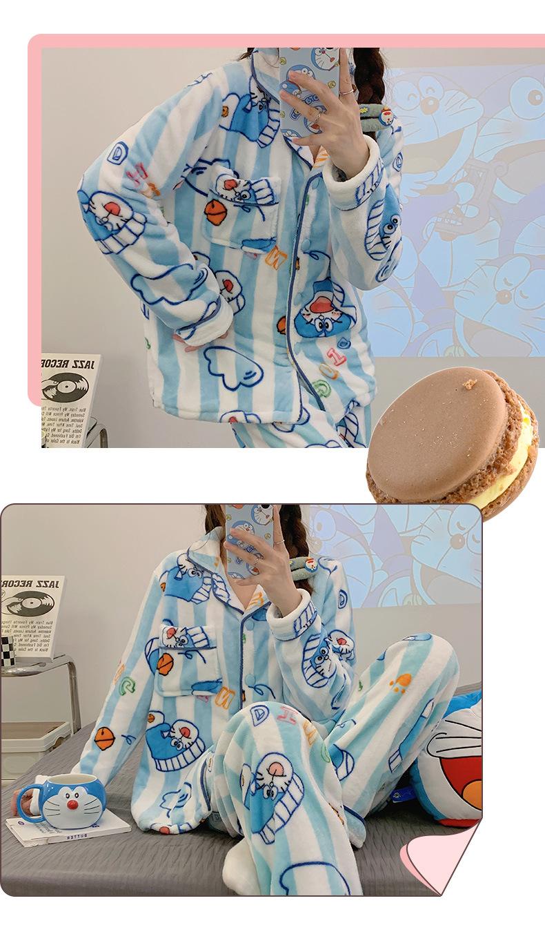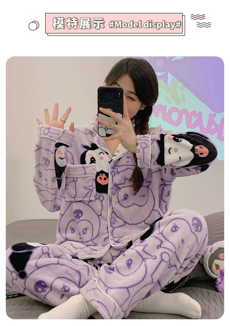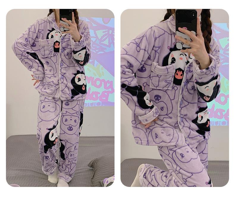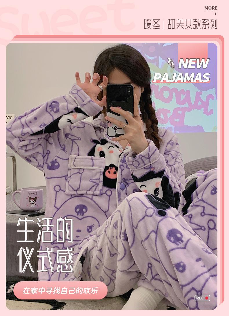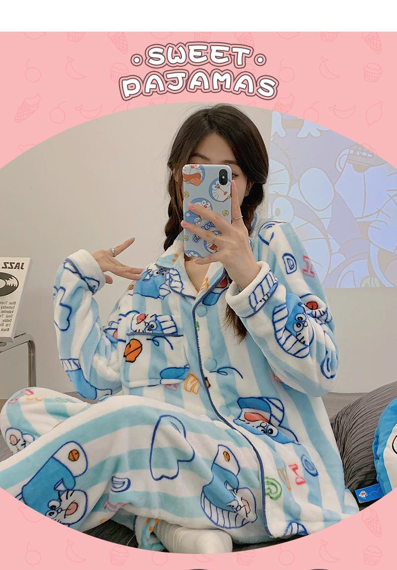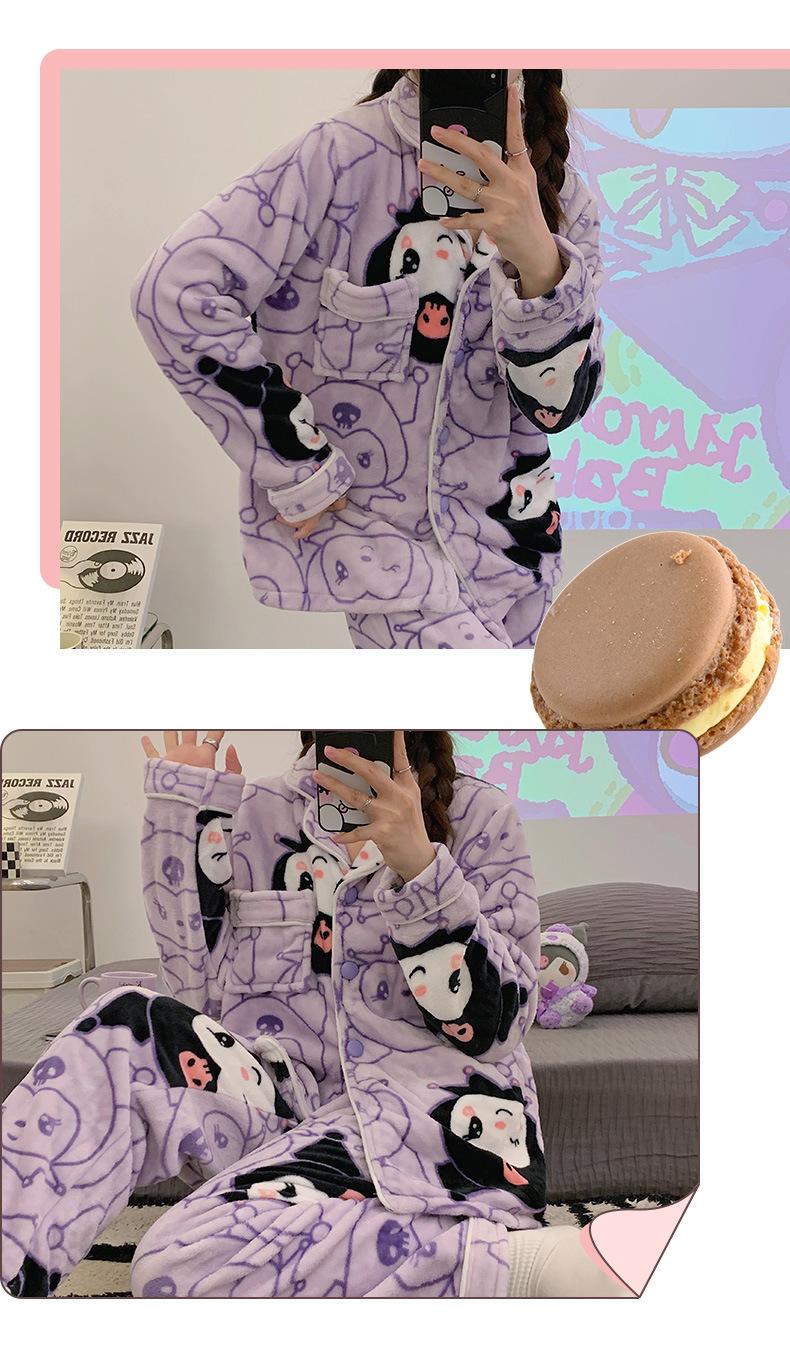 Pijamas para mujer otoño e invierno coolomi forro polar coral grueso con forro polar invierno cálido franela lindo traje de ropa para el hogar