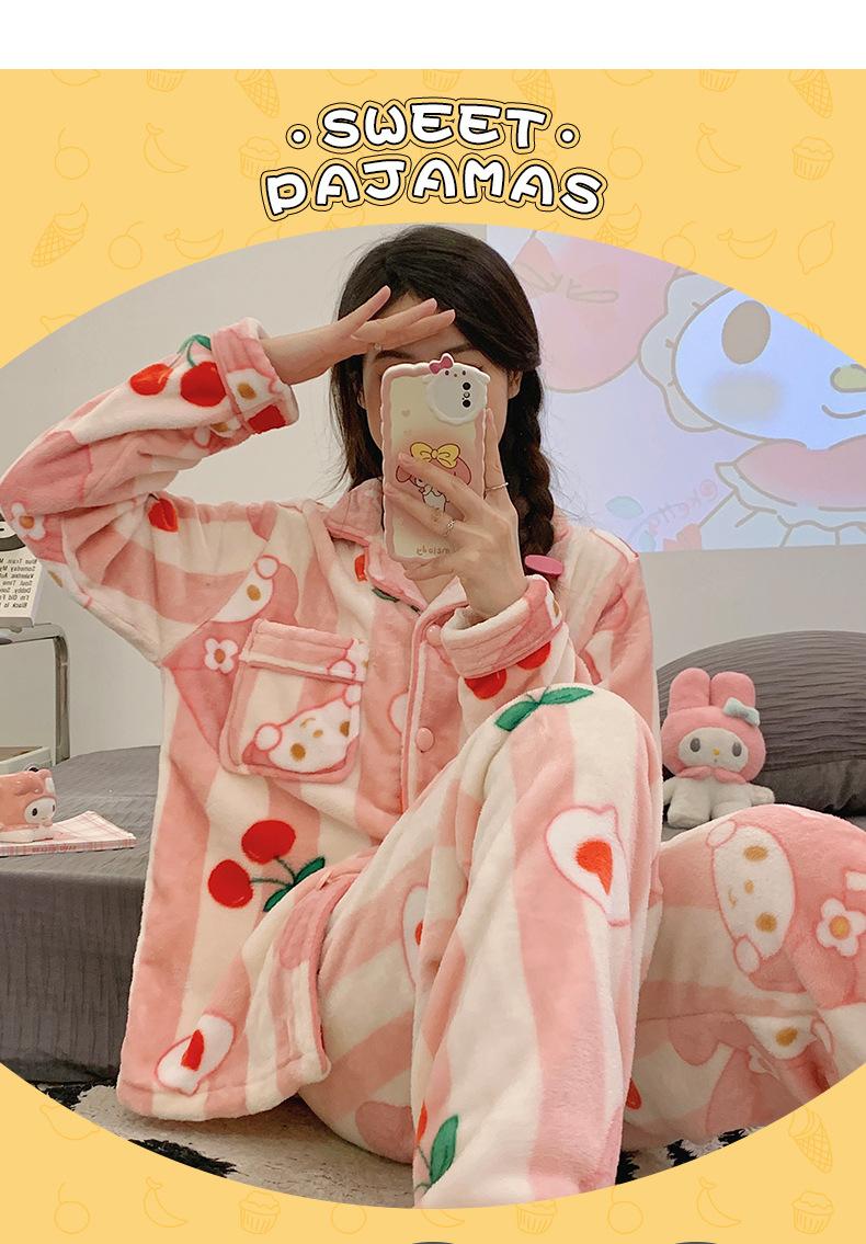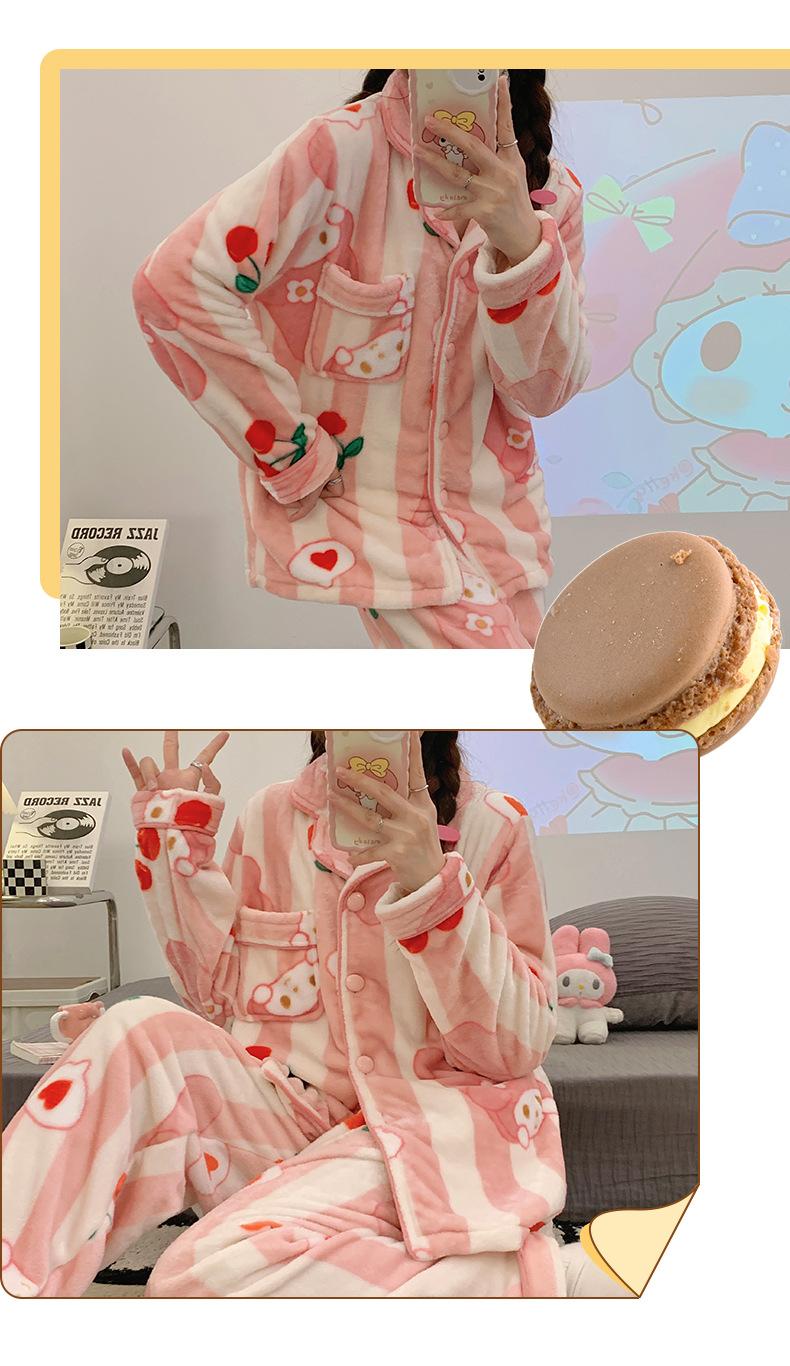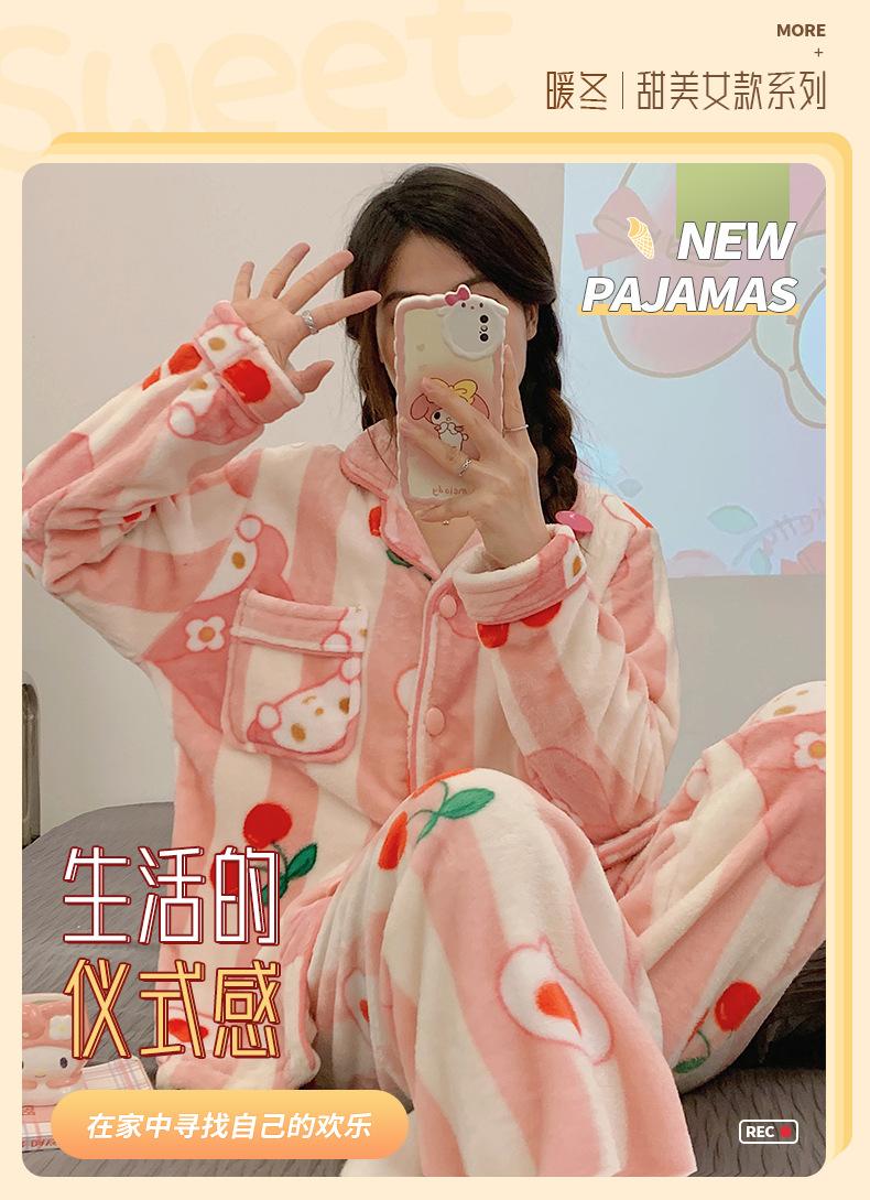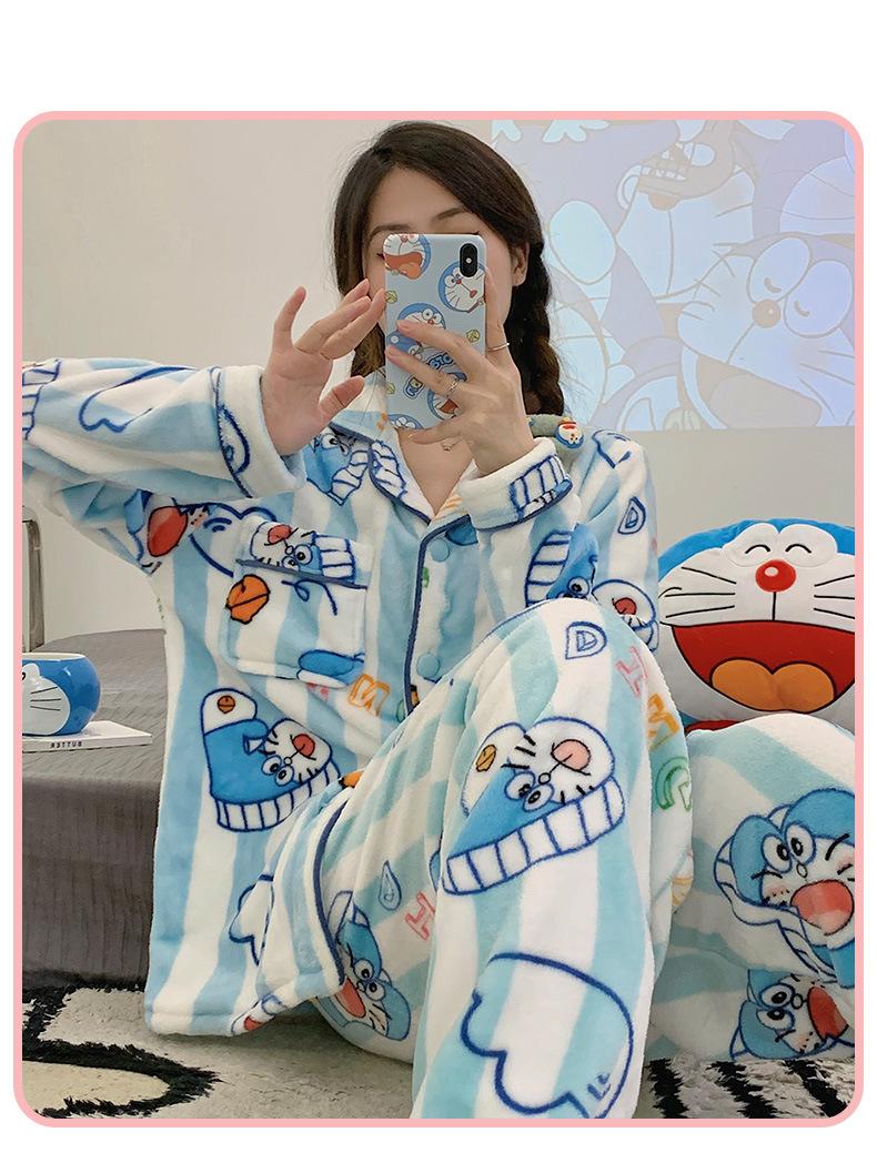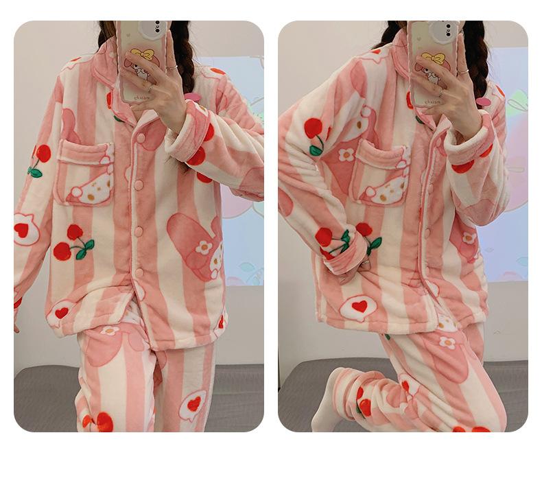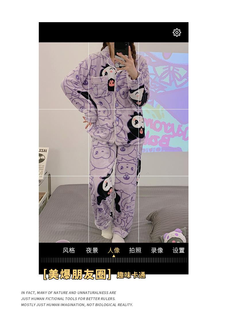 Pijamas para mujer otoño e invierno coolomi forro polar coral grueso con forro polar invierno cálido franela lindo traje de ropa para el hogar