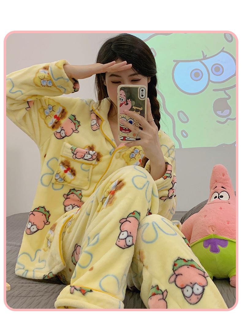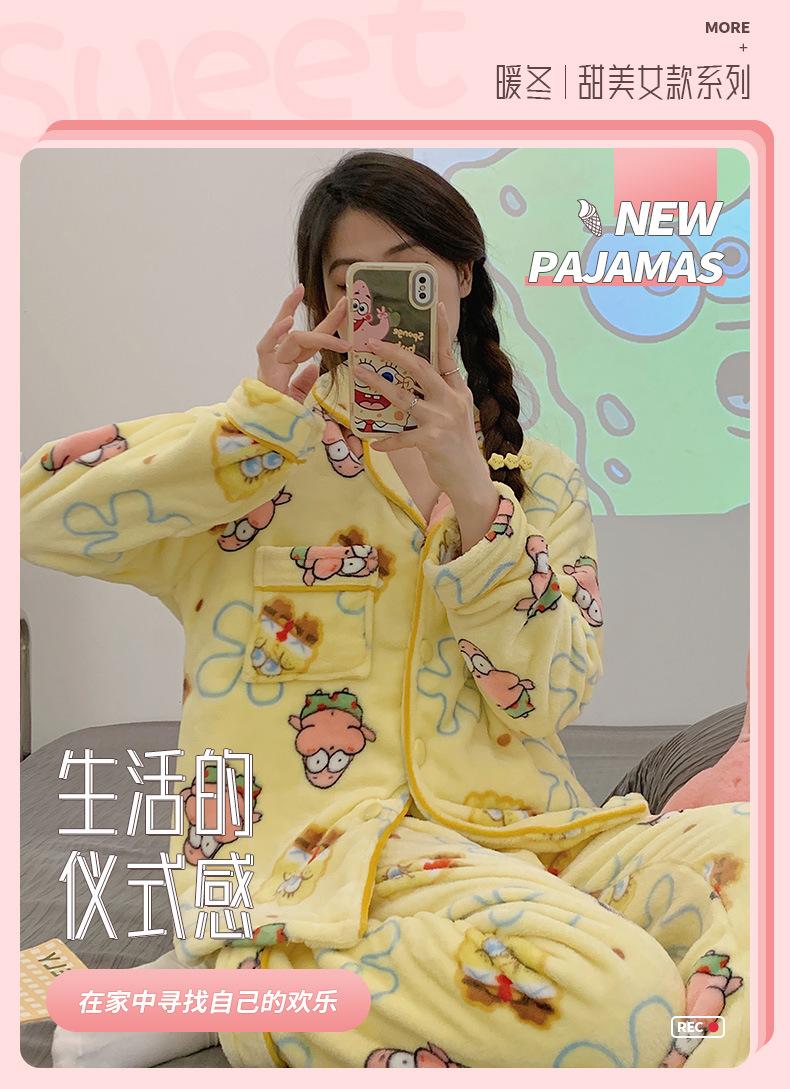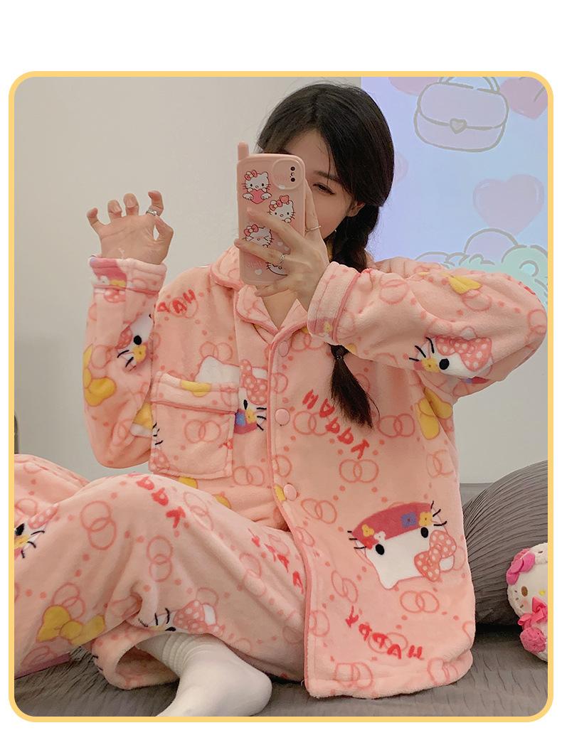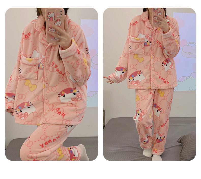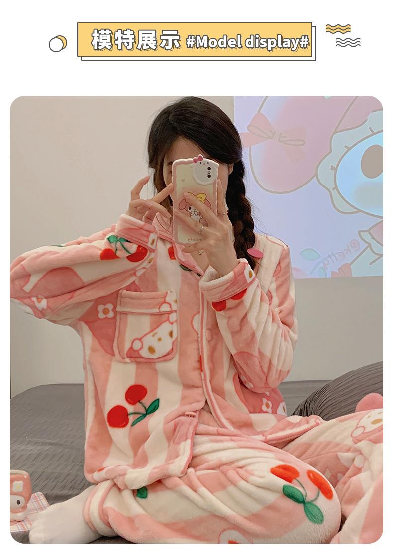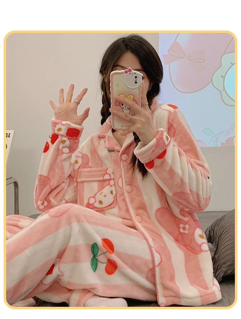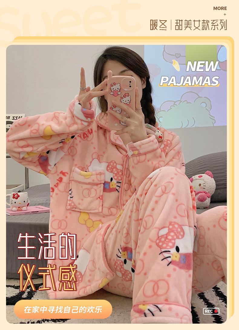 Pijamas para mujer otoño e invierno coolomi forro polar coral grueso con forro polar invierno cálido franela lindo traje de ropa para el hogar
