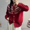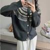 Abrigo de suéter grueso de cuello redondo de estilo coreano a la moda simple otoño/invierno 2025 cárdigan de punto jacquard Fair Isle para mujer