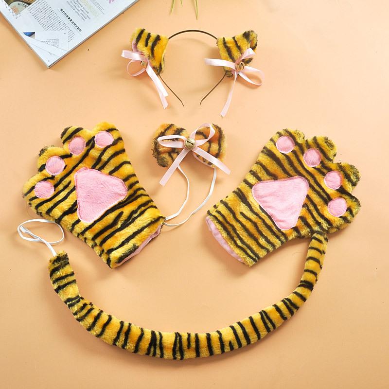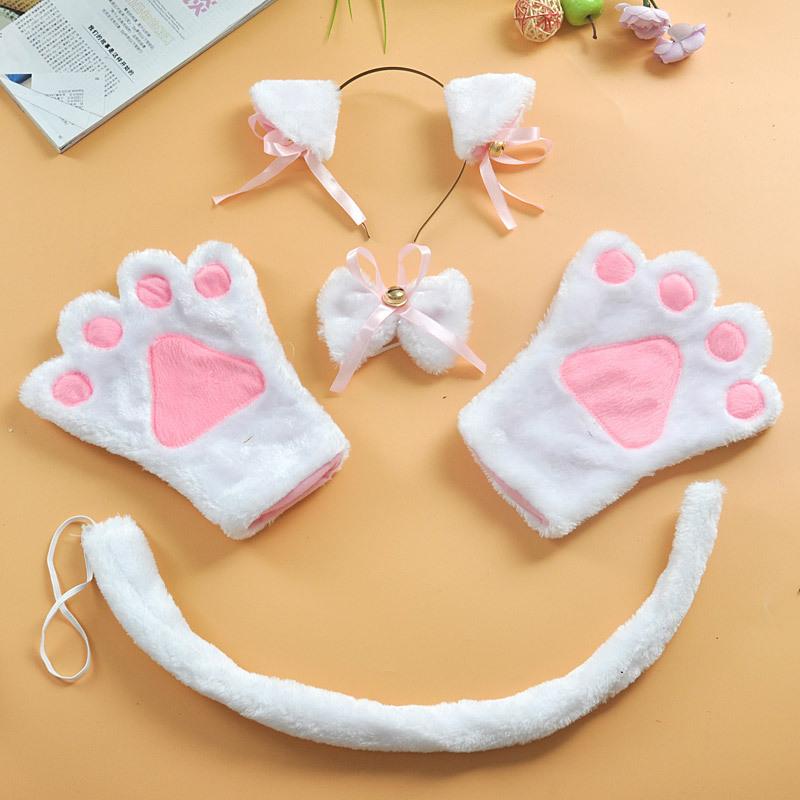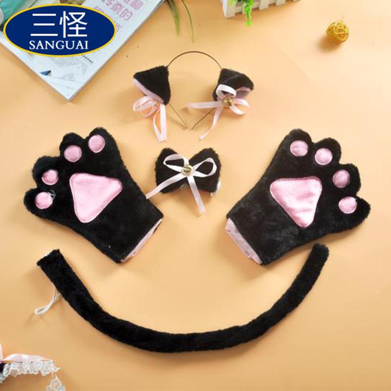 Halloween COSPLAY oreja de gato animal de cuatro piezas hecho a mano felpa diadema pajarita cola guantes accesorios de gato