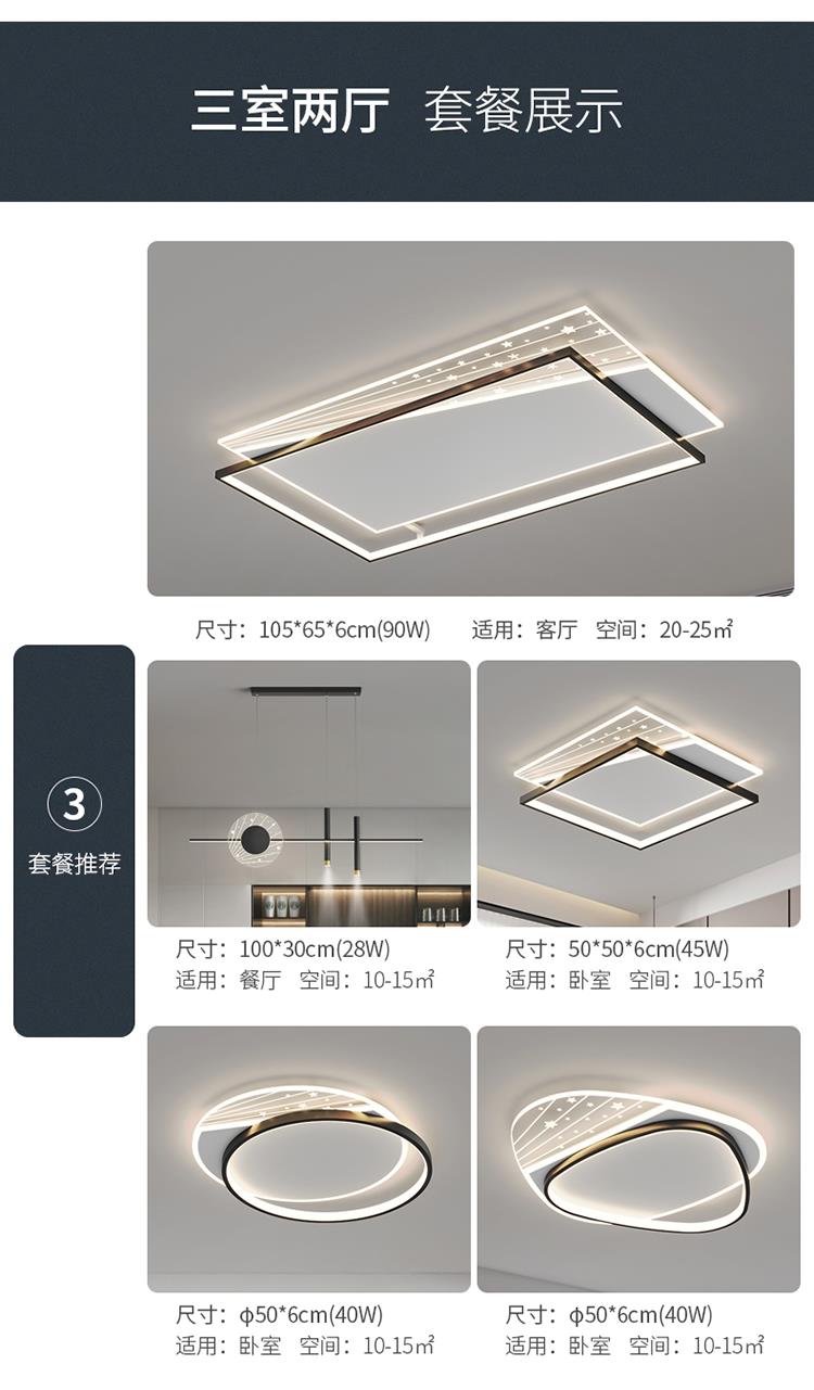 Guangdong Zhongshan Lámparas Combinadas Paquete Casa Completa Nórdico Moderno Simple Nuevo Atmosférico Sala de Estar Dormitorio Principal Lámpara de Techo
