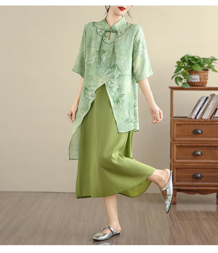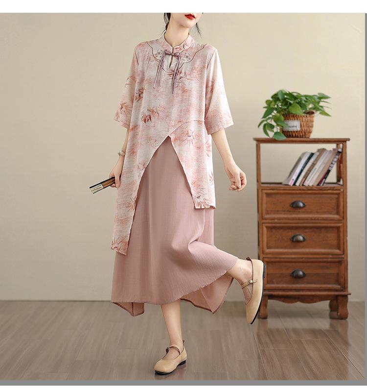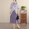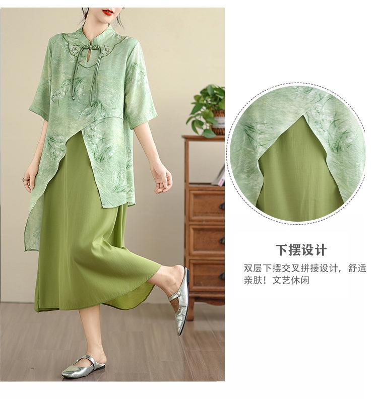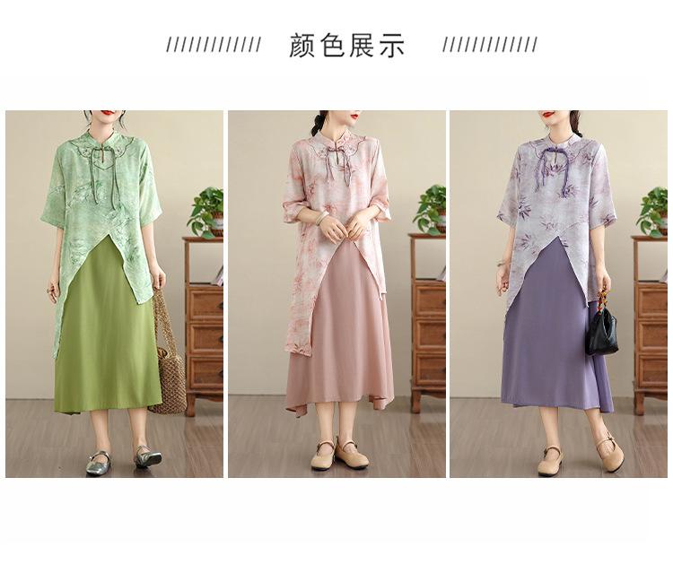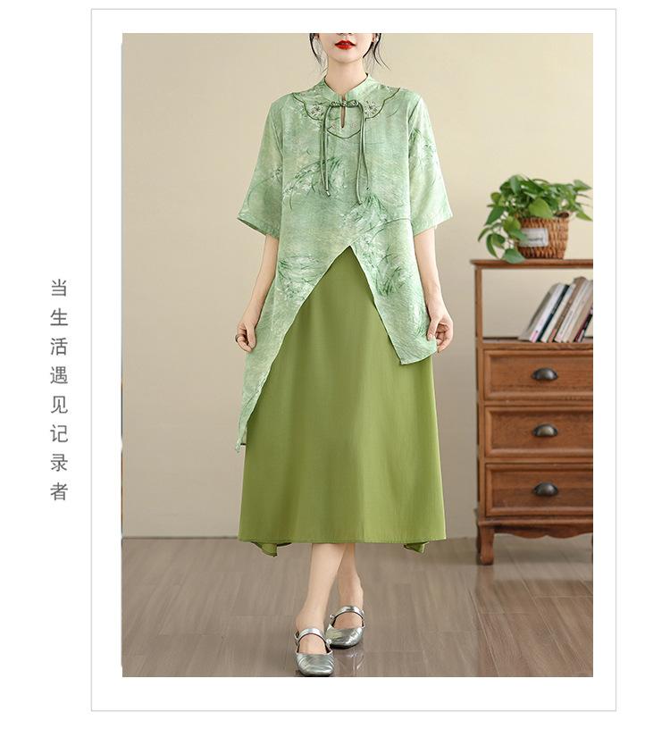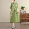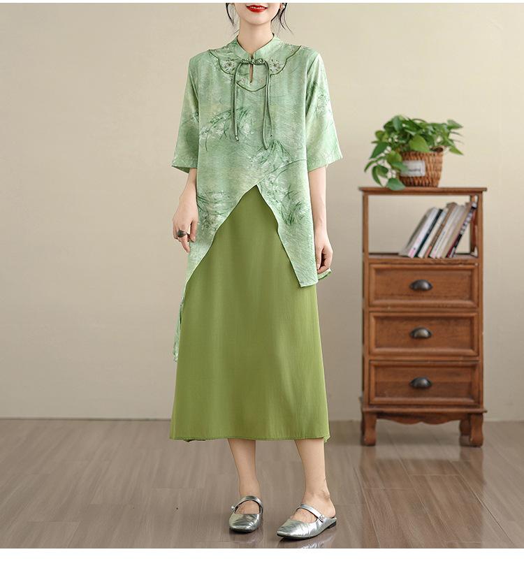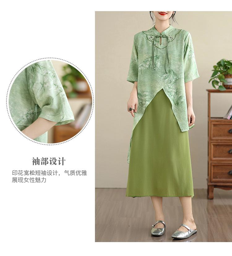 Ropa de Verano para Mamá 2025 Nuevo Estilo Talla Grande Conjunto Top Holgado Moda Popular Manga Corta Vestido Qi Pao Falda