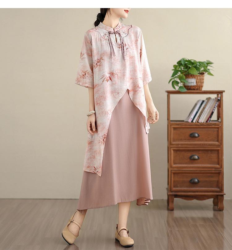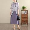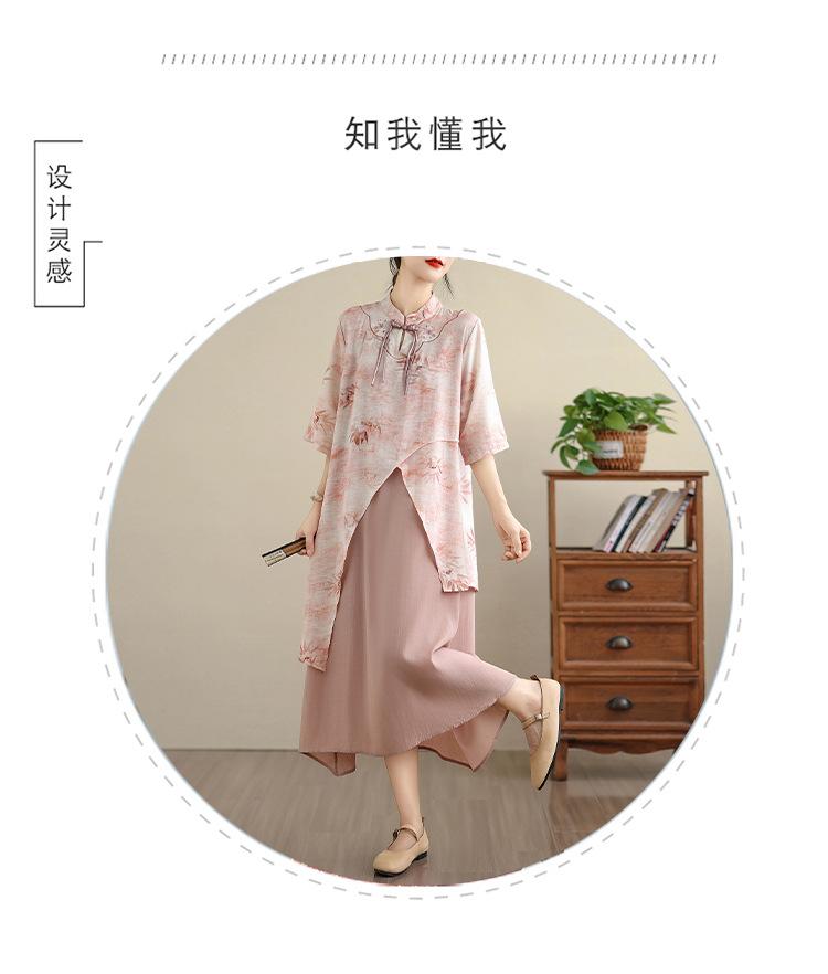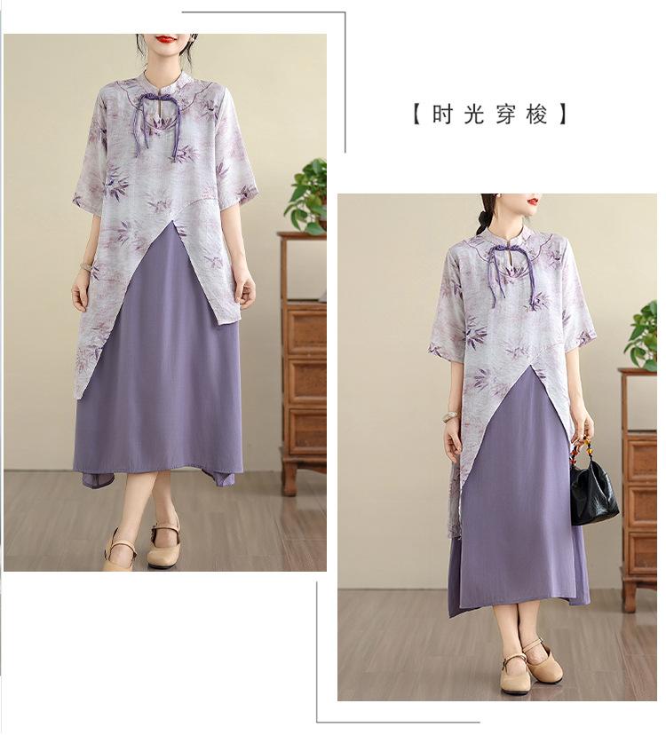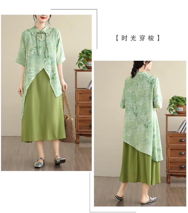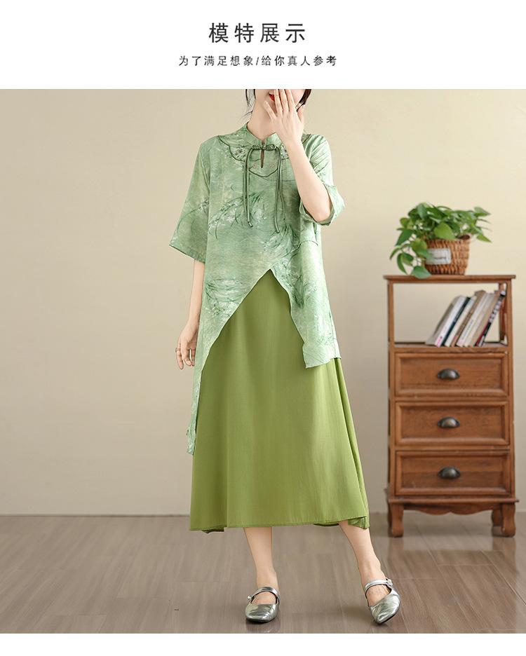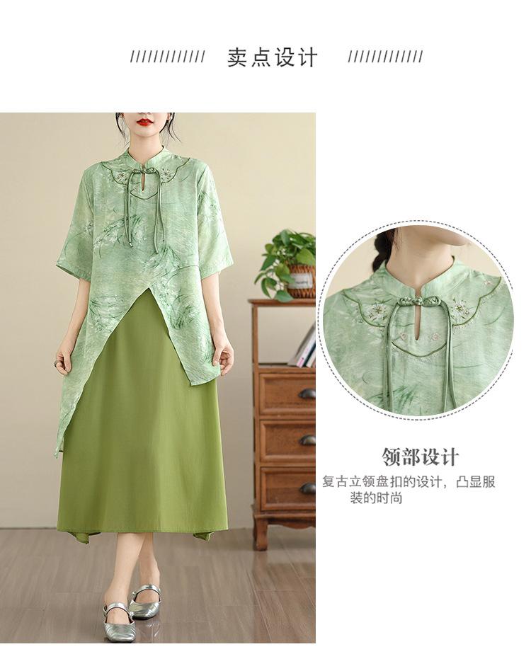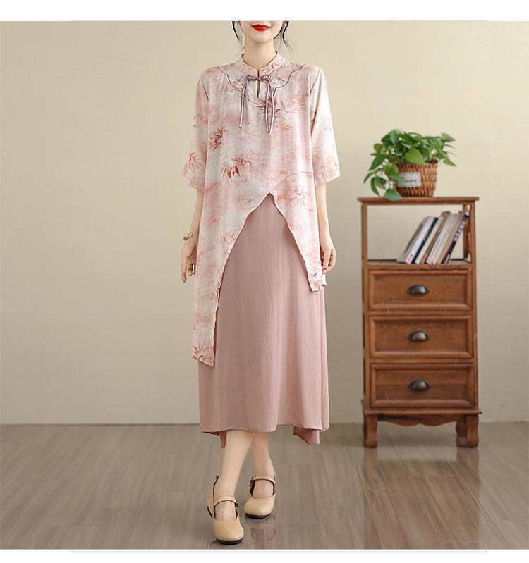 Ropa de Verano para Mamá 2025 Nuevo Estilo Talla Grande Conjunto Top Holgado Moda Popular Manga Corta Vestido Qi Pao Falda