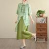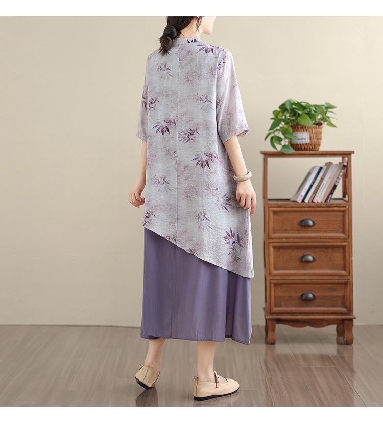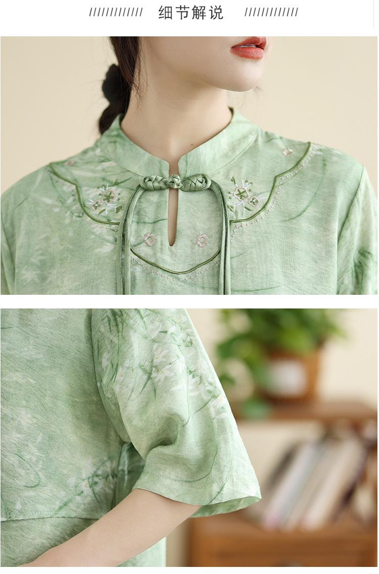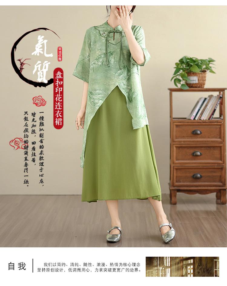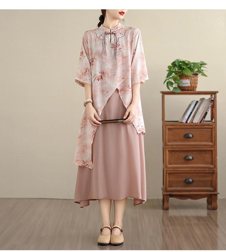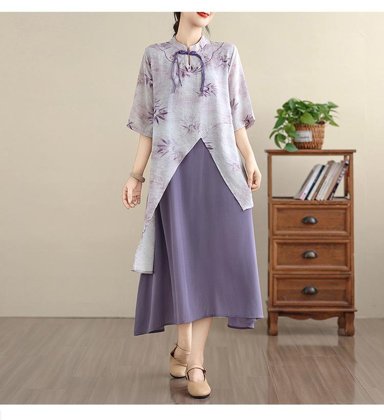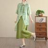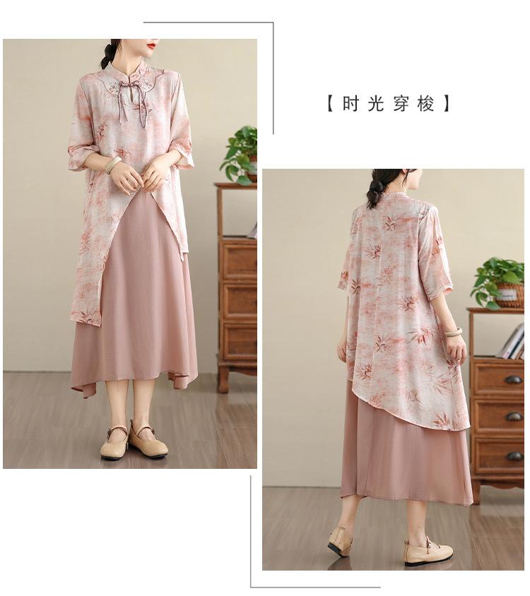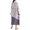 Ropa de Verano para Mamá 2025 Nuevo Estilo Talla Grande Conjunto Top Holgado Moda Popular Manga Corta Vestido Qi Pao Falda