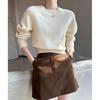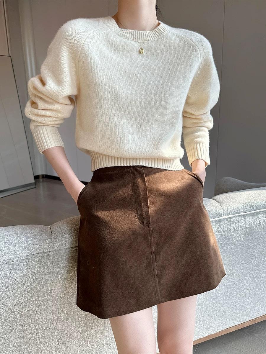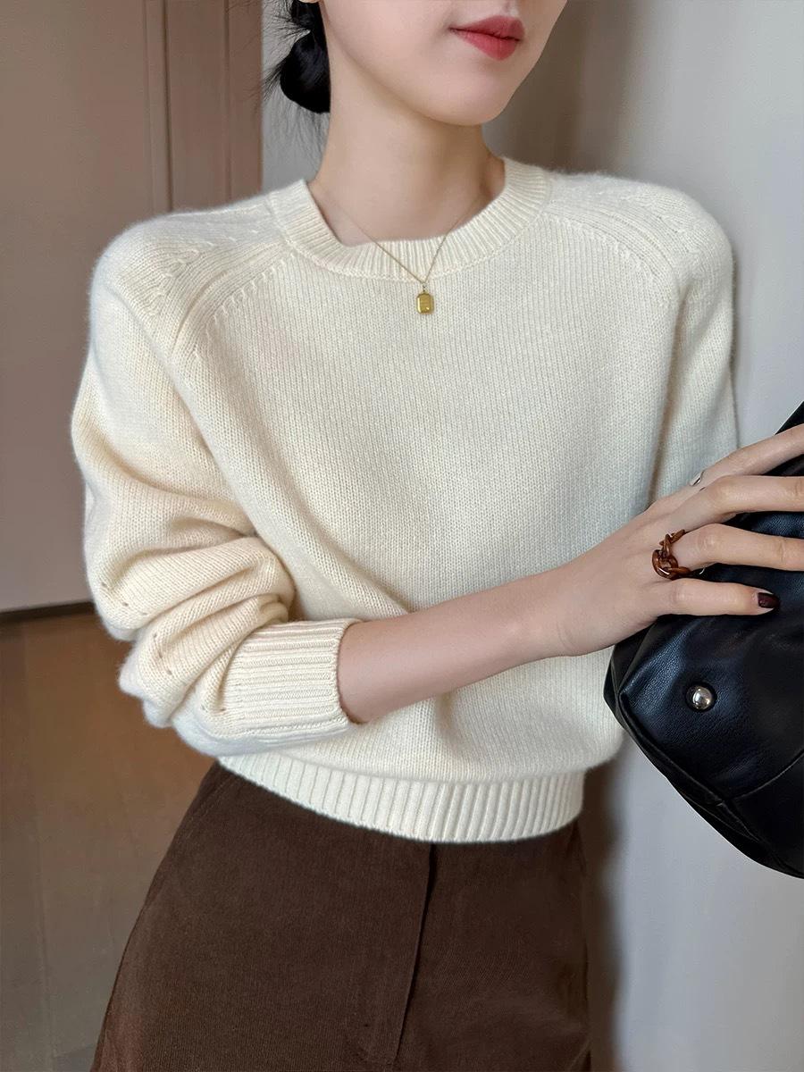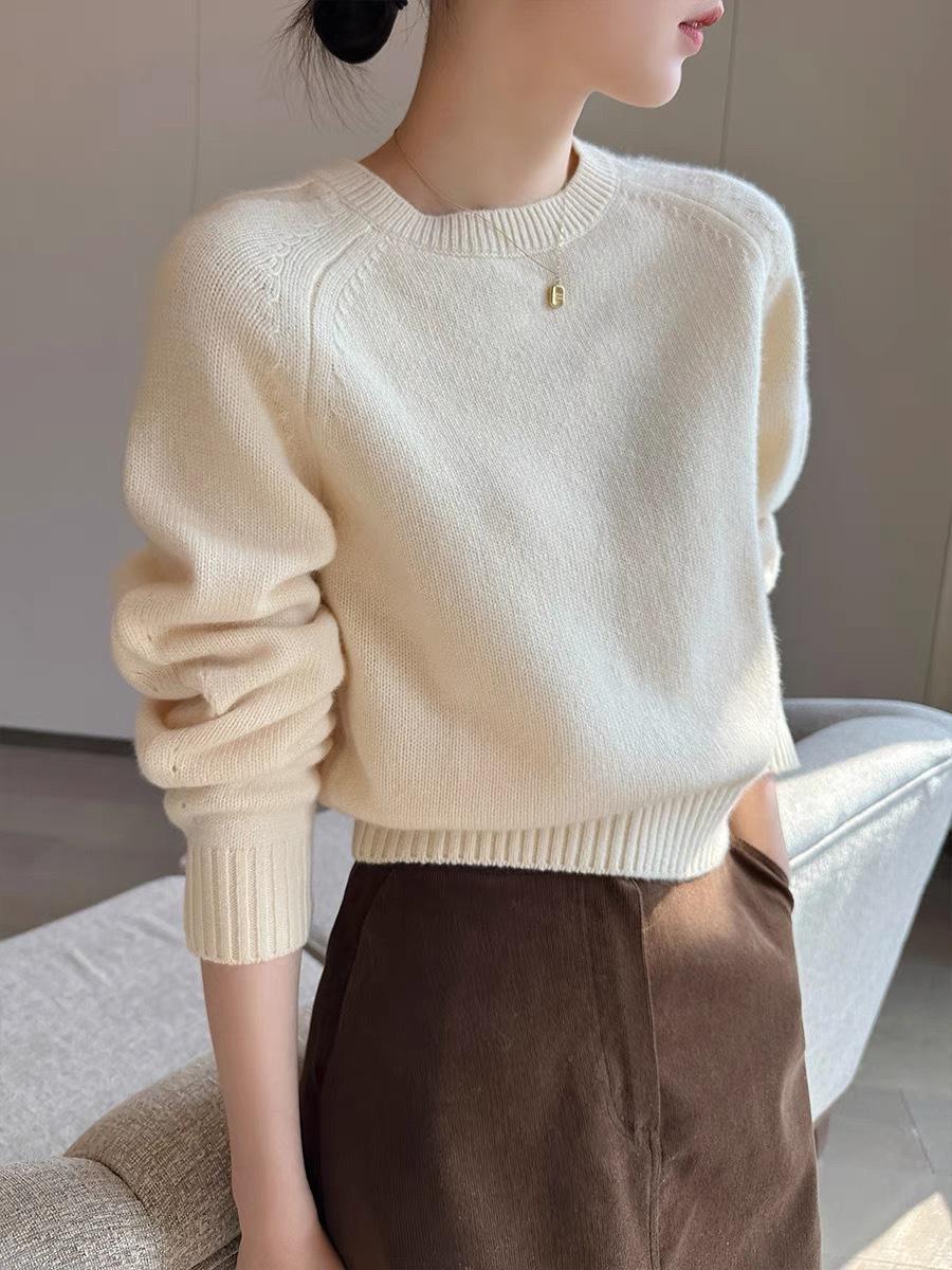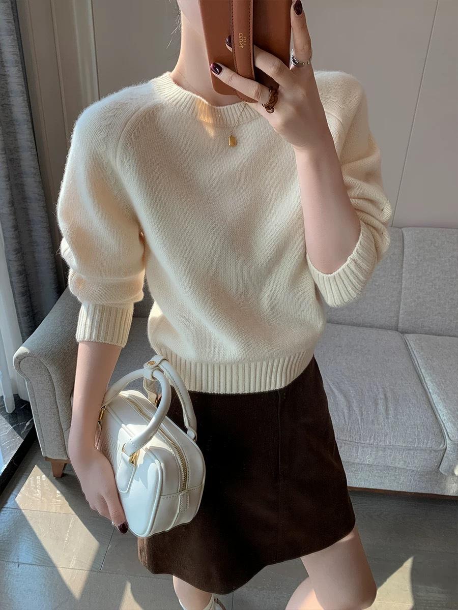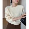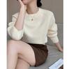 Suéter Blanco de Cuello Redondo y Manga Larga para Mujer Otoño e Invierno 2024 Nuevo Versátil Simple Elegante Suéter Pulóver