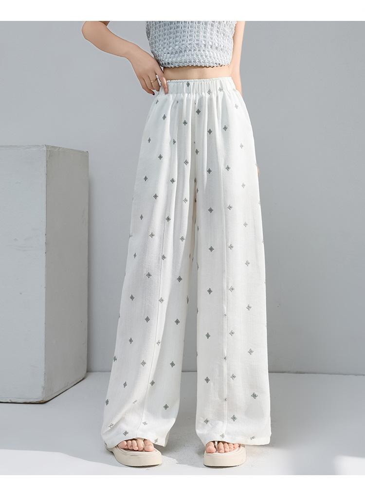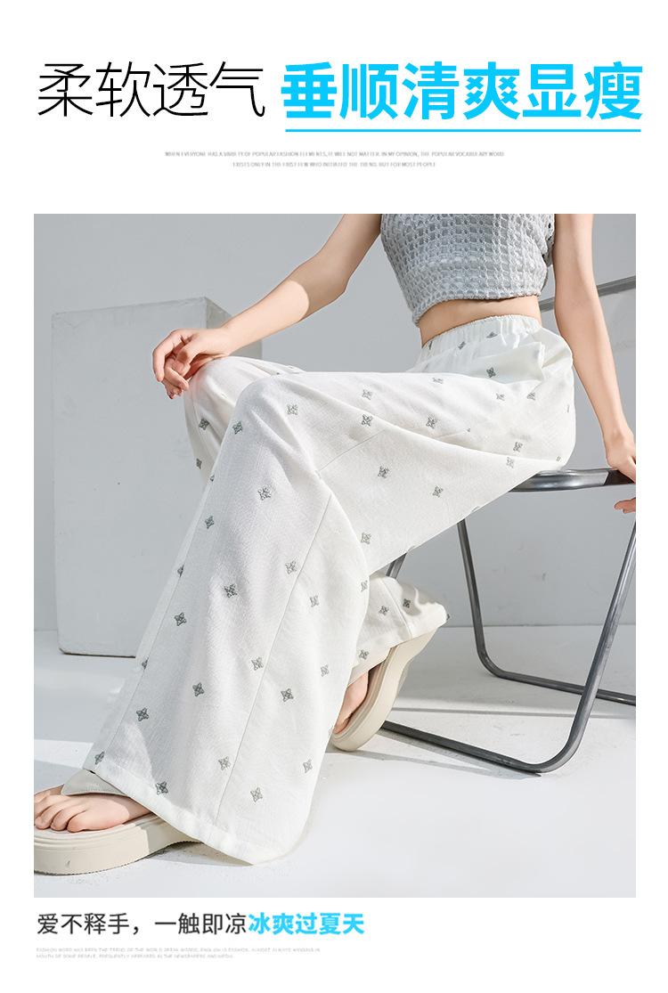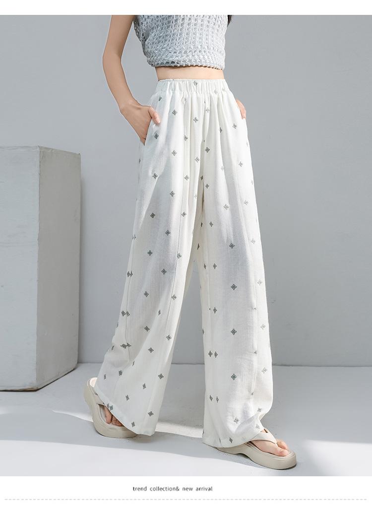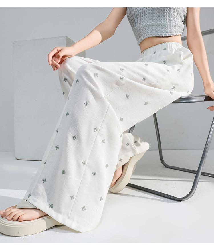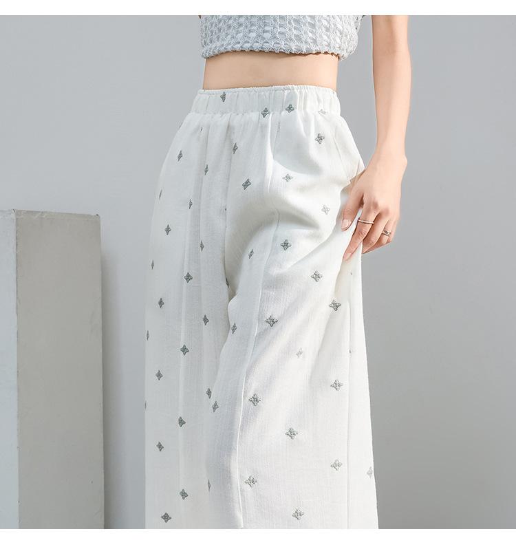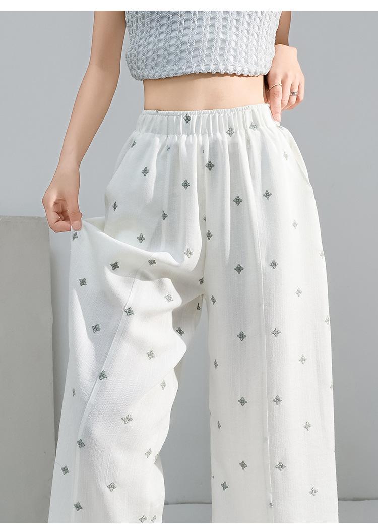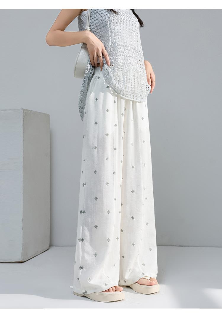 Pantalones blancos bordados de alta gama para mujer 2025 nuevo verano perezoso casual petite pierna recta pierna ancha pantalones largos