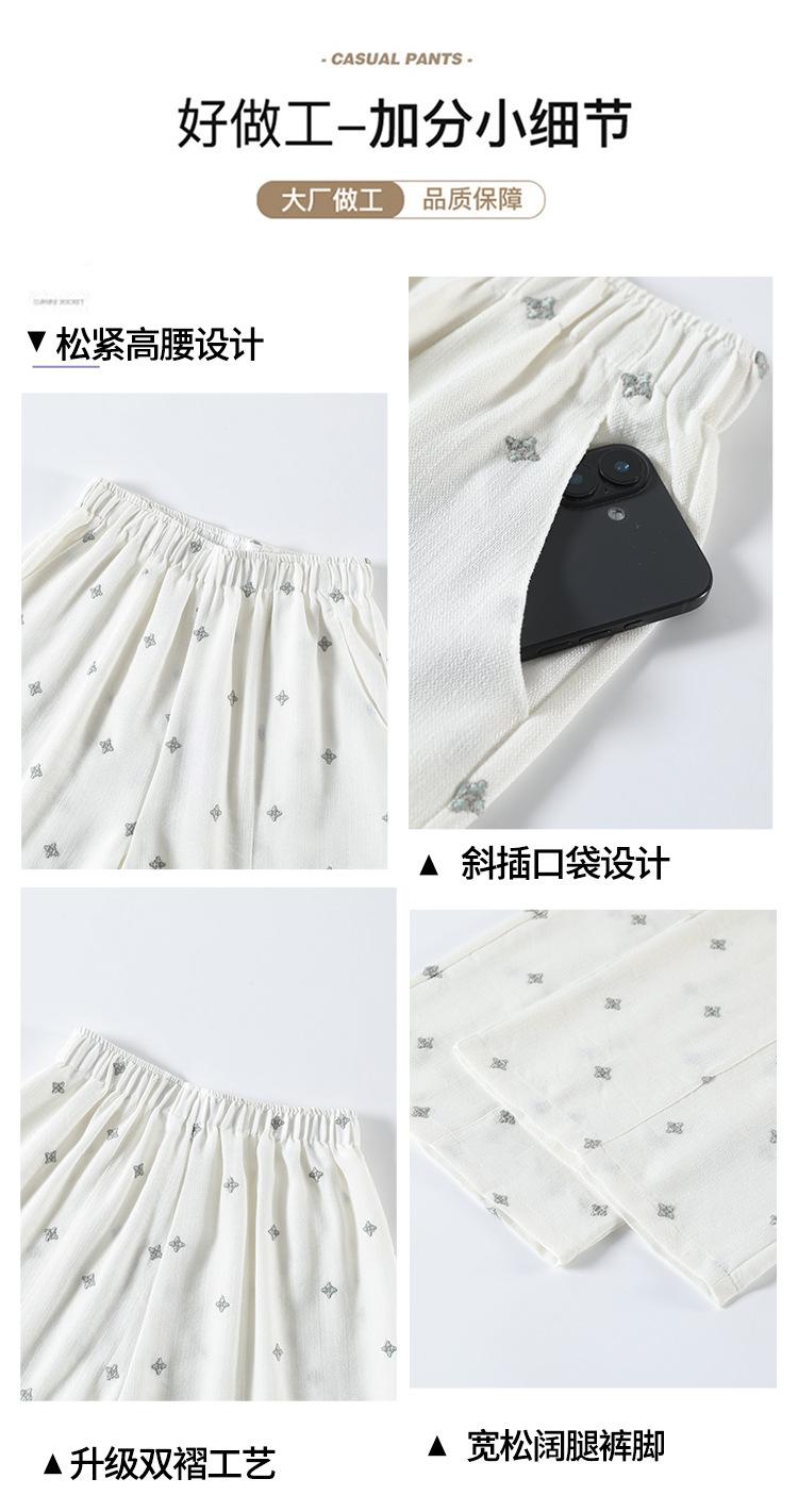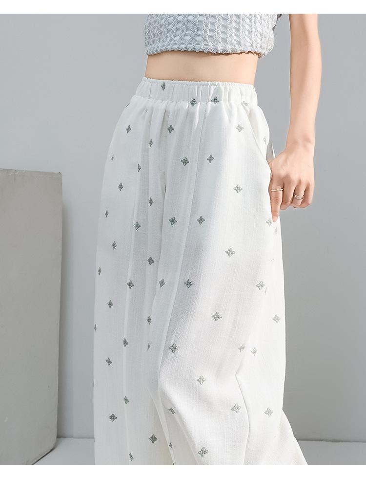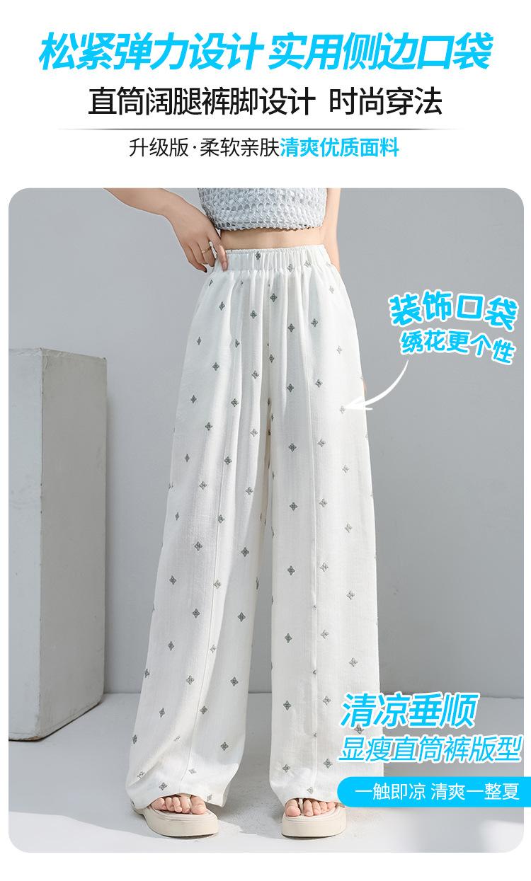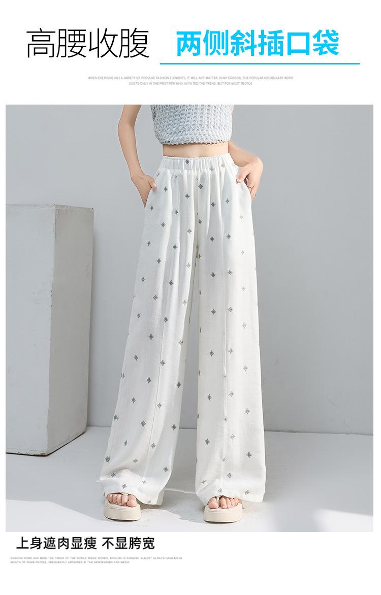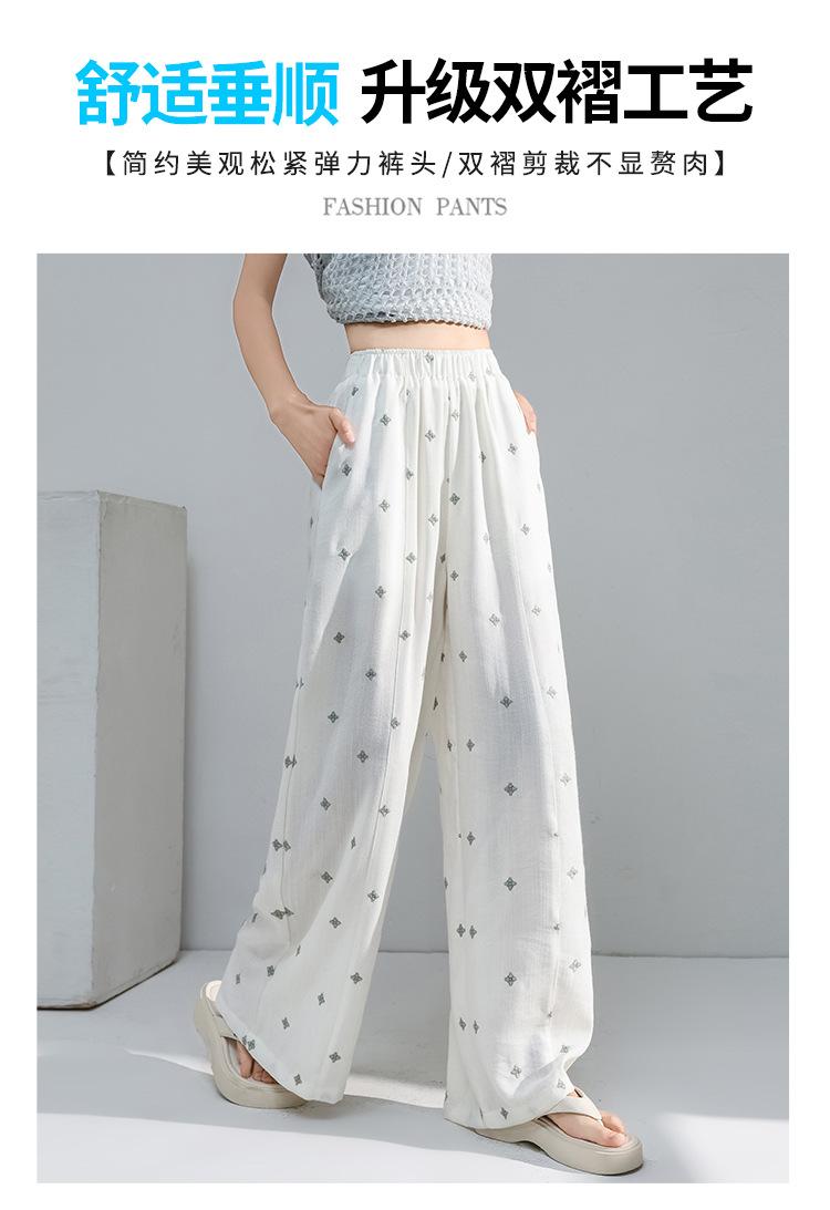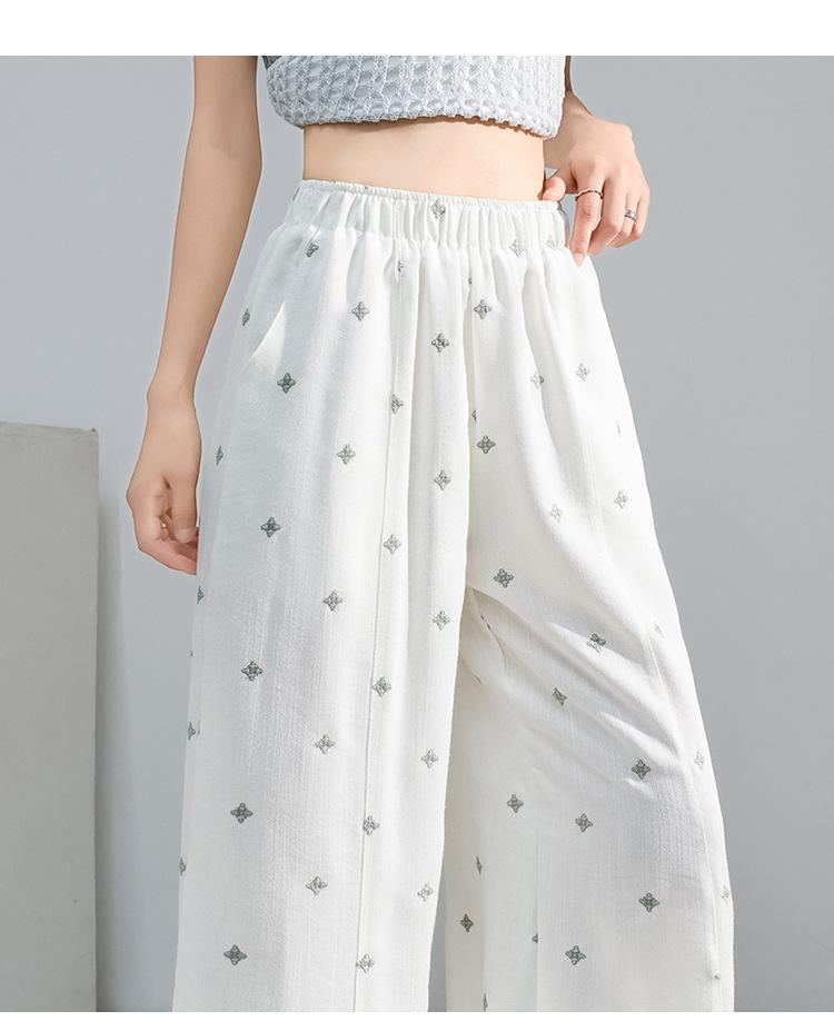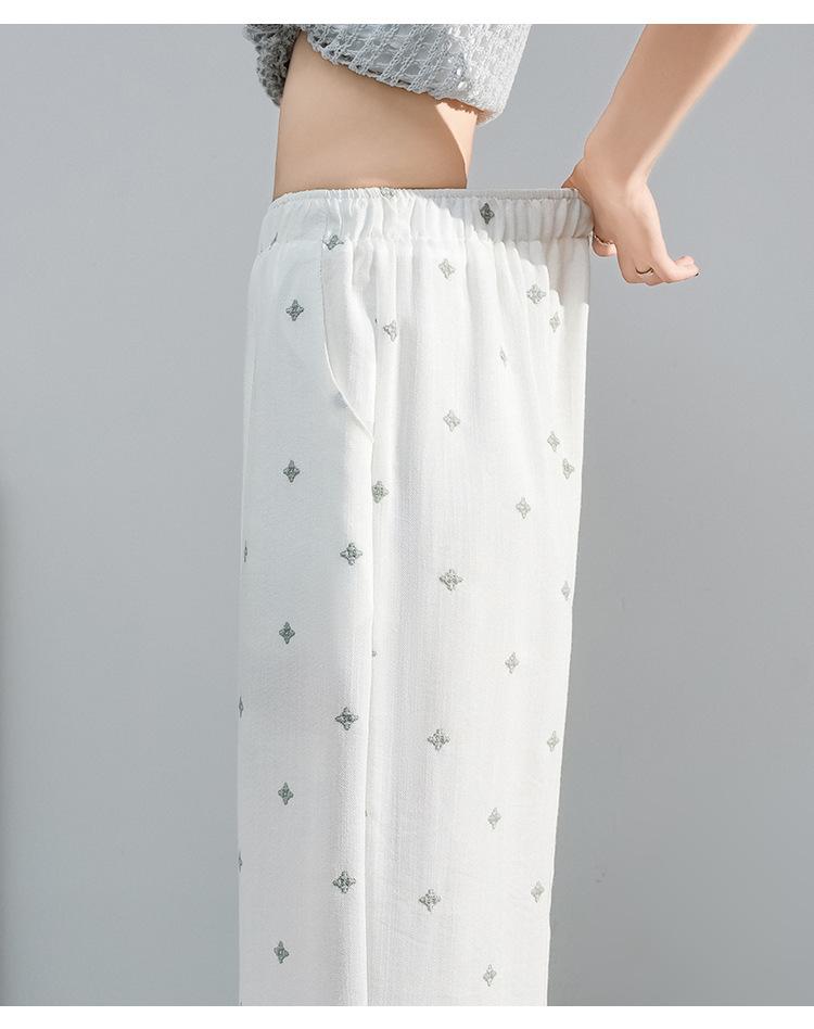 Pantalones blancos bordados de alta gama para mujer 2025 nuevo verano perezoso casual petite pierna recta pierna ancha pantalones largos