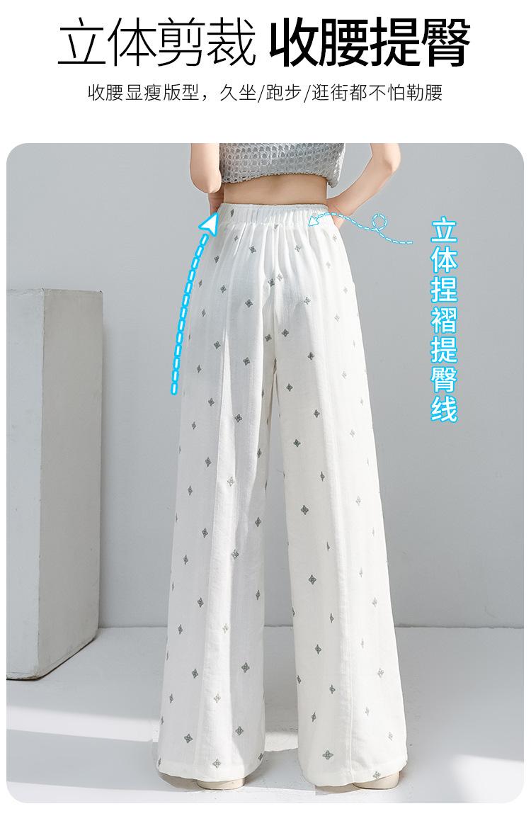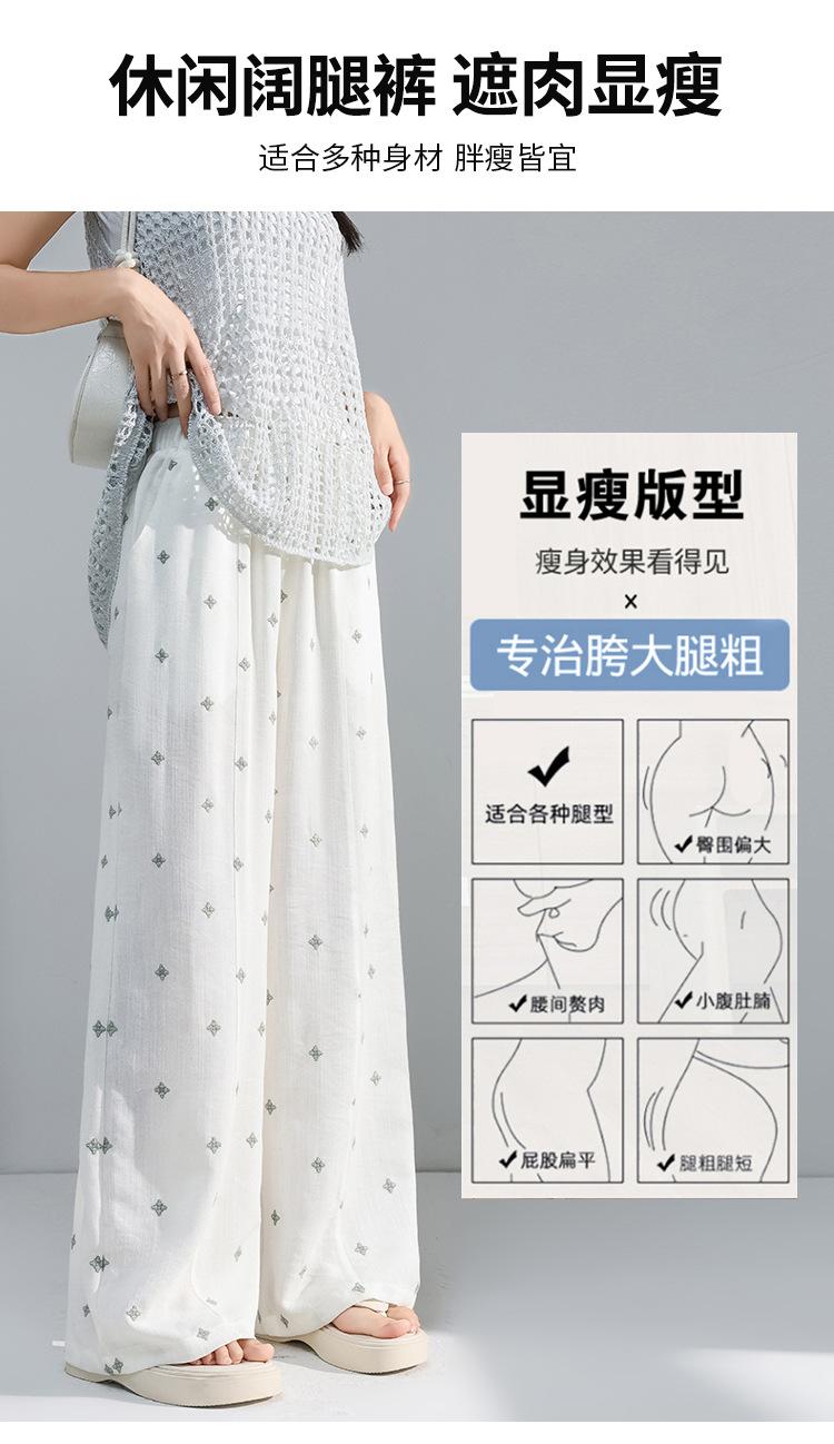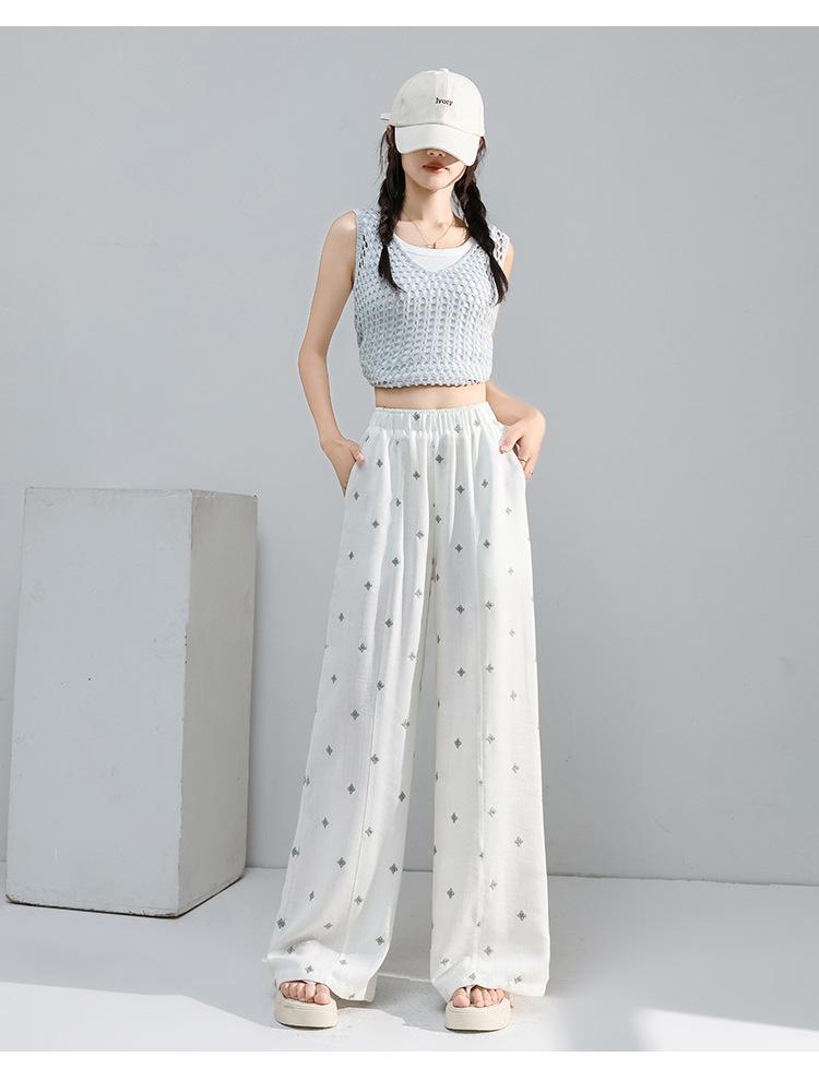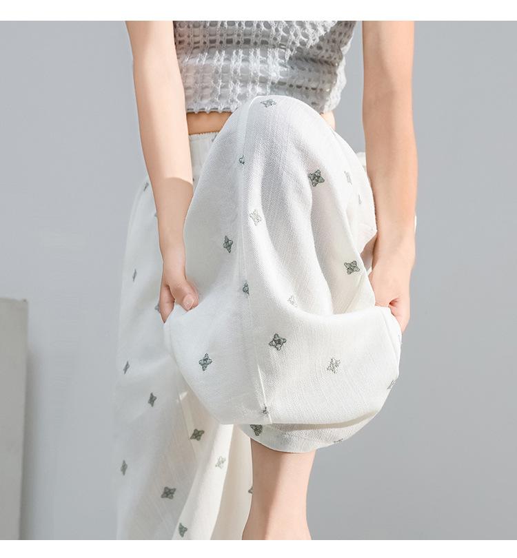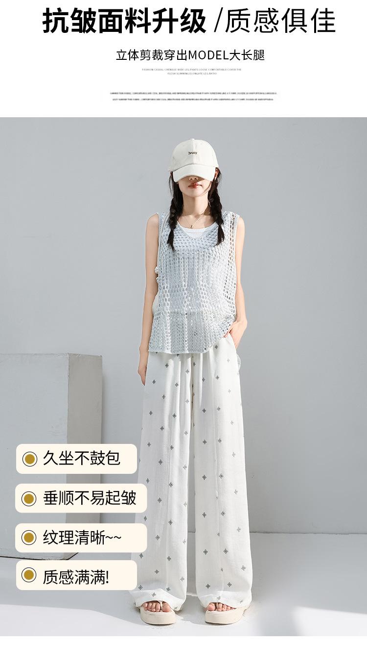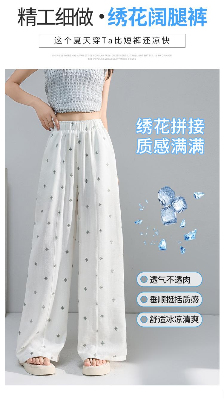 Pantalones blancos bordados de alta gama para mujer 2025 nuevo verano perezoso casual petite pierna recta pierna ancha pantalones largos