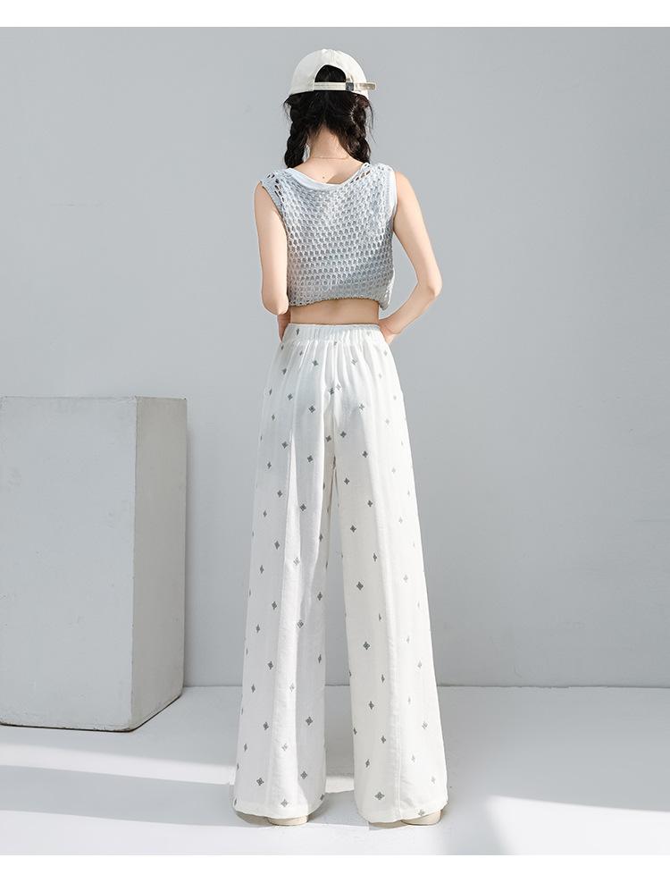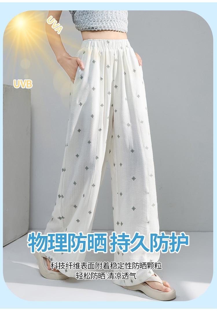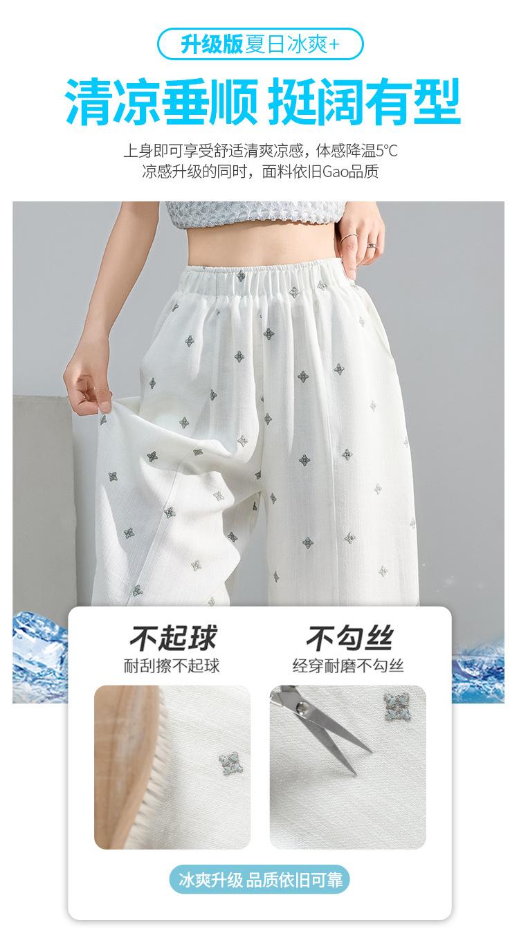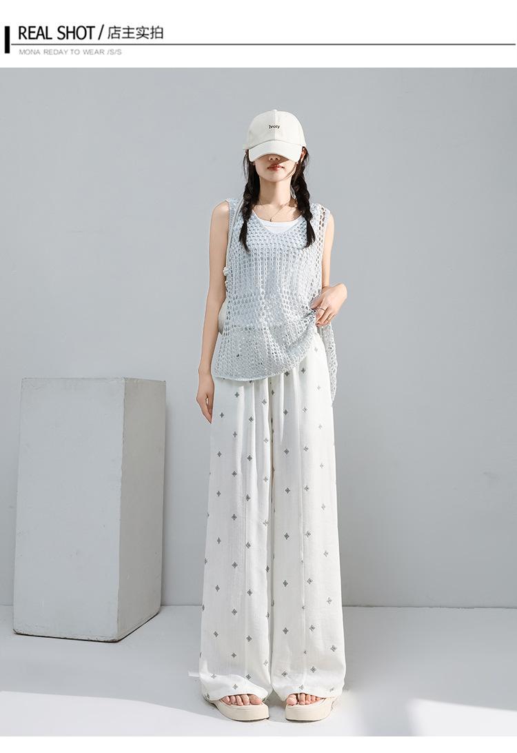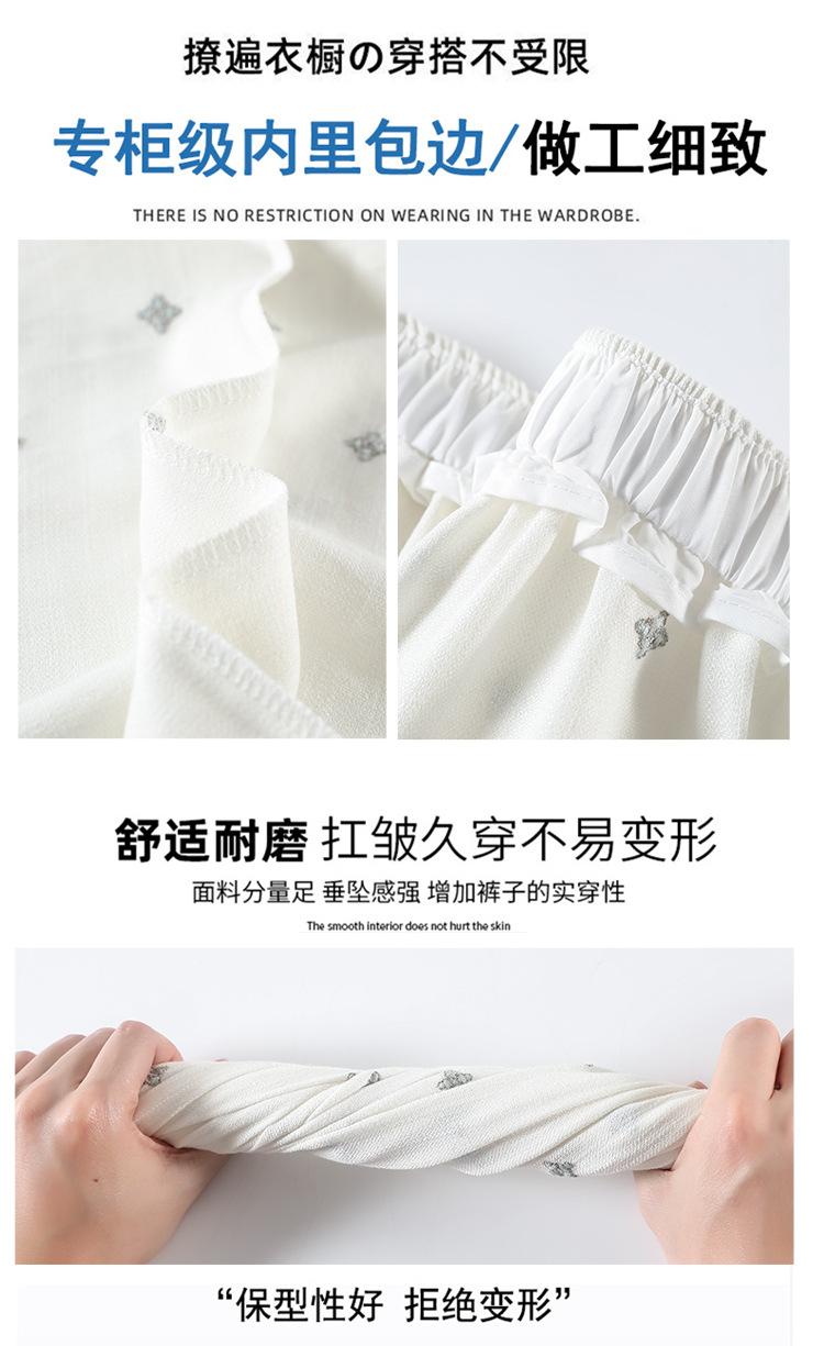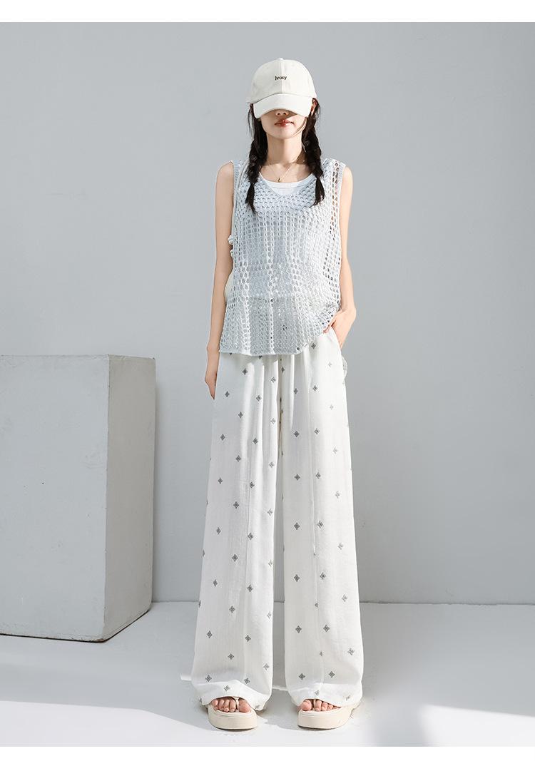 Pantalones blancos bordados de alta gama para mujer 2025 nuevo verano perezoso casual petite pierna recta pierna ancha pantalones largos