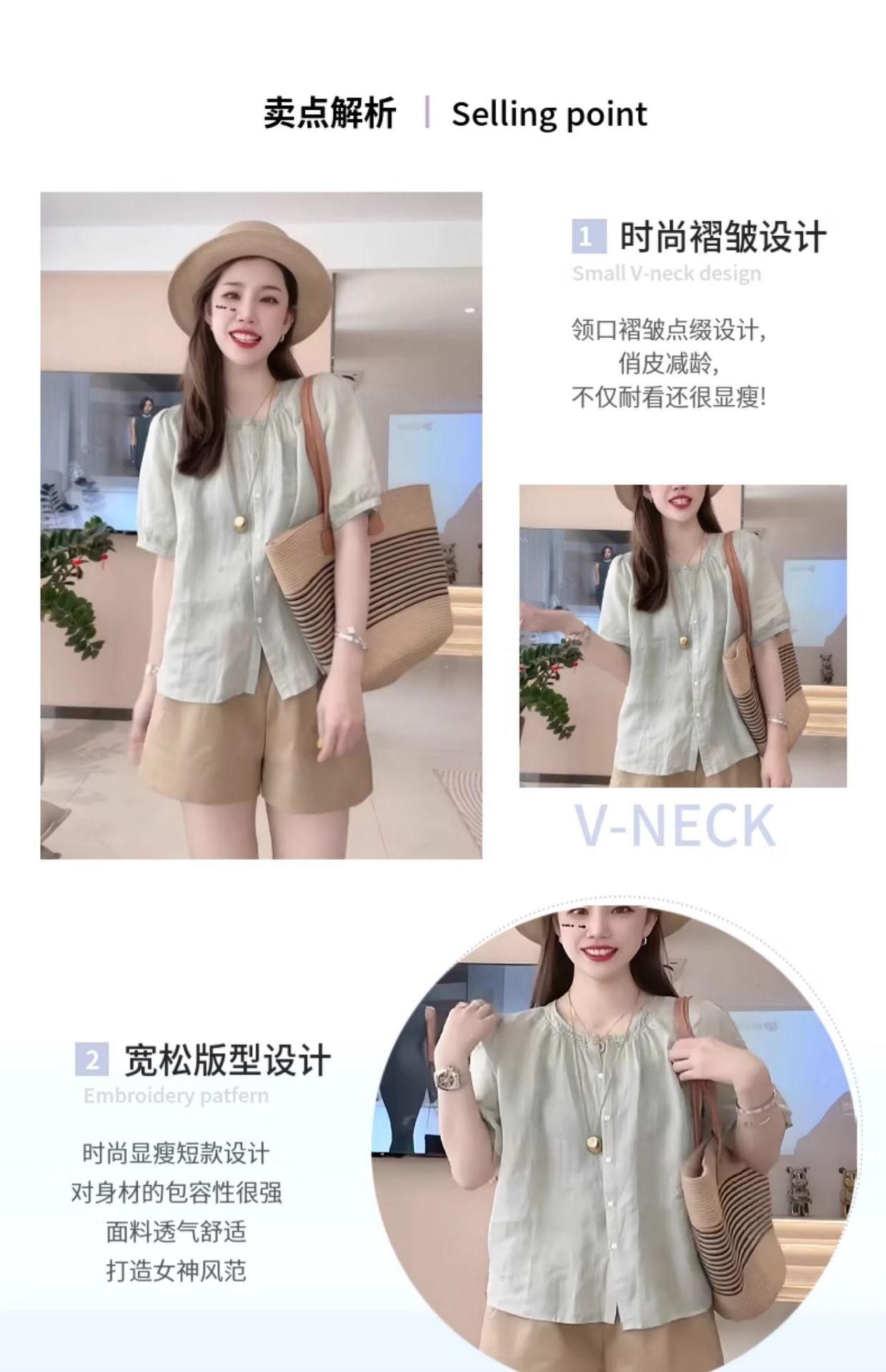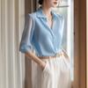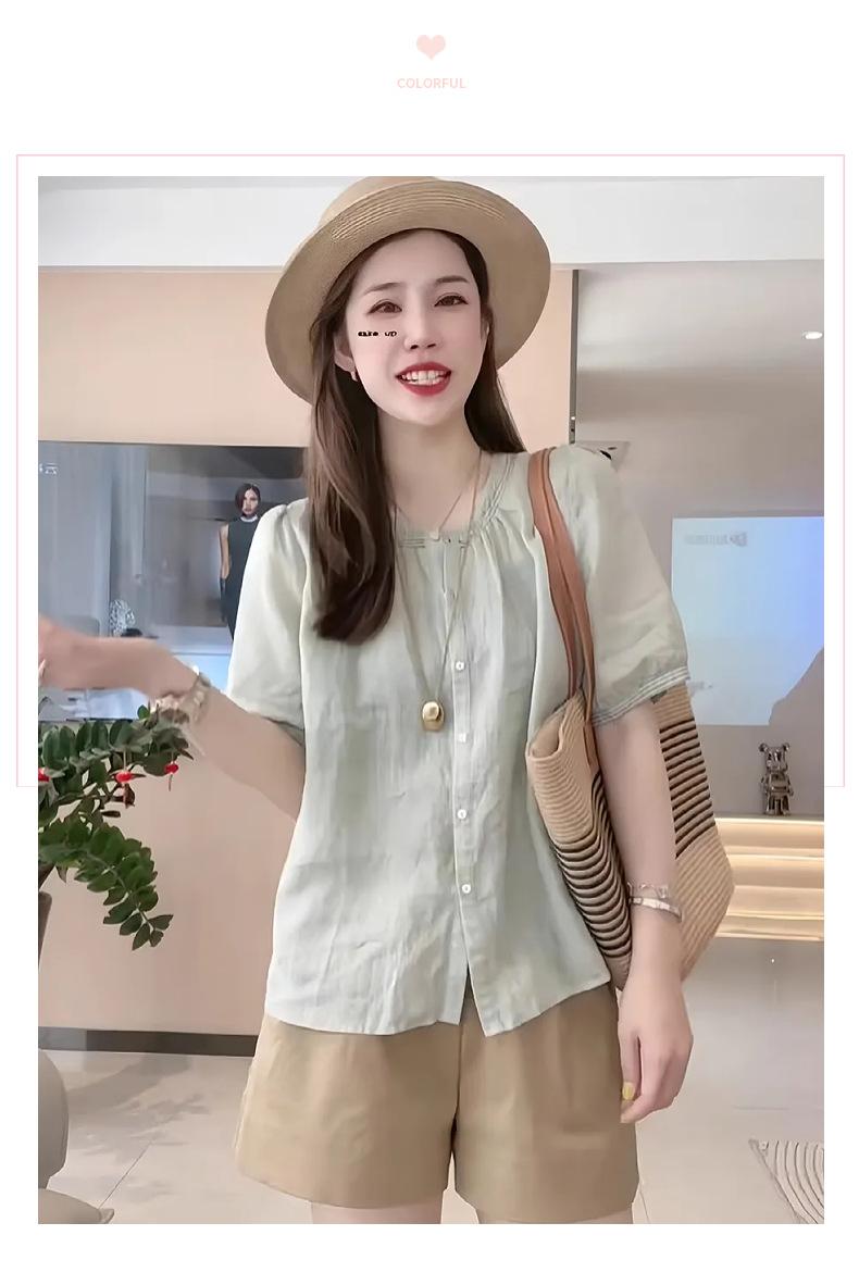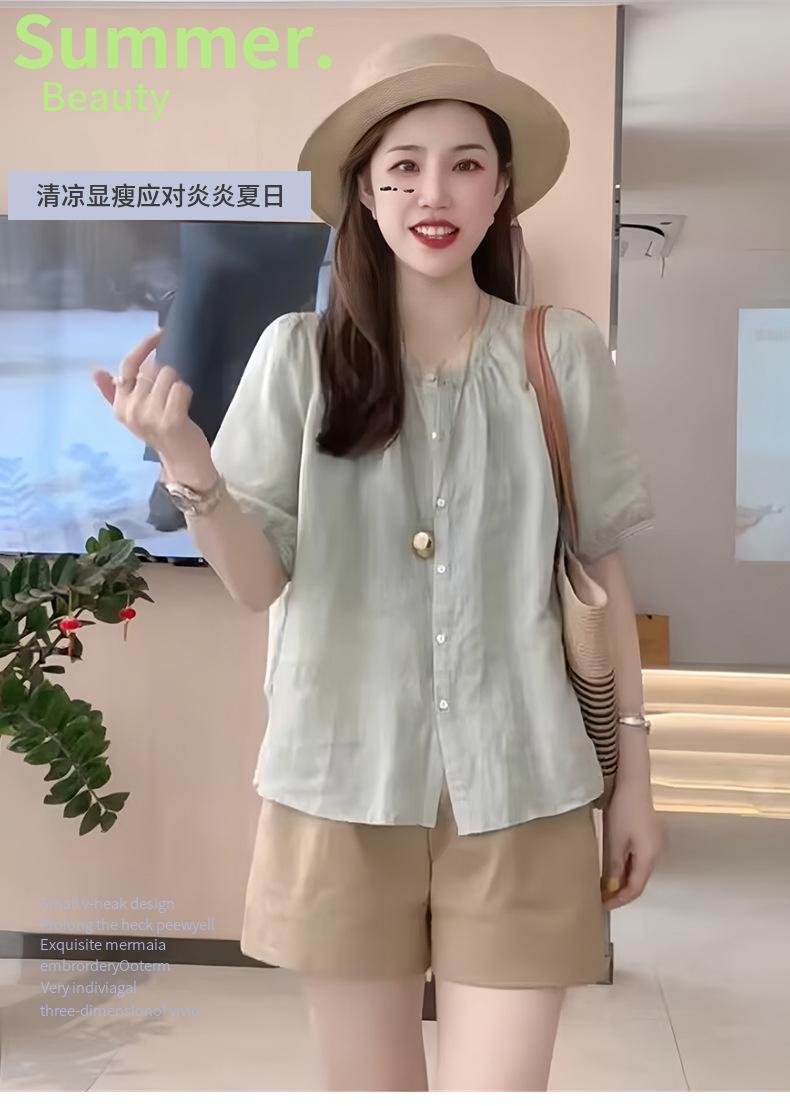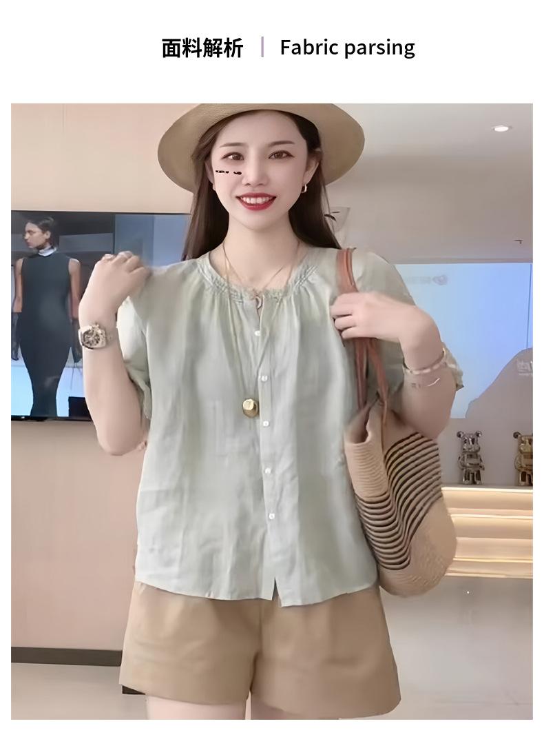 Camisa de manga corta para mujer verano holgada adelgazante 2025 nueva chic absolutamente hermoso temperamento camisa pequeña ramio fino camisa pequeña